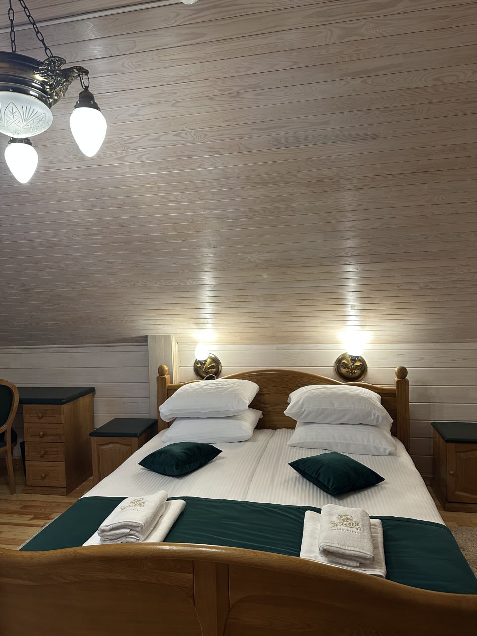 «Семейный номер» - двухкомнатный номер, расположенный на втором этаже гостиницы, каждая комната оснащена двухспальной кроватью, количество проживающих-4, местом для работы с ноутбуком или чтения за рабочим столом, телевизором, бесплатным Wi-Fi. На две комнаты мини-холодильник и санузел. Площадь номера – 30,6 м.кв.