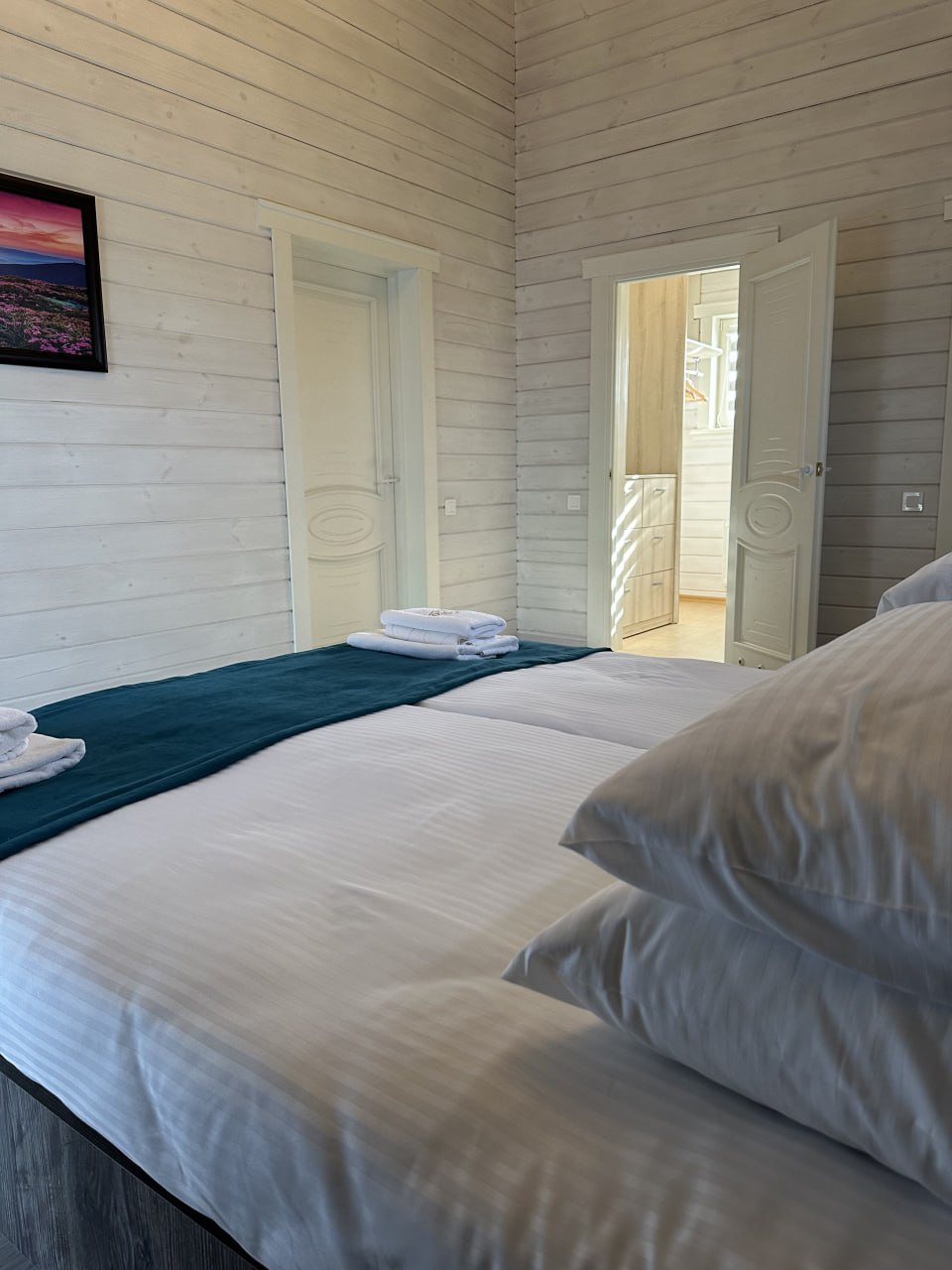 Коттедж вмещает до восьми человек, что делает его идеальным выбором для компании или семейного отдыха. Просторная обеденная зона станет центром ваших встреч, где вы сможете наслаждаться совместными трапезами и теплой атмосферой. Светлые и уютные спальни, оформленные в теплом и современном стиле, обеспечат вам комфортный и спокойный сон, позволяя восстановить силы после насыщенного дня.