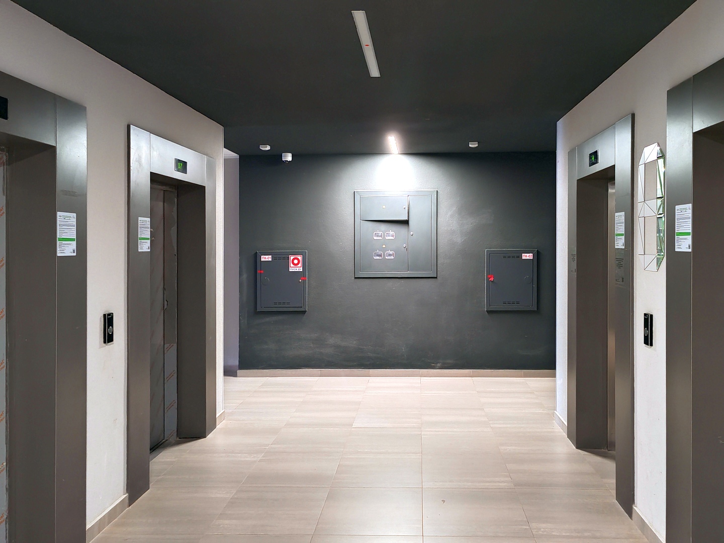 • на 1-м этаже – колясочная, буккроссинг, лапомойка, большие зеркала, хорошее освещение, видеонаблюдение;
