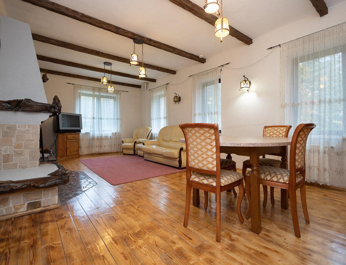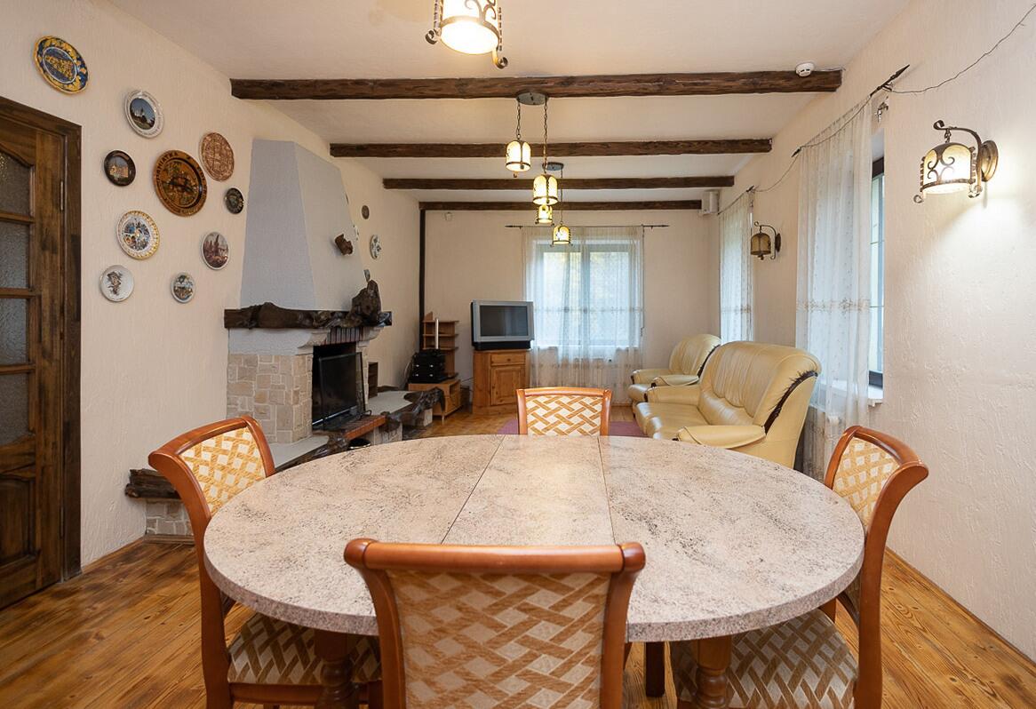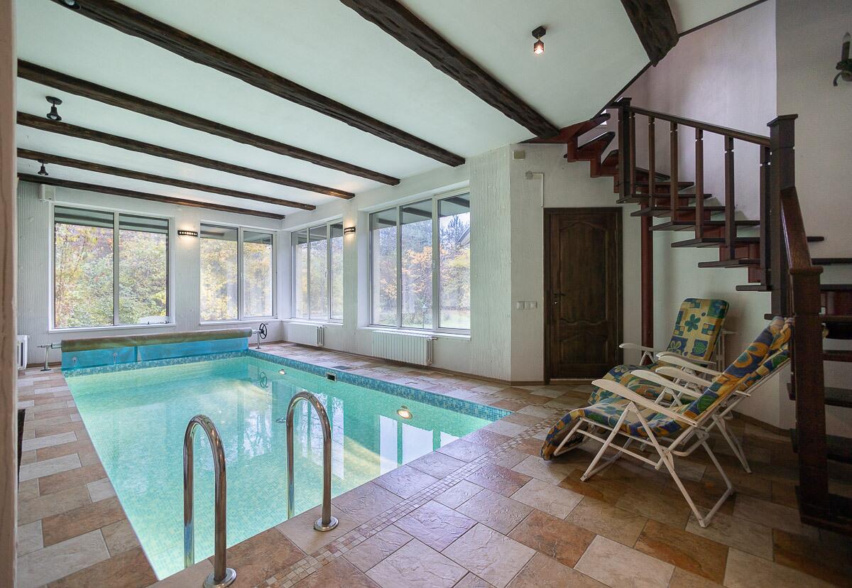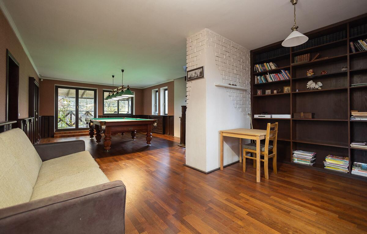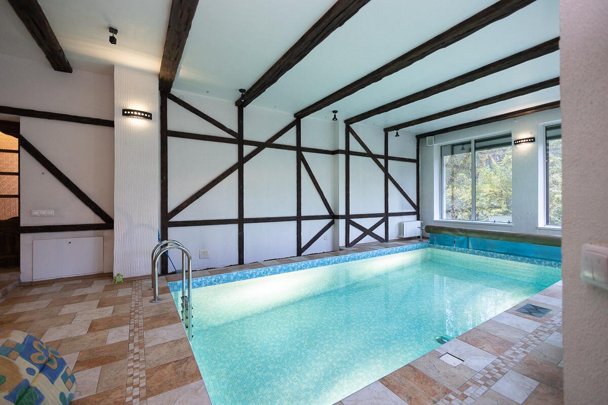 1 этаж:кухня, просторная гостиная с камином из морёного дуба, банный комплекс с русской баней на дровах, бассейн с гидропушкой и системой автоматического химанализа, подогревом воды, душевой зоной