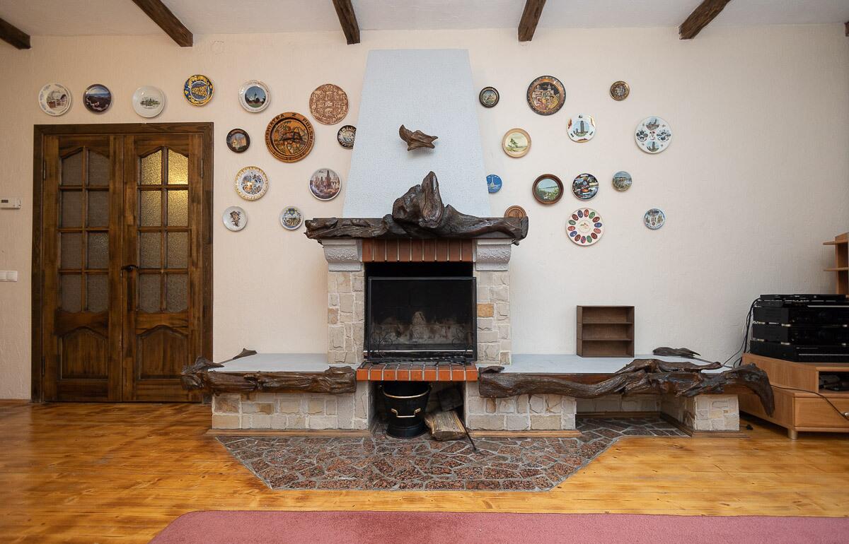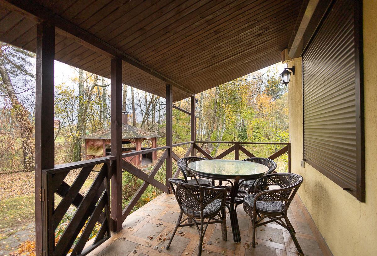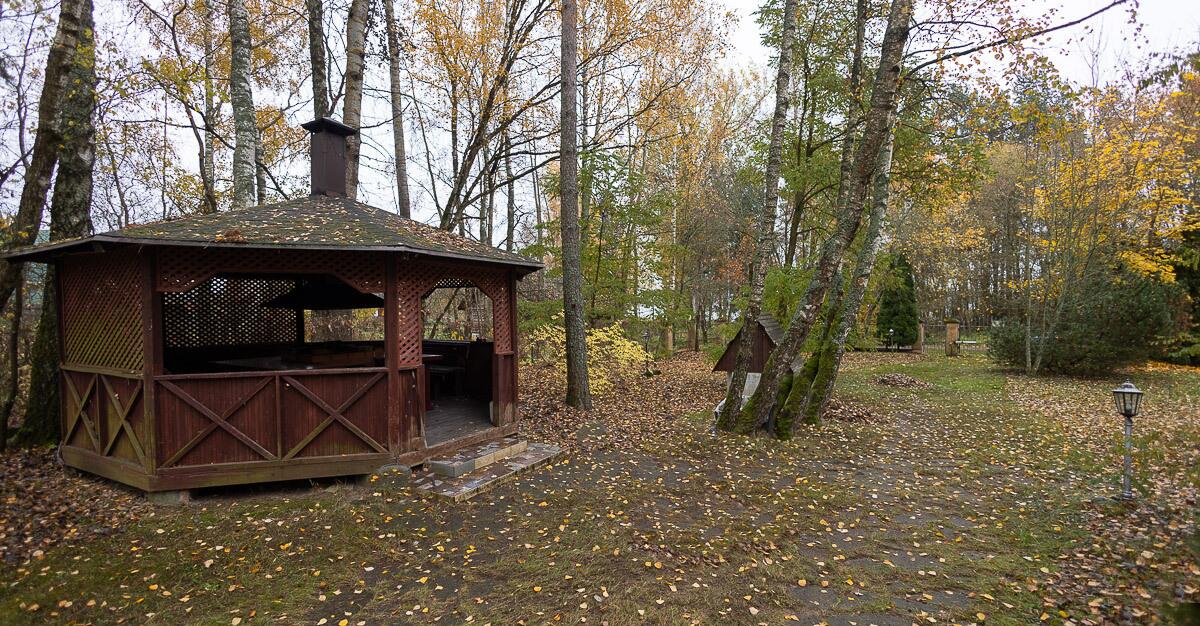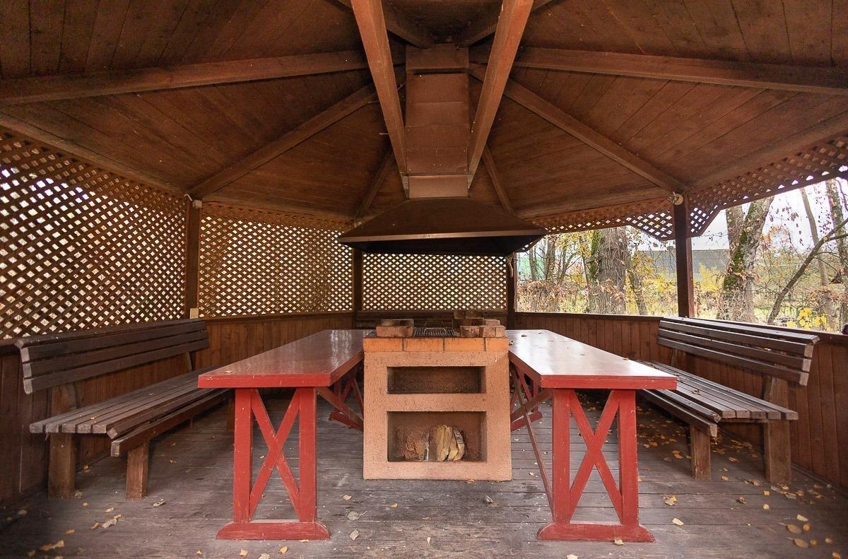 - просторная деревянная беседка с печью для барбекю