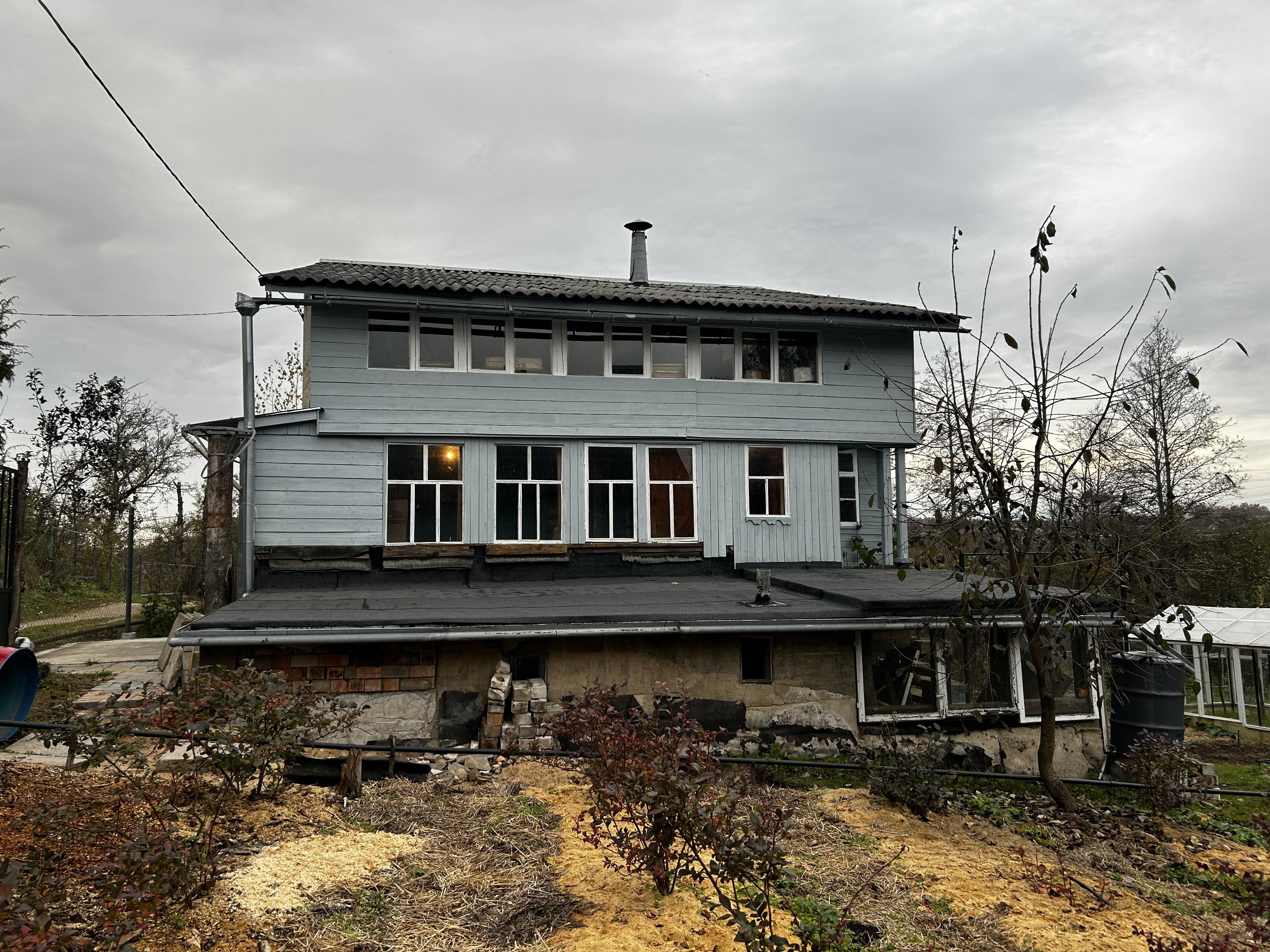 Огромный дачный дом в СТ «Взгорье». Выглядит очень приятно и достойно. Большое количество жилых и подсобных помещений. Мансардный этаж и балкончики для приятных семейных вечеров. На нижнем уровне камин и подготовленное помещение для бани. Дом в хорошем состоянии, досмотрен. Ничего не течет и не продувает. Хозяин с руками следил за техническим состоянием дома. На основном этаже печь с лежанкой. Электрика в порядке. Водопровод на участке, сезонный.