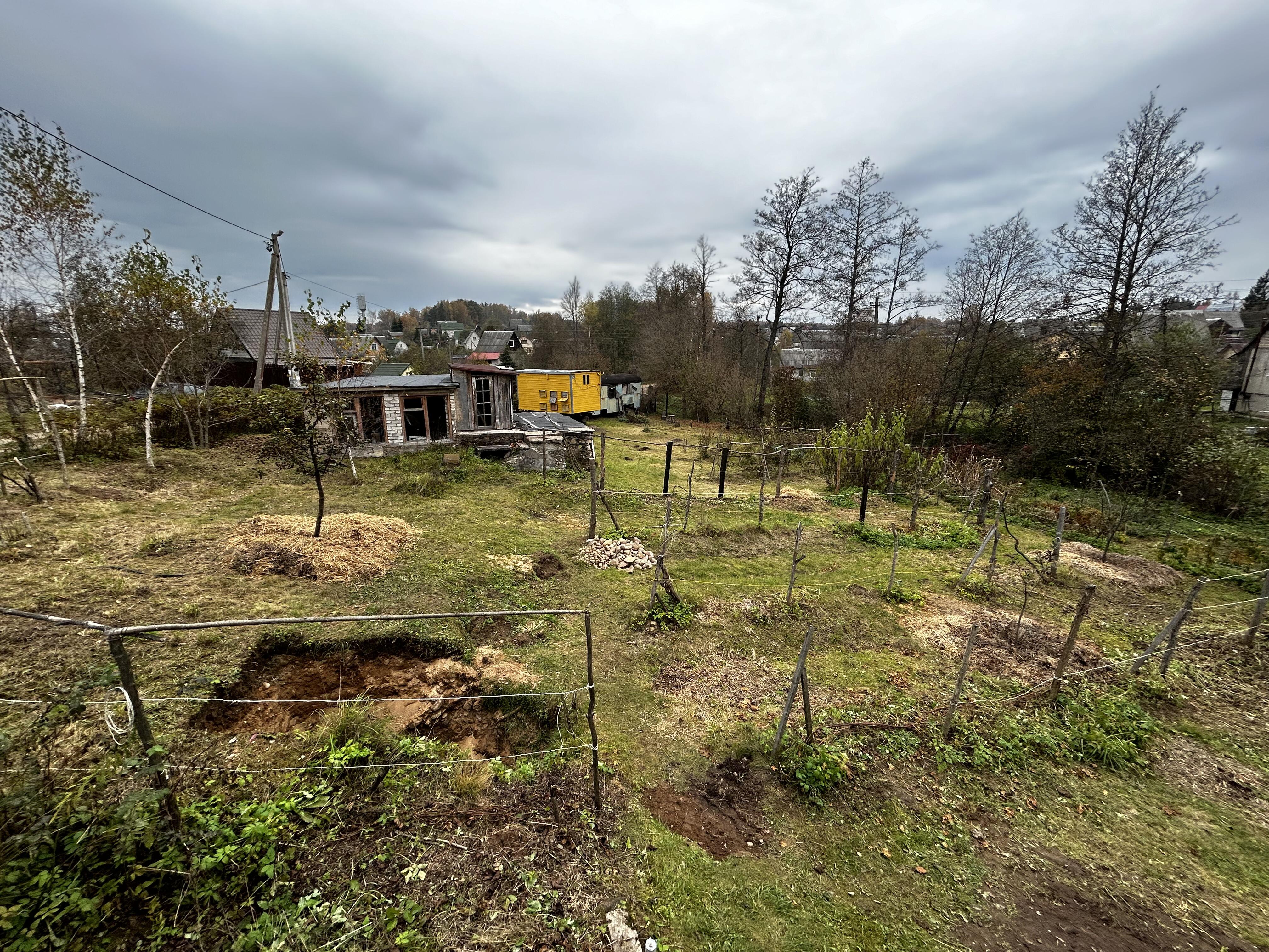 Два больших соседних угловых участка продаются вместе. Соседи только с одной стороны. По документам 9.5 сотки, фактически более 14. За участком ручей и природоохранная зона – нет соседа, растут деревья и земля в пользовании у Вас. На участке 50 кустов голубики, 6 сортов столового винограда, парник с томатами. Передвижной прицеп с 6 ульями и лежаками для апитерапии. Участок досмотрен, разработан и облагорожен. Благодаря двум огромным участкам и удачному расположению, можно наслаждаться свободным пространством во все стороны, нет ощущения скованности от соседних домов.