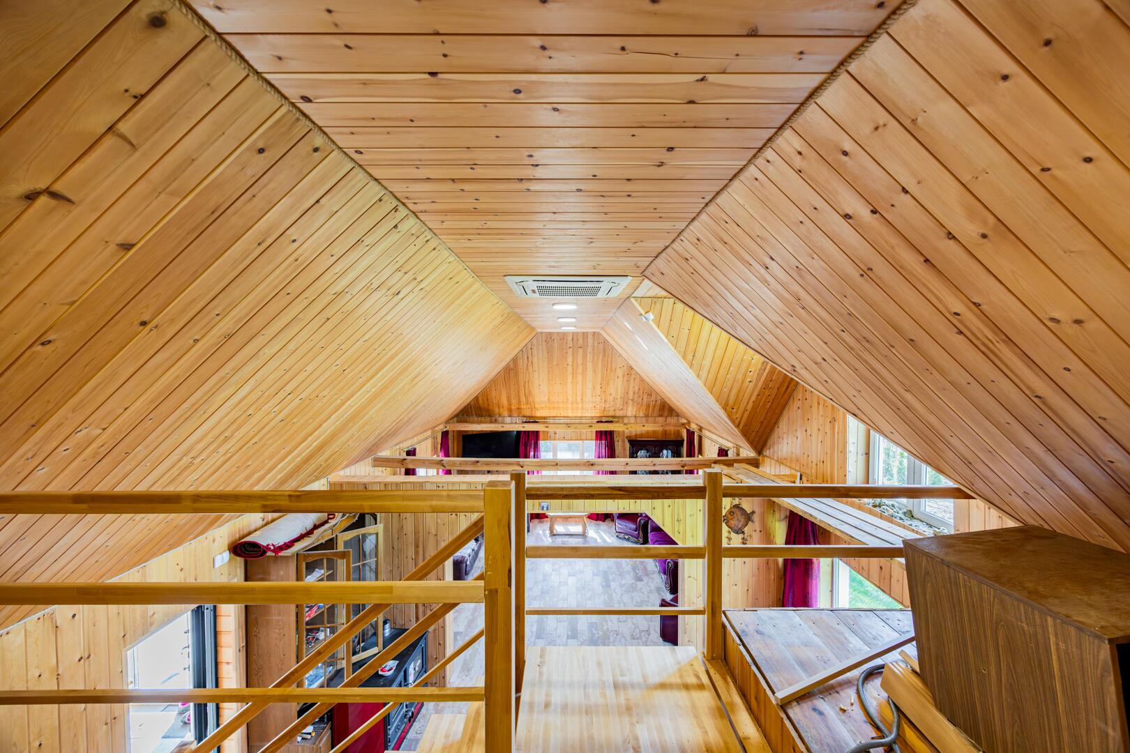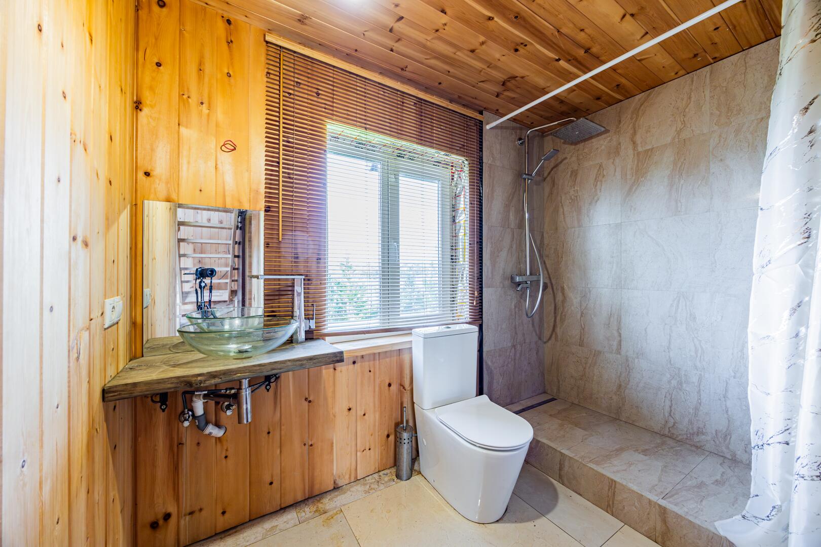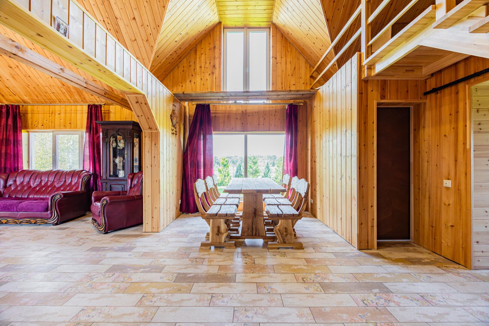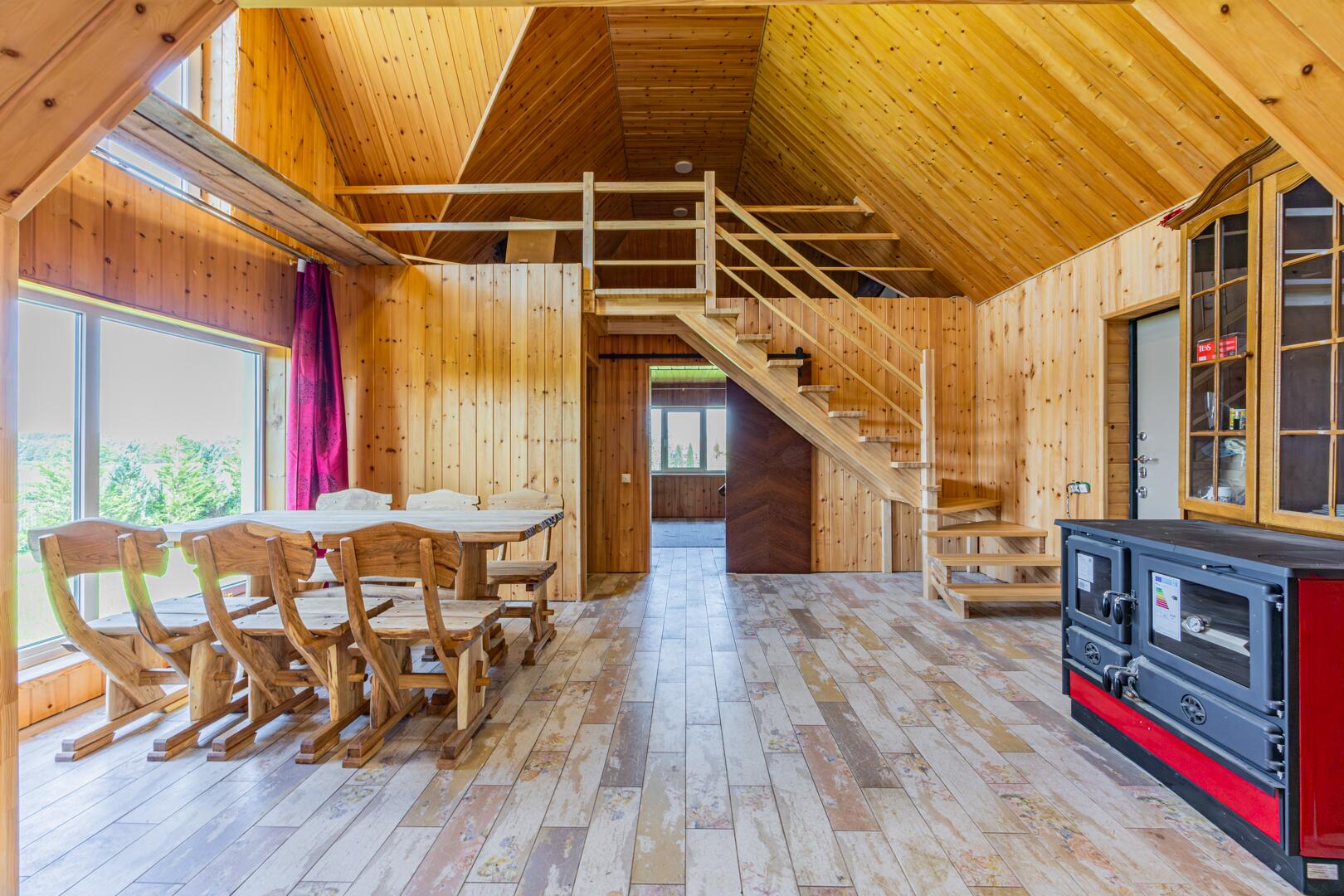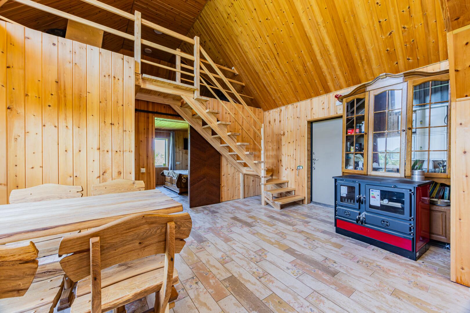 - На первом этаже находится просторная гостиная с кухней. Санузел с душевой. Прихожая с верандой и огромной террасой.