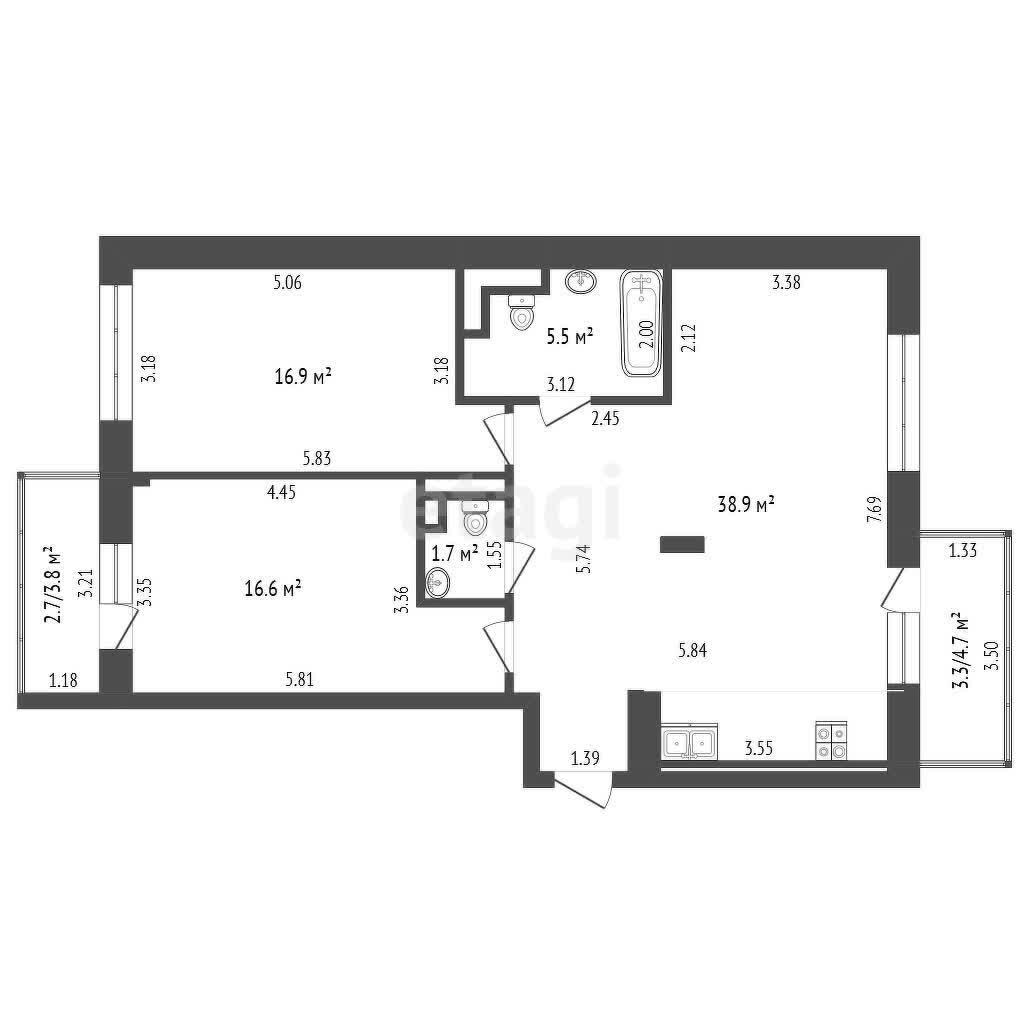 Площадь общая по СНБ – 85.6 м2