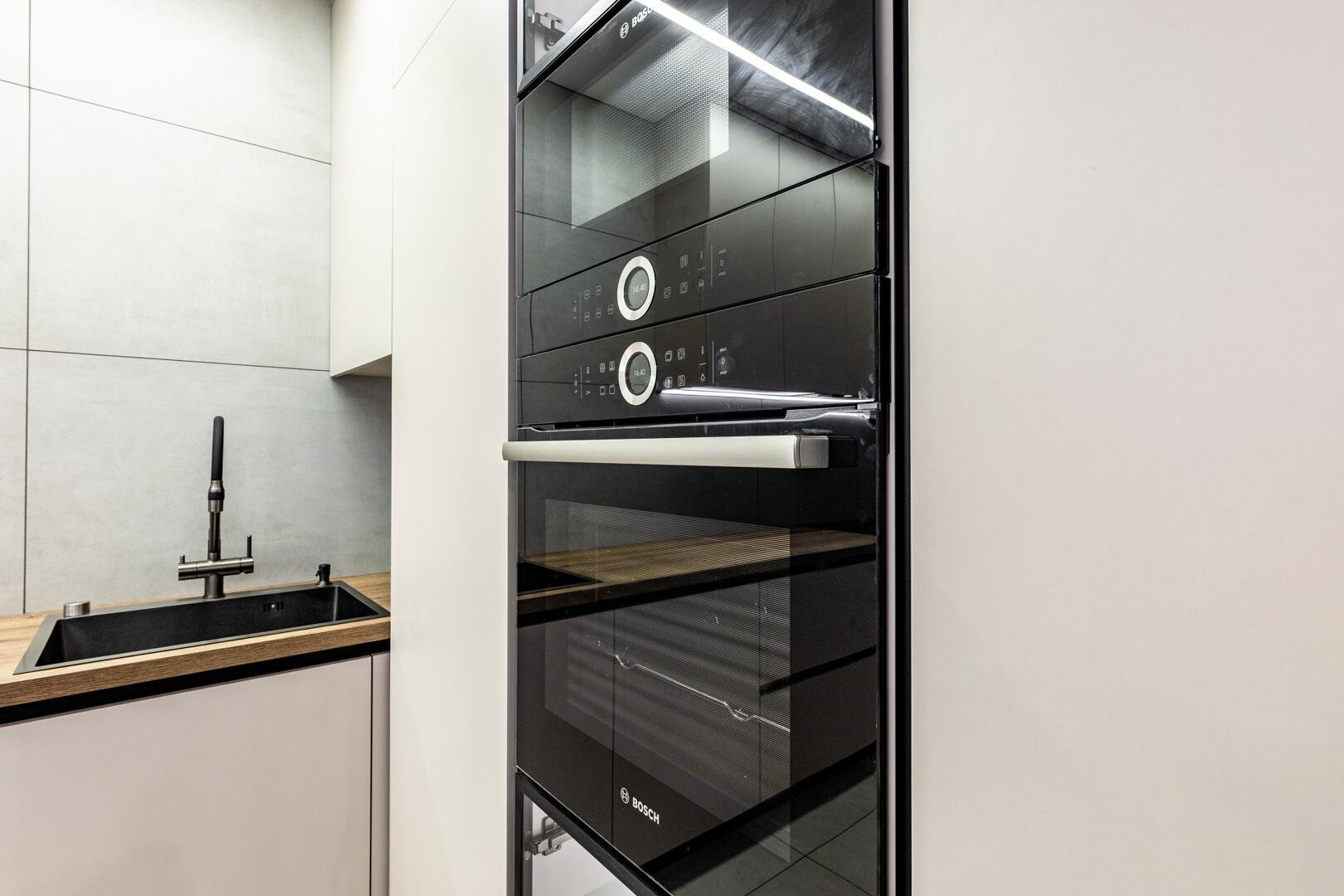Квартира меблирована и полностью готова к проживанию: просторная кухня-гостиная выполнена с грамотным зонированием, качественным современным гарнитуром, встроенной бытовой техникой (посудомоечная машина, варочная поверхность, духовой шкаф, встроенный холодильник). Лоджия с панорамный остеклением, 2 санузла оснащены высококлассной сантехникой фирмы Roca (Испания), ванная Kaldewei (Германия) Установлен бойлер. 3 кондиционера.