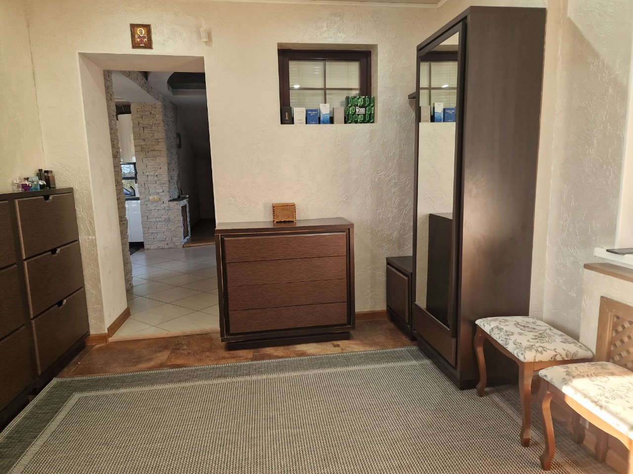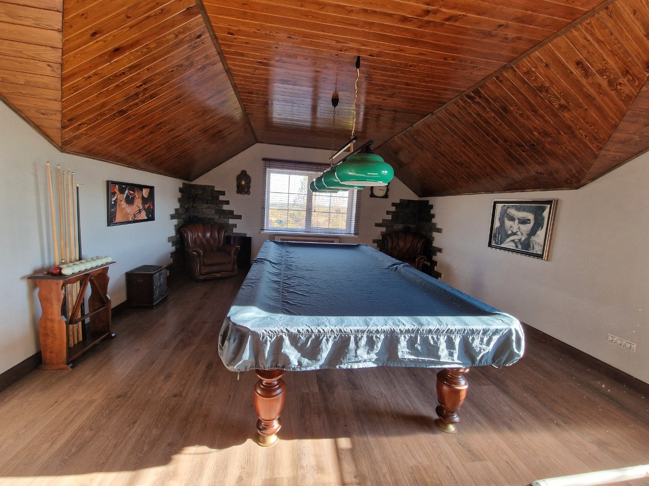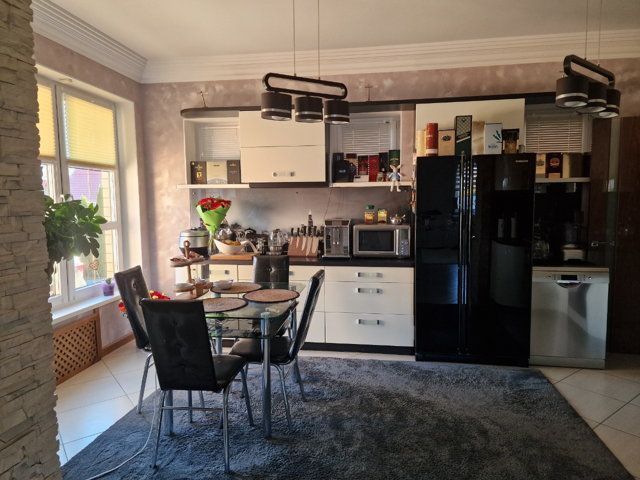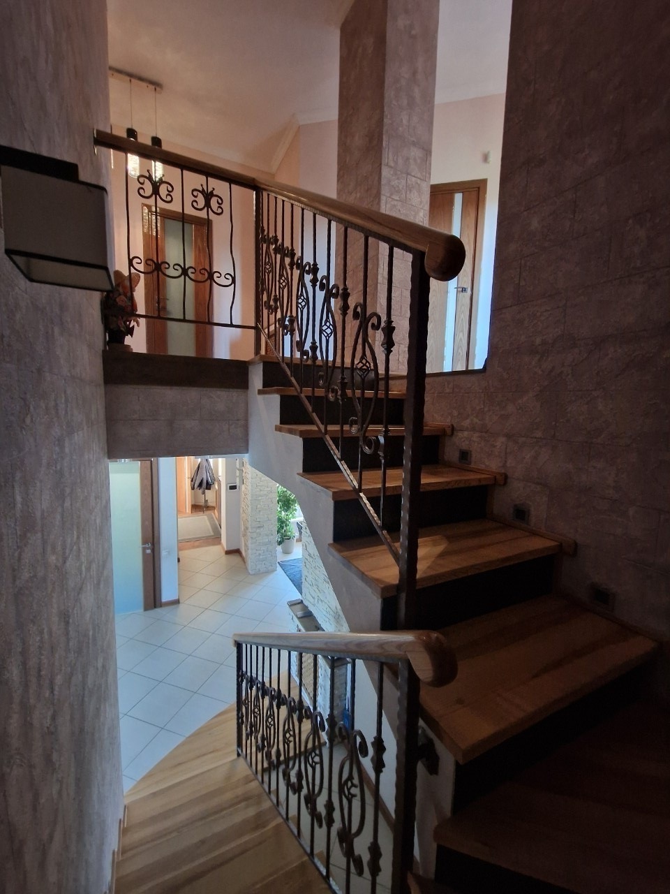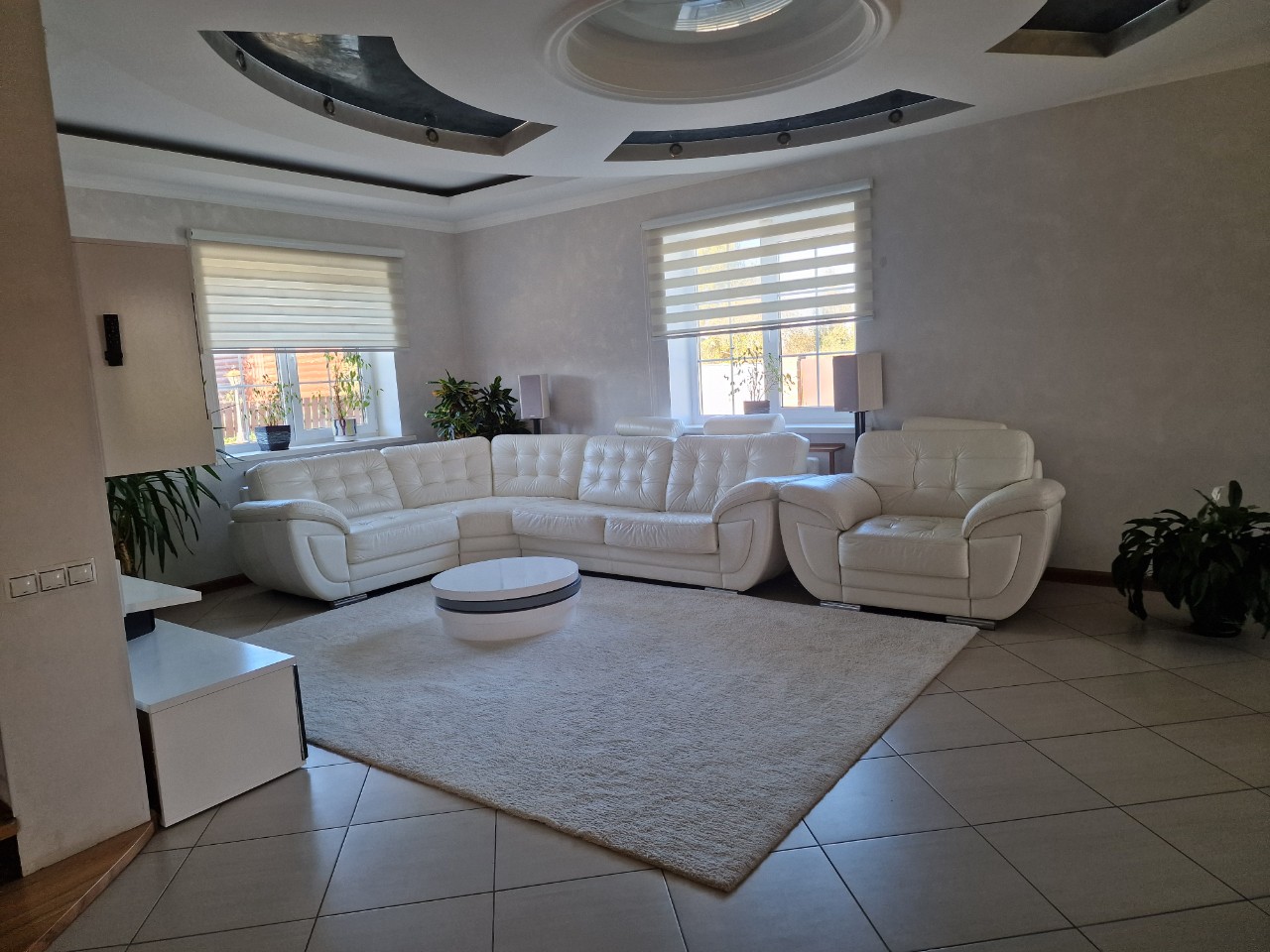 В продаже роскошный дом с элементами дизайнерского ремонта в современном стиле. Два этажа с пристройкой в виде отапливаемого гаража (42,9,h=3,89)-можно использовать как тренажёрный зал. Гараж имеет два входа-через дом и через автоматические сравни (ширина входа-5,25). Первый этаж дома: коридор-прихожая (10,4,h=2,63),кухня со встроенным кухонным гарнитуром , бытовой техникой,обеденной зоной (15,5,h=2,89), гостиная(42.3,h=2,89),с/у(2.6,h=2.6). На второй этаж ведёт капитальная лестница. Планировка 2го этажа следующая: три раздельные комнаты (16.8-13.8-13.6,h=3,0),коридор (12),с/у с джакузи (5кв.м),лоджия с панорамным остеклением и камином (3.2кв.м), отапливаемый коридор-переход (2.7,h=2.33),который ведёт в бильярдную залу (43.7,h=2.8) с зоной ресепшена. На минус первом этаже расположен отапливаемый подвал (в плитке,16.9,h=1.98). Все окна ПВХ,ремонт выполнен из высококачественных материалов. На участке расположены капитальные строения в виде отапливаемой беседки с камином из оцилиндрованного бревна, бани-сауны с душевым пространством и комнатой для отдыха,хоз.постройкой. Имеется мангальная зона. За домом располагается мечта хозяйки -сад:ежевика,смородина,яблони,груши,сливы,алыча,хвойные насаждения. Во дворе: туи -по периметру,можжевельник,барбарисы нескольких видов.