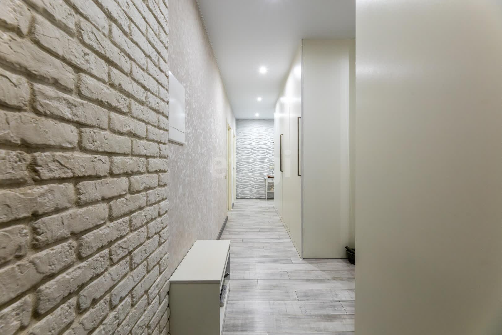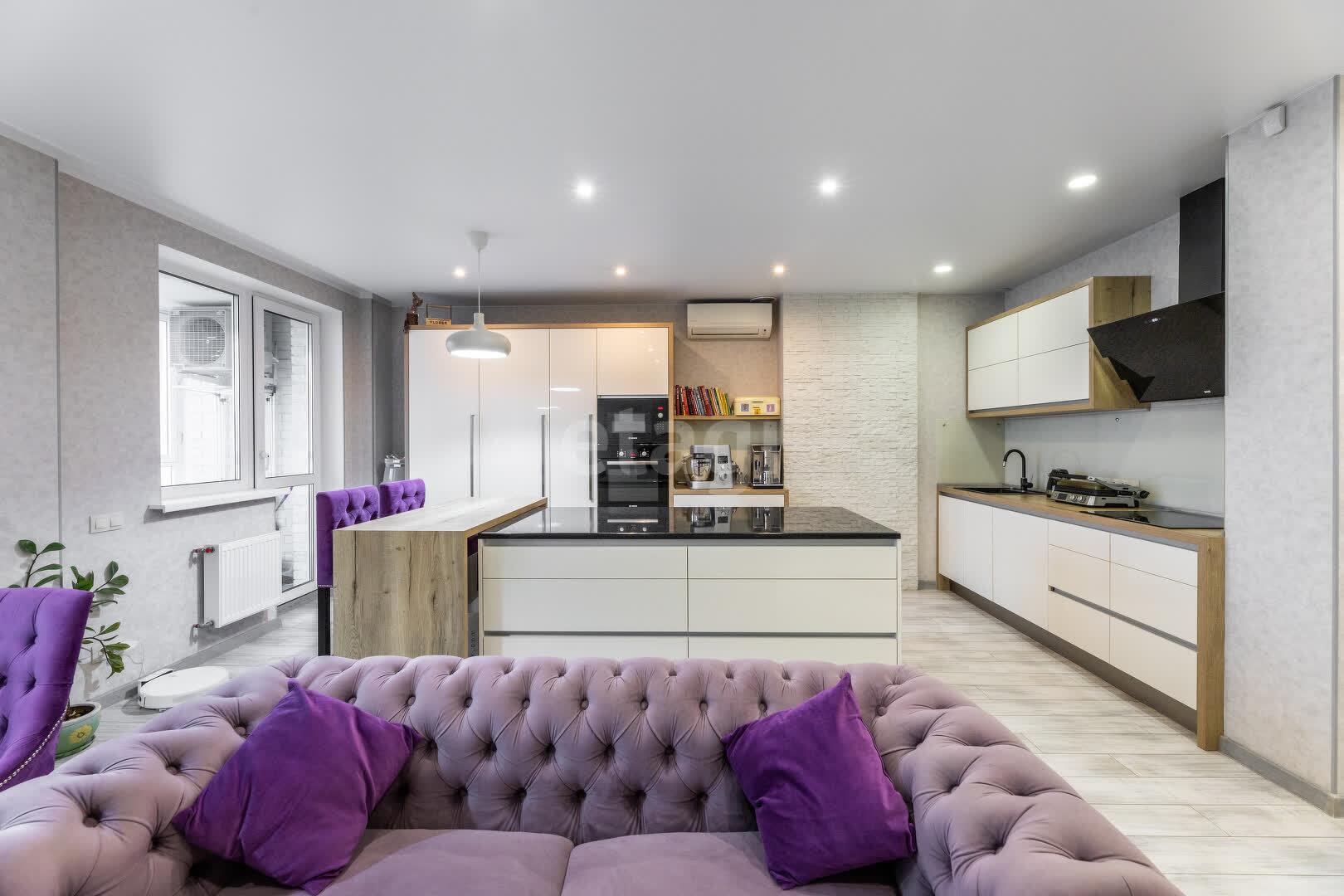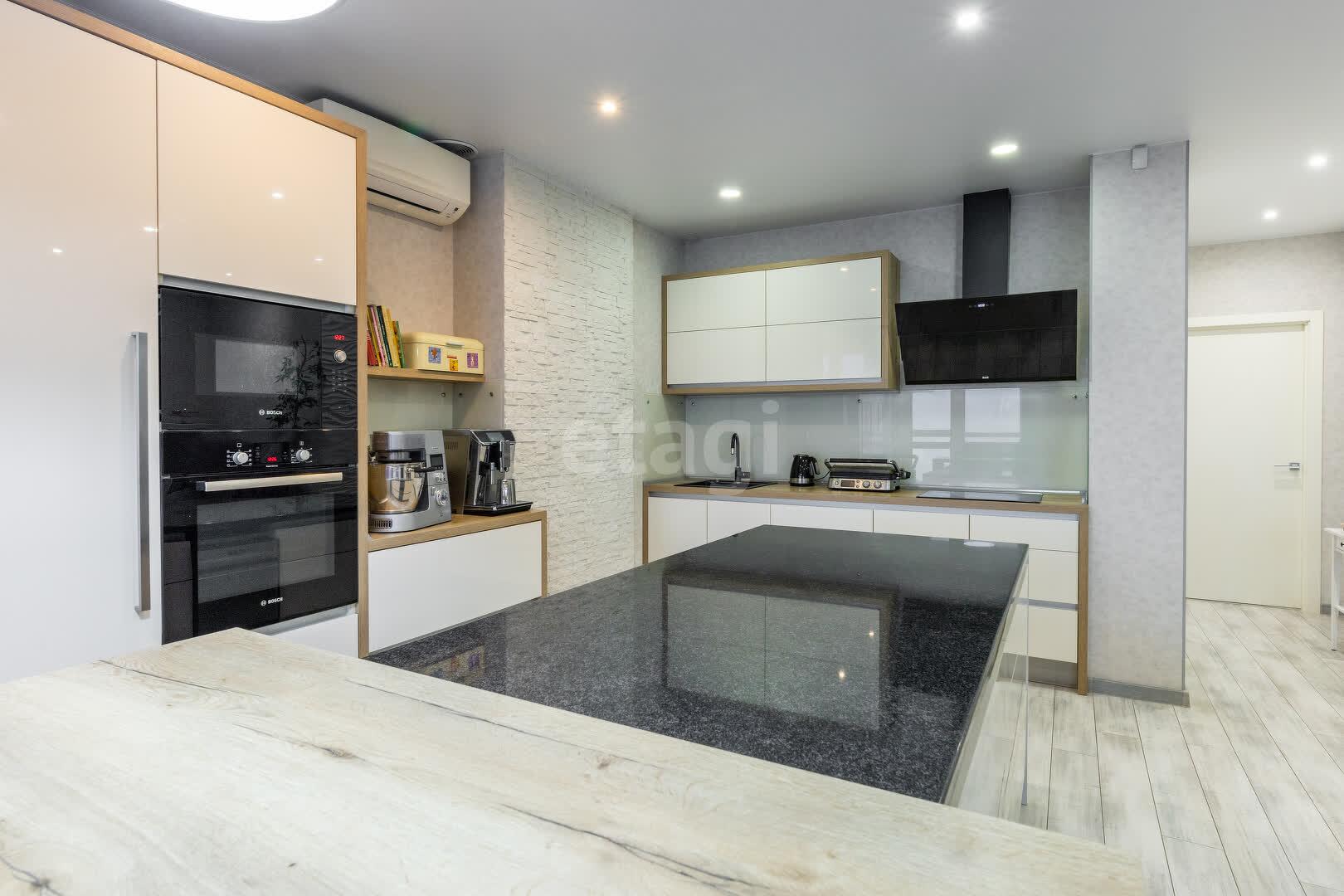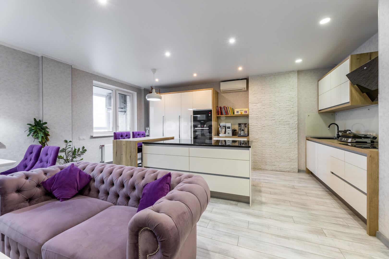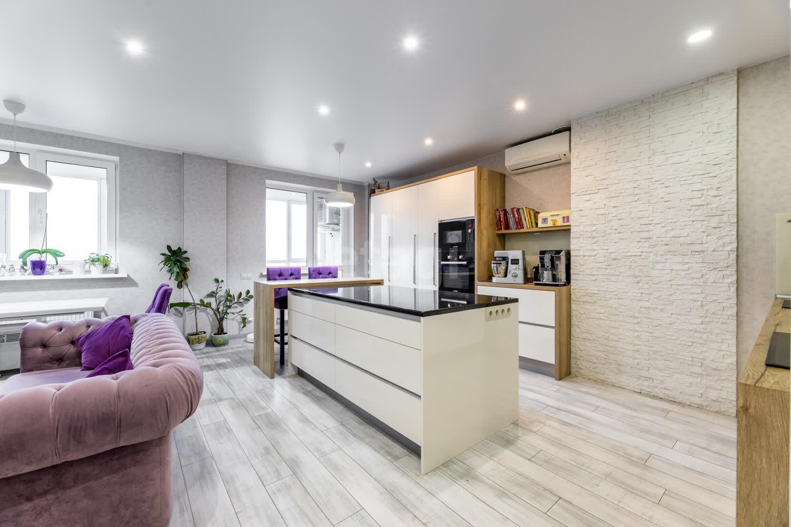 Квартира расположена на 19-м этаже, что открывает прекрасный вид на город, окна выходят на обе стороны дома. В квартире выполнен стильный современный ремонт. Окна ПВХ, лоджия с панорамным остеклением, на полу ламинат и плитка, грамотно и практично разведена электрика, натяжные потолки, 2 санузла облицованных плиткой, встроенные места для хранения, современные двери и фурнитура, кондиционер. Квартира оборудована современным кухонным гарнитуром со встроенной бытовой техникой LIEBHERR и BOSCH. Ремонт выполнен в светлых тонах с использованием только качественных материалов.
