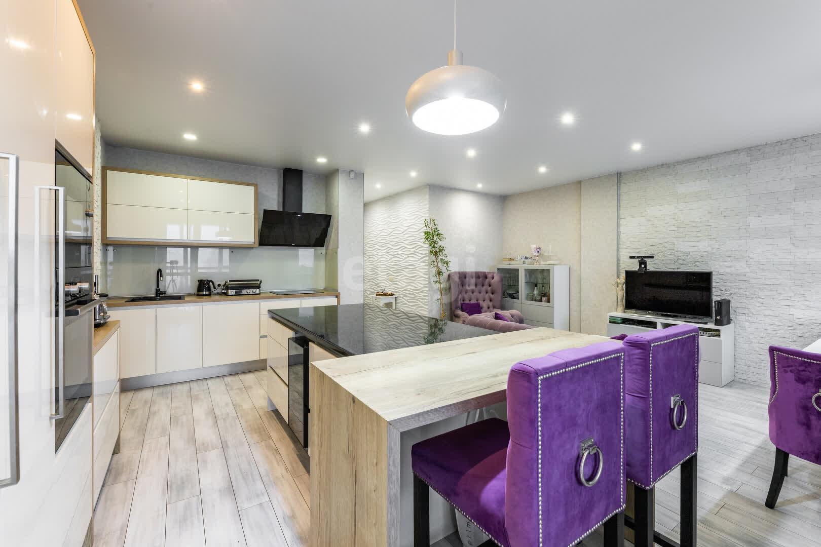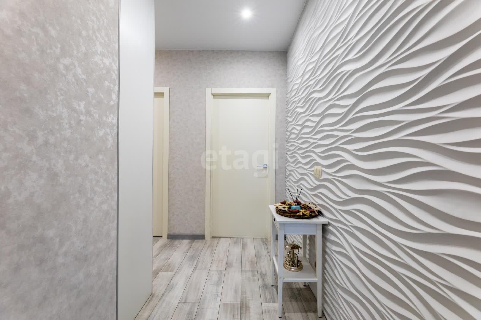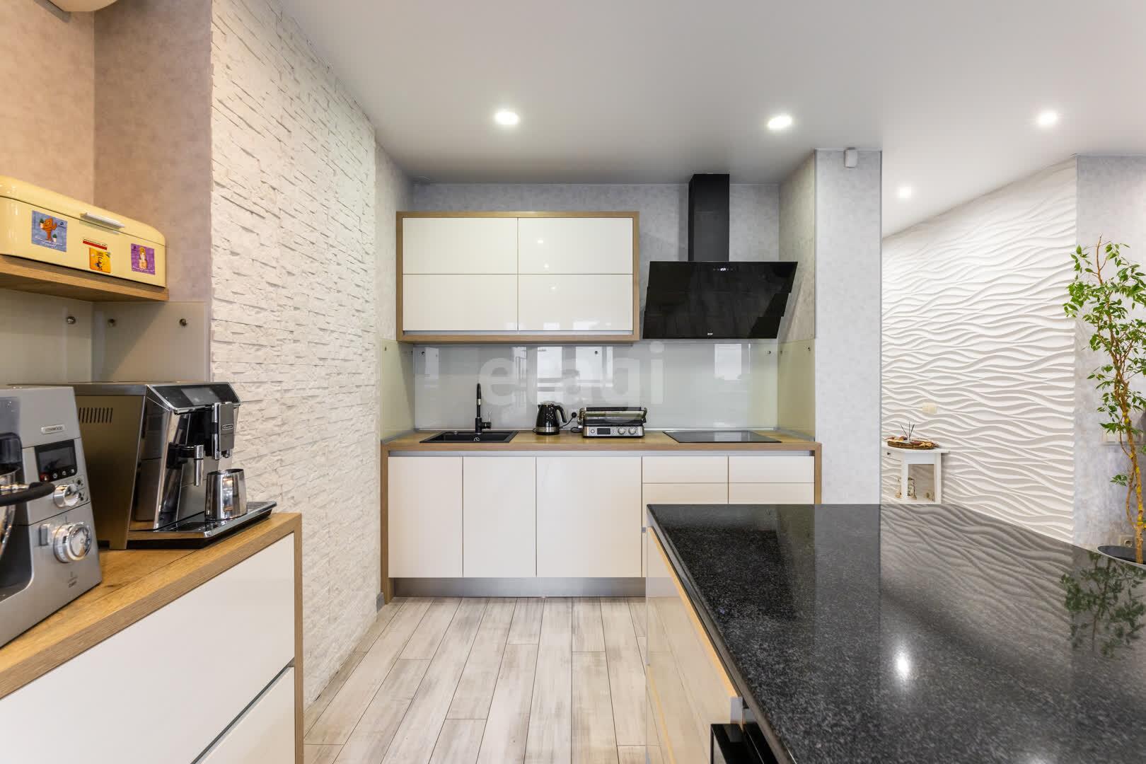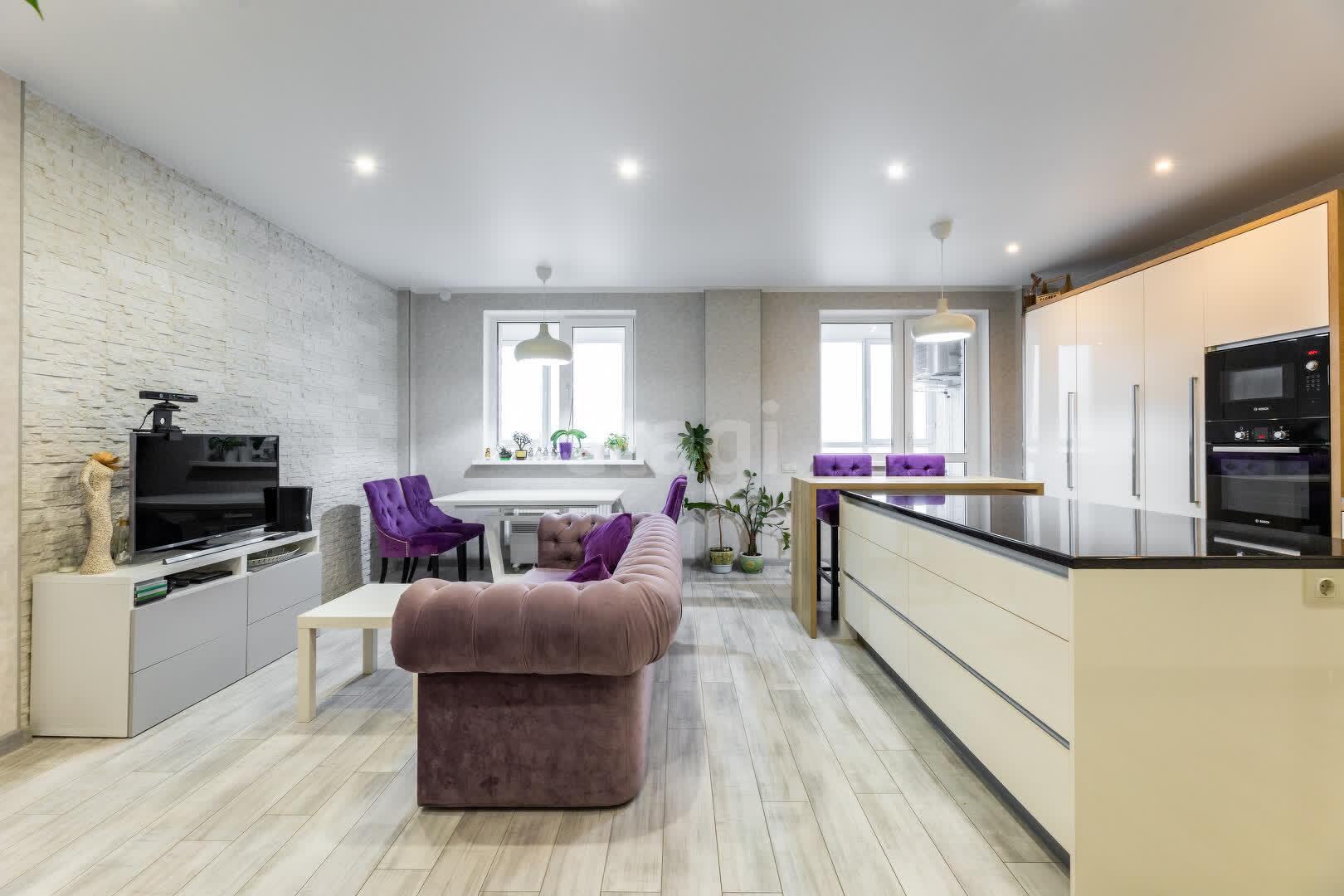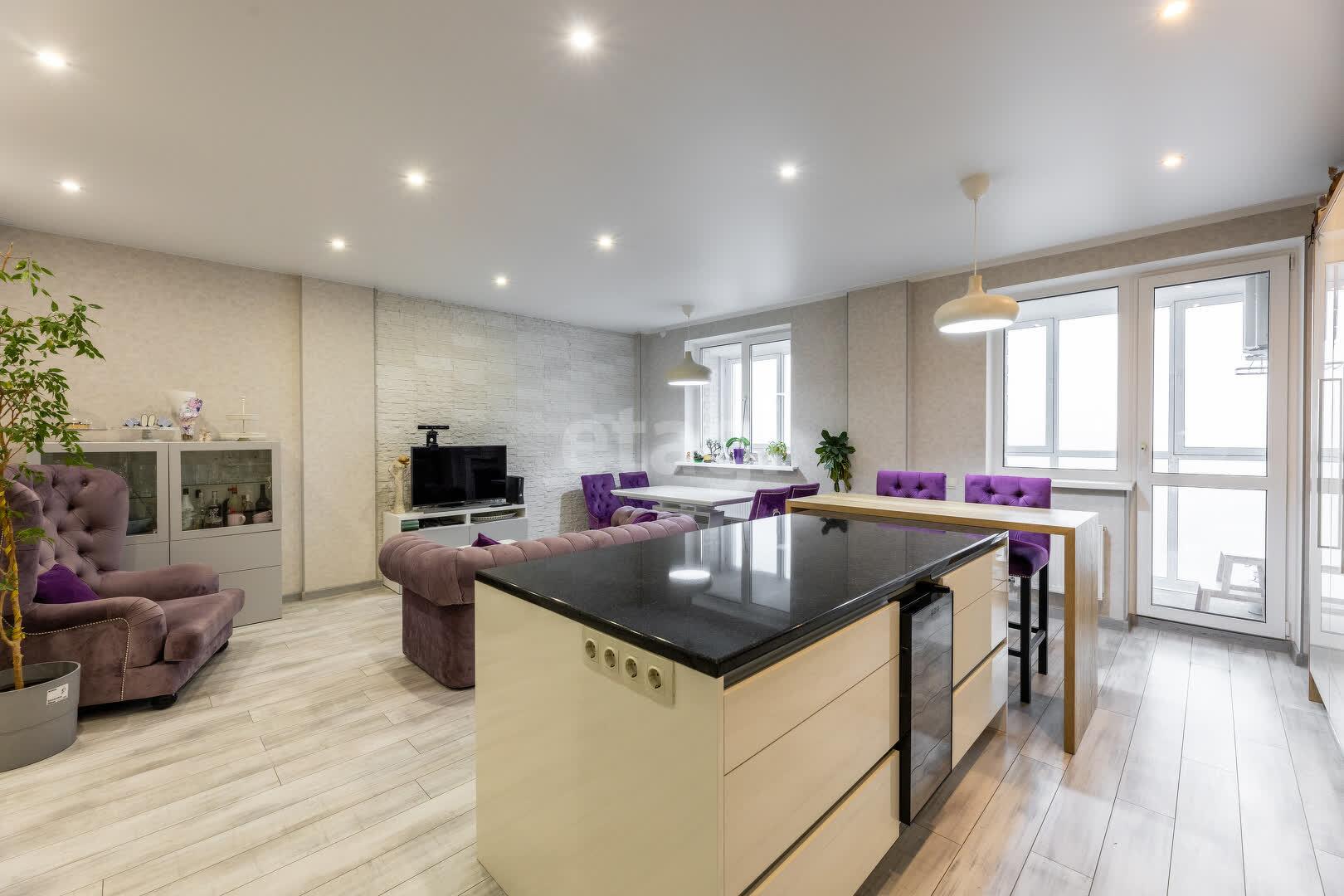 Квартира расположена на 19-м этаже, что открывает прекрасный вид на город, окна выходят на обе стороны дома. В квартире выполнен стильный современный ремонт. Окна ПВХ, лоджия с панорамным остеклением, на полу ламинат и плитка, грамотно и практично разведена электрика, натяжные потолки, 2 санузла облицованных плиткой, встроенные места для хранения, современные двери и фурнитура, кондиционер. Квартира оборудована современным кухонным гарнитуром со встроенной бытовой техникой LIEBHERR и BOSCH. Ремонт выполнен в светлых тонах с использованием только качественных материалов.