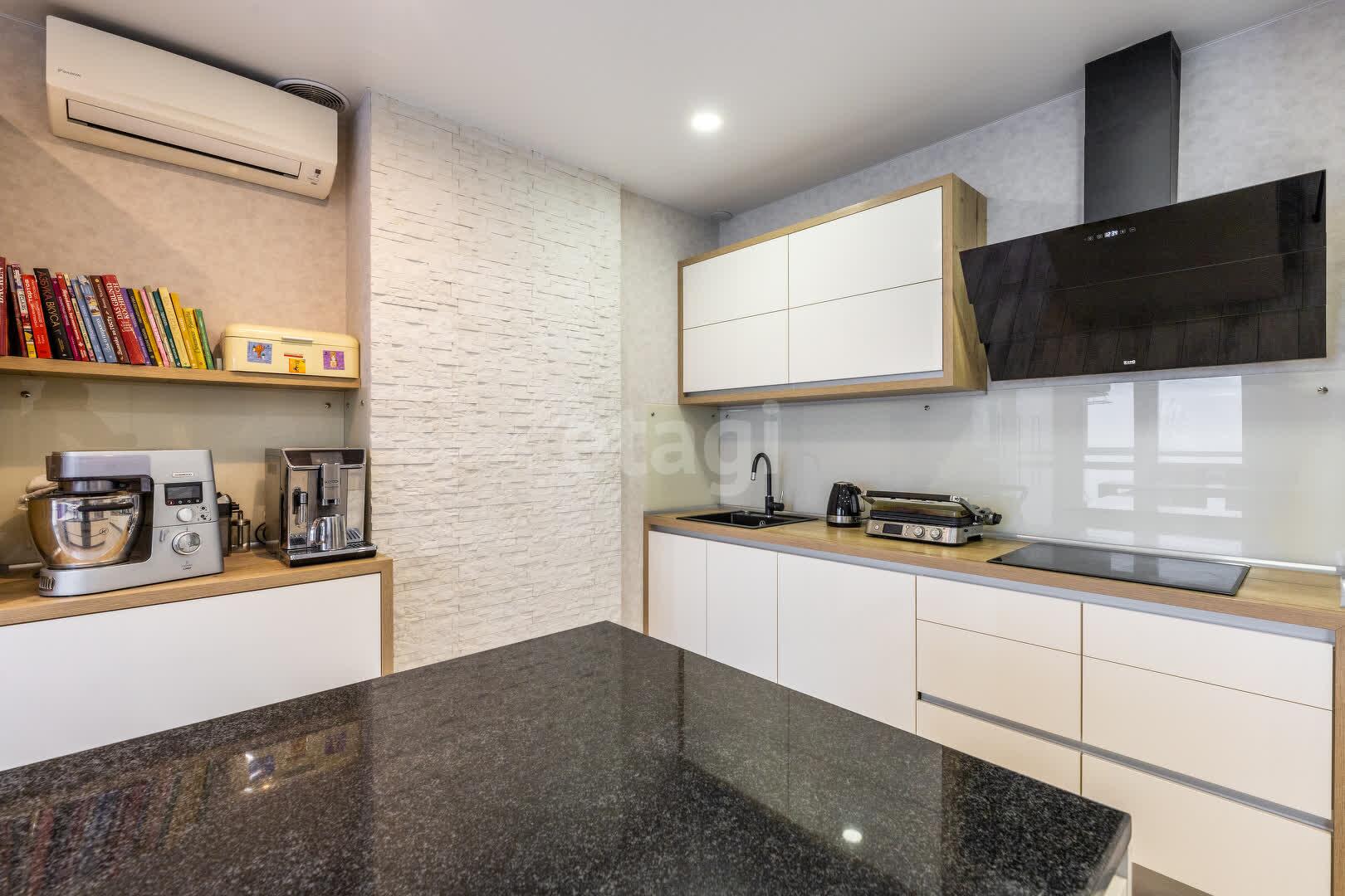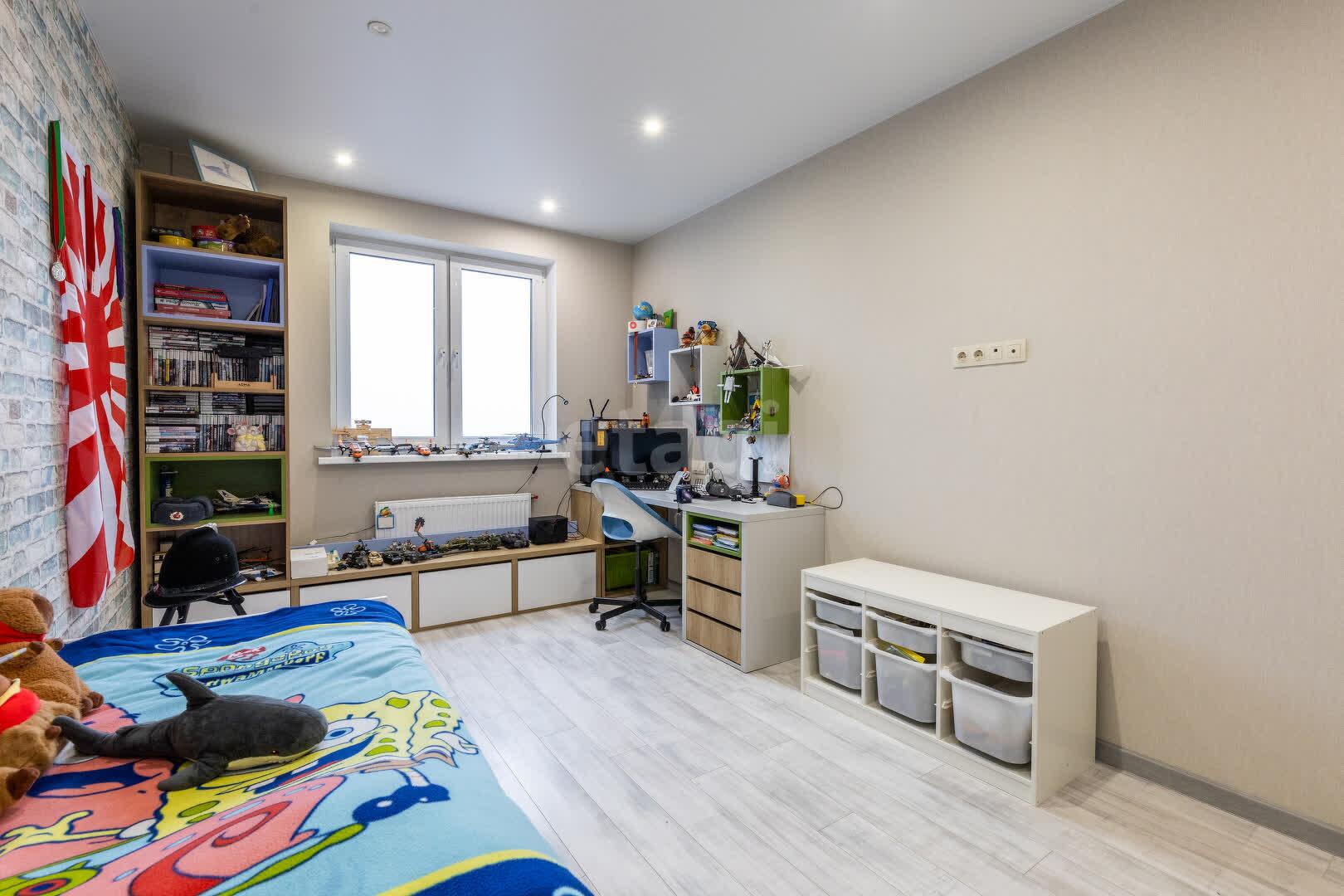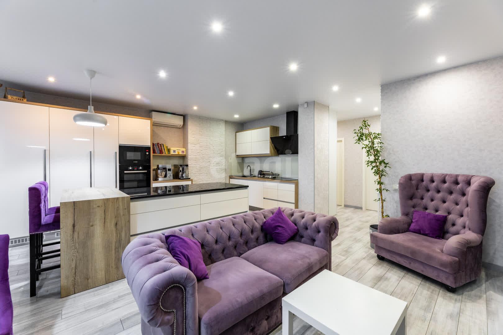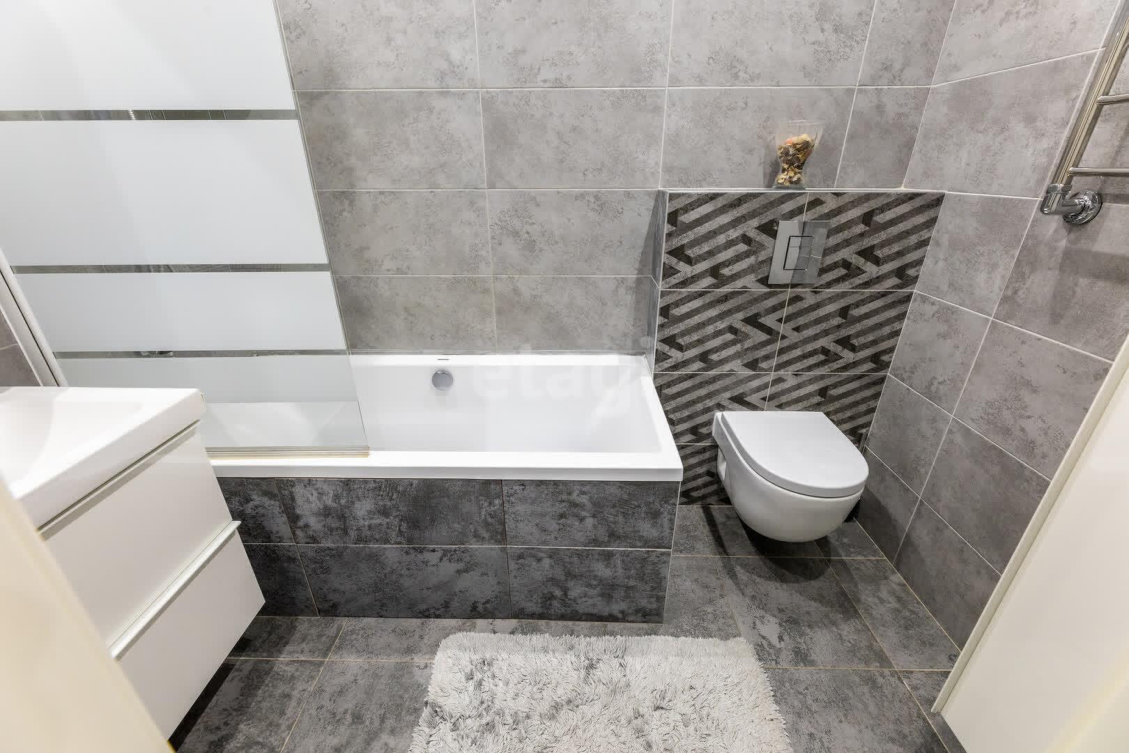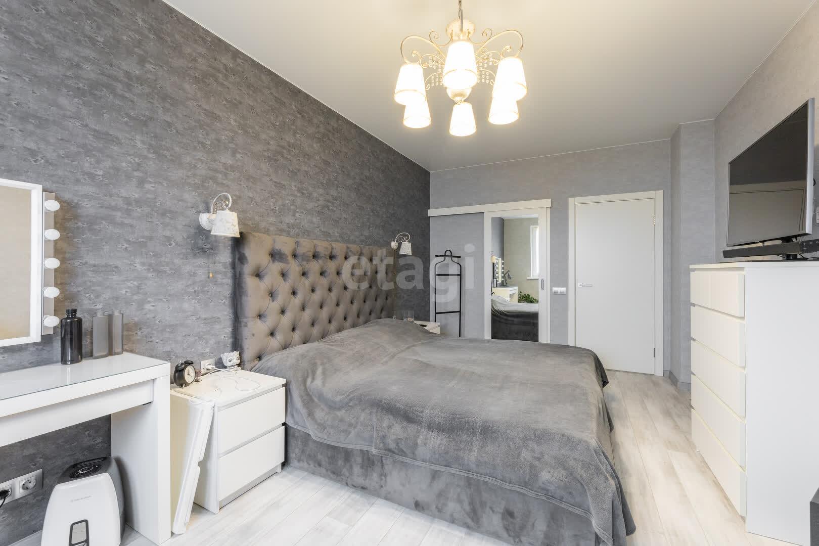 Квартира расположена на 19-м этаже, что открывает прекрасный вид на город, окна выходят на обе стороны дома. В квартире выполнен стильный современный ремонт. Окна ПВХ, лоджия с панорамным остеклением, на полу ламинат и плитка, грамотно и практично разведена электрика, натяжные потолки, 2 санузла облицованных плиткой, встроенные места для хранения, современные двери и фурнитура, кондиционер. Квартира оборудована современным кухонным гарнитуром со встроенной бытовой техникой LIEBHERR и BOSCH. Ремонт выполнен в светлых тонах с использованием только качественных материалов.