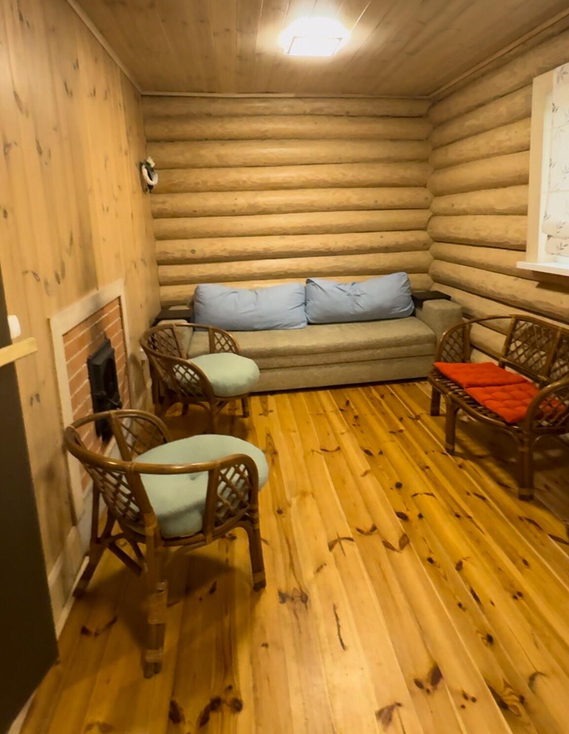 Дом готов к проживанию. Построен из оцилиндрованного бревна, обработанного по специальной технологии. Внутри дома бревно обработано экологичным составом на основе пчелиного воска. Пол – деревянная доска, обработанная натуральным составом и покрыта лаком на натуральной основе. Терраса выполнена из высококачественной террасной доски (лиственница).