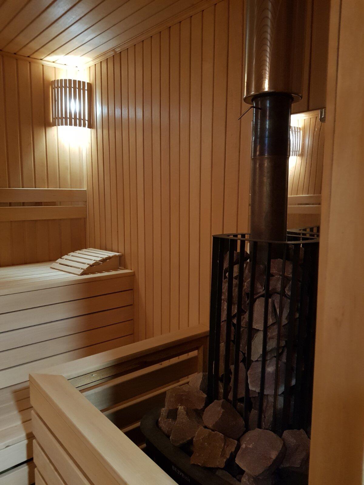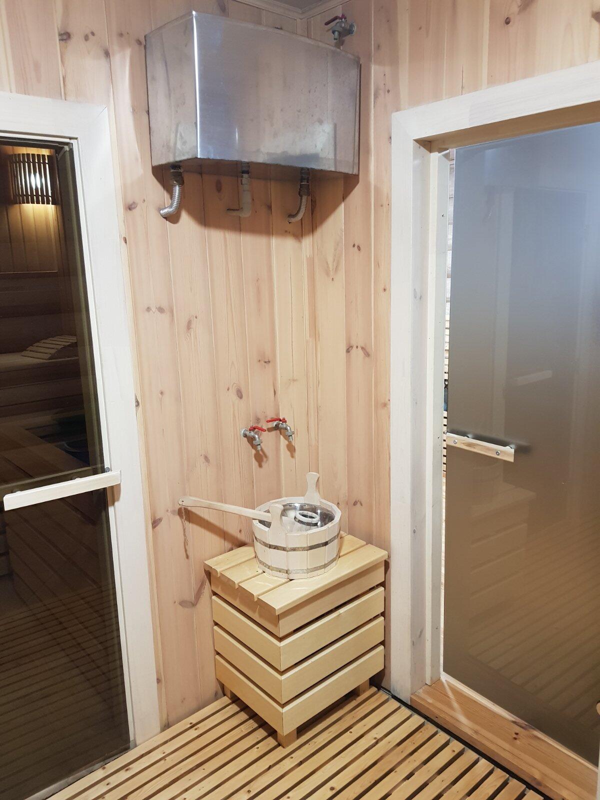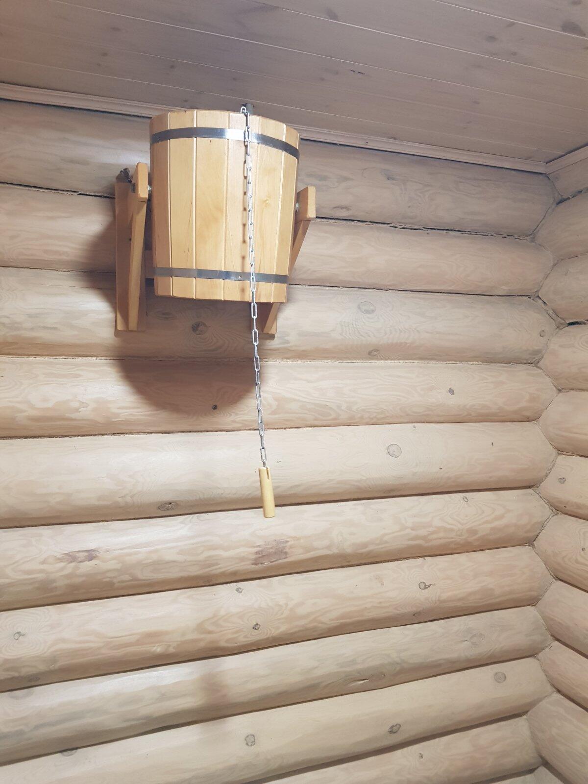 Установлено обливное ведро для бани. Есть каменка с высококачественными камнями из Карелии для жара. В комнатах стеклянные жароустойчивые двери.