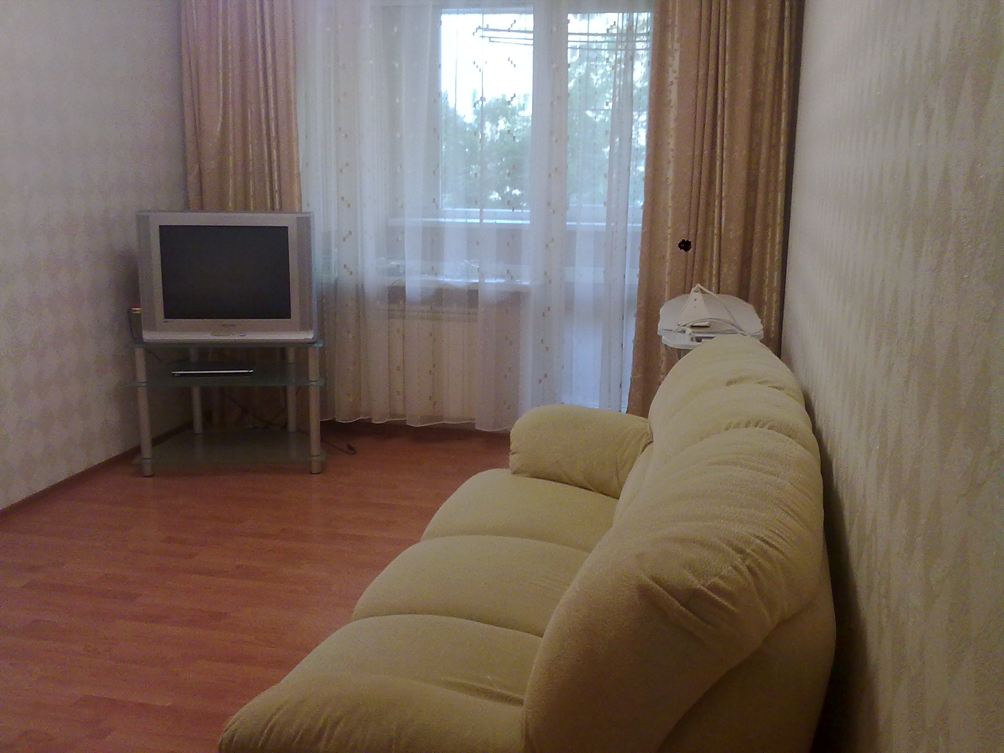 В зале 2 белых дивана(один раскладывается),телевизор.
