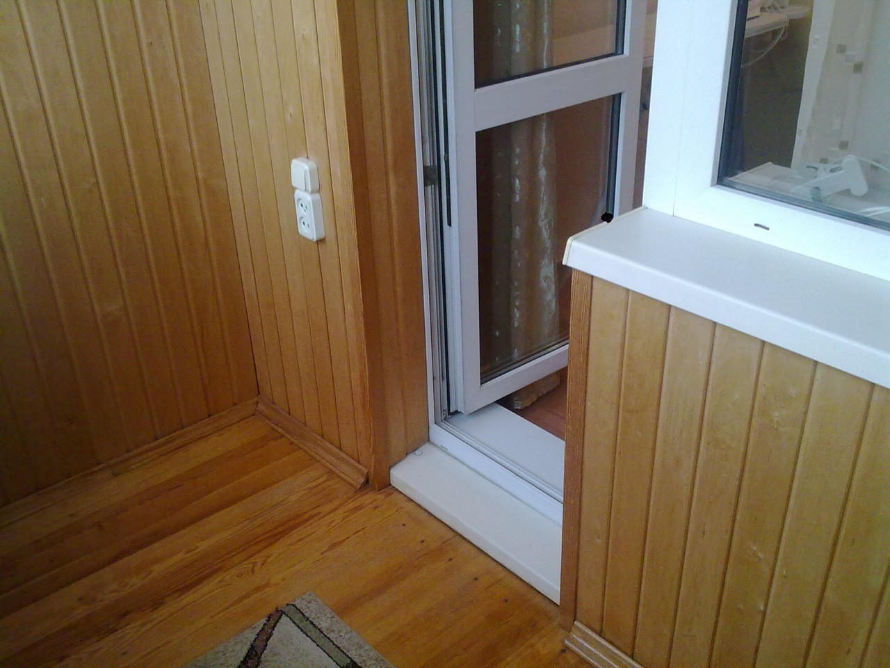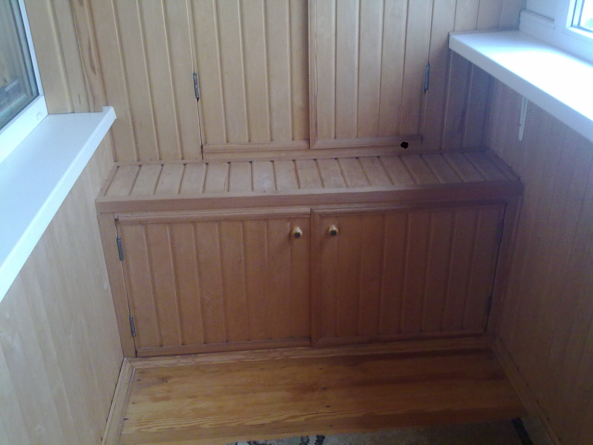 Балкон утеплён, обшит натуральным деревом, шкаф, стеклопакеты, сушилка для белья.