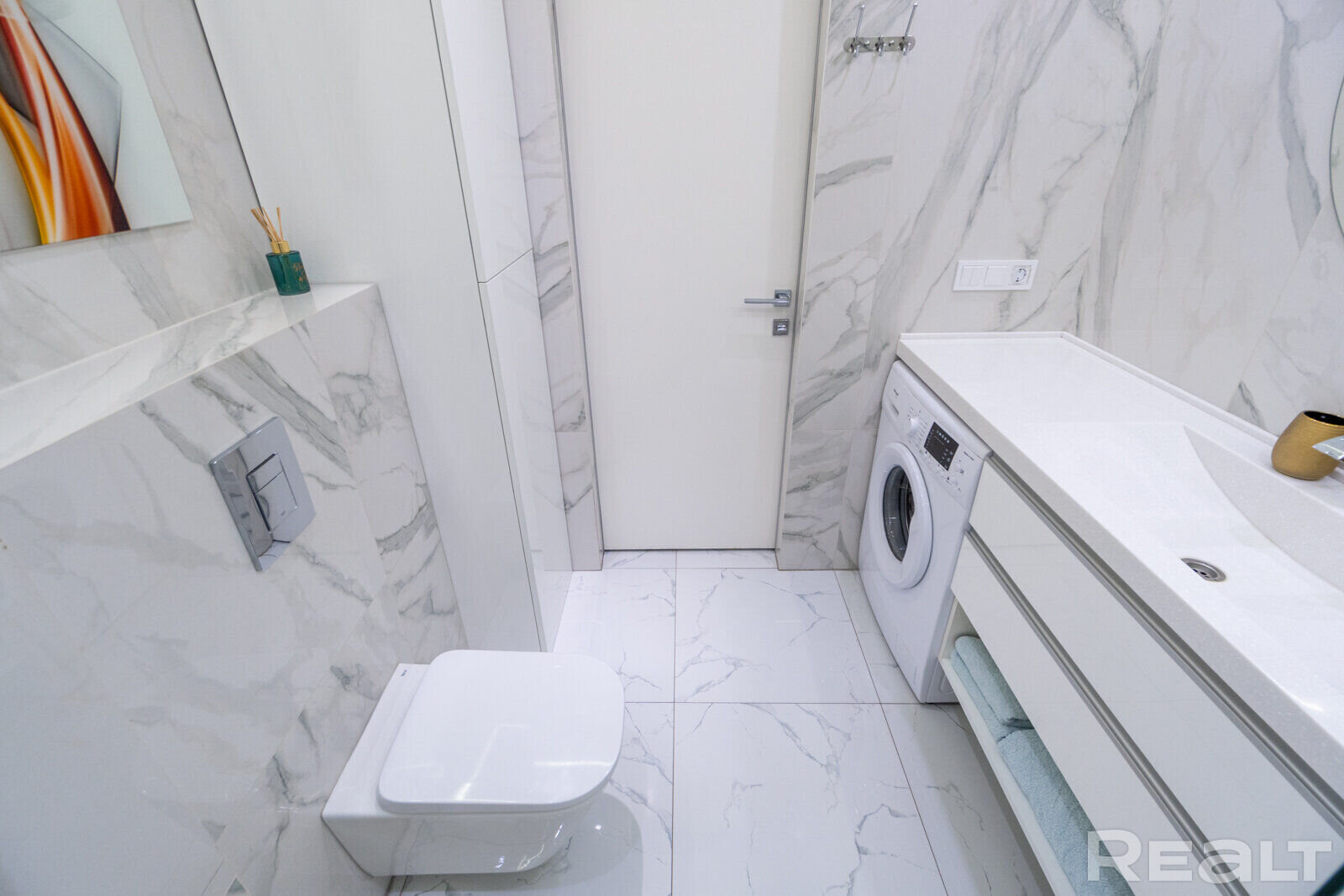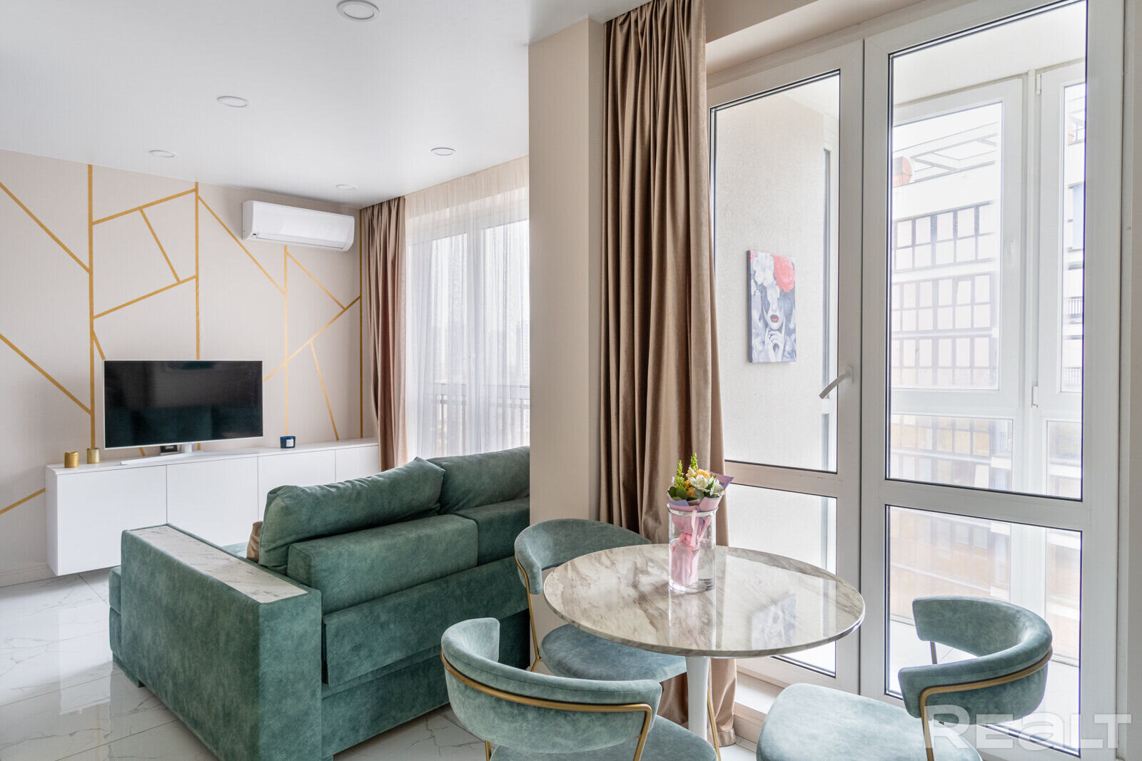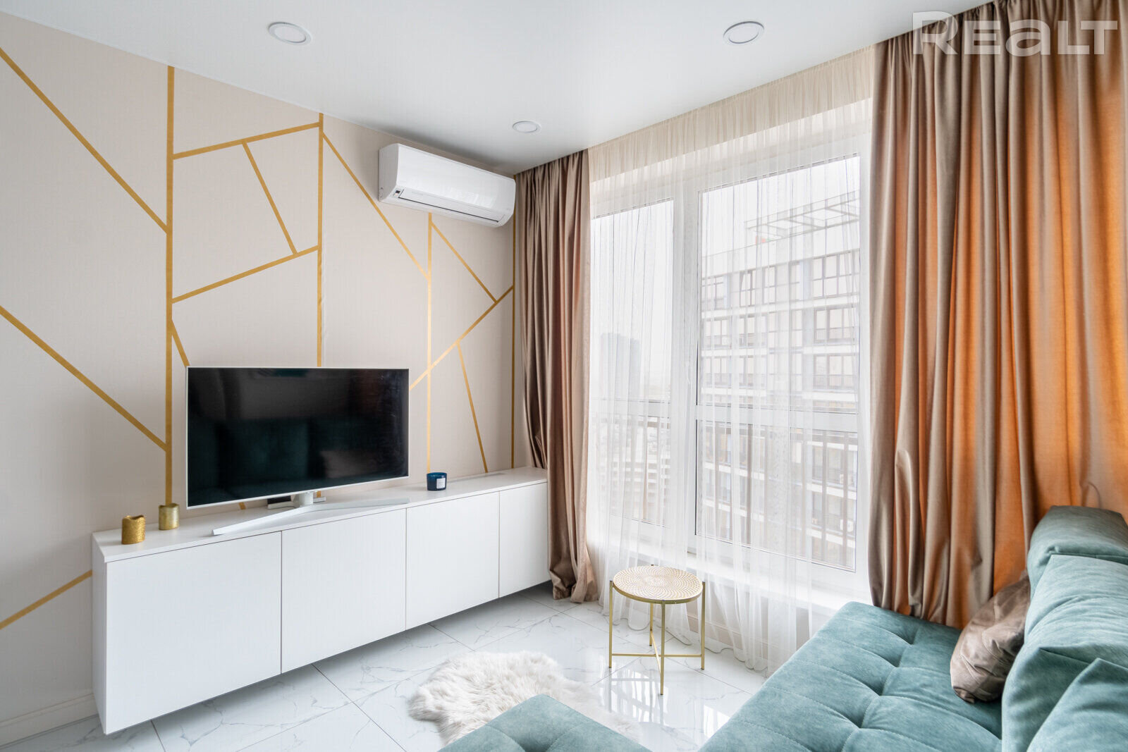 Сдается новая дизайнерская квартира от собственника в жилом комплексе Минск-Мир .С видом на МФЦ и ТЦ Авиа Молл .Метро Аэродромная в 100 м от дома ! Первое заселение ! Отличный район, хорошо развита инфраструктура и транспортное сообщение в любую точку города. С парковкой нет проблем. В квартире сделан качественный ремонт и использованы дорогие материалы. Ремонт делали для себя не для сдачи. Много мест для хранения. Двуспальная кровать с ортопедический матрасом . В кухне-гостиной комфортный угловой диван для постоянного сна. Есть вся бытовая техника : электрическая индукционная плита, вытяжка, встроенный холодильник, встроенная микроволновая печь, духовой шкаф ,посудомоечная машина ,кондиционер,большой телевизор Smart, стиральная машина. Высокоскоростной интернет .