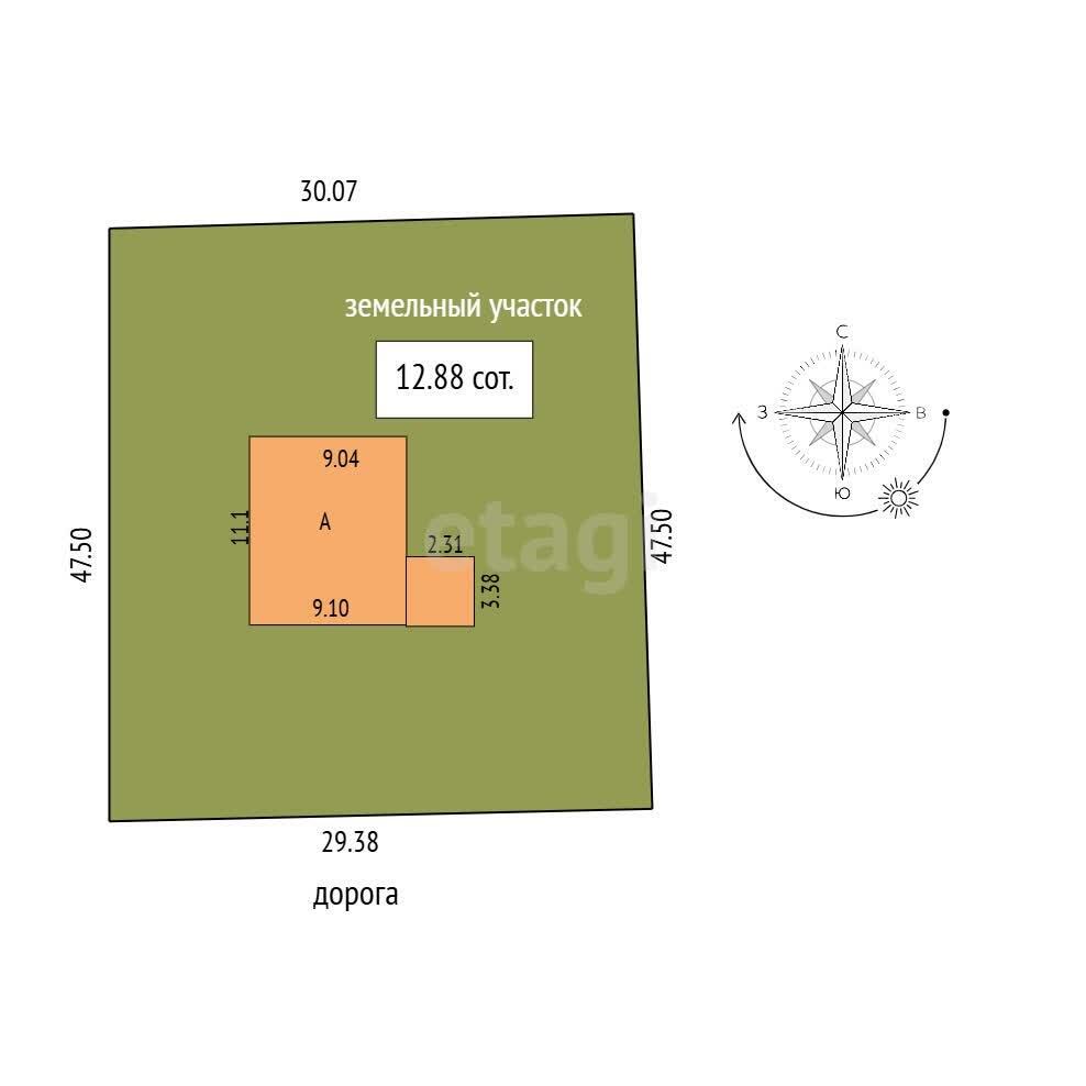 Земельный участок: 0,12 га с ландшафтным дизайном.