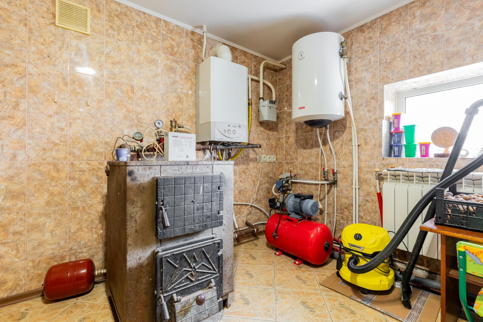 Газовое отопление с возможностью использования твердого топлива.