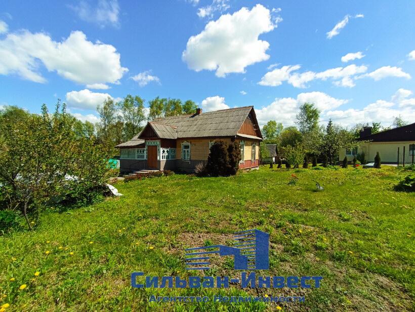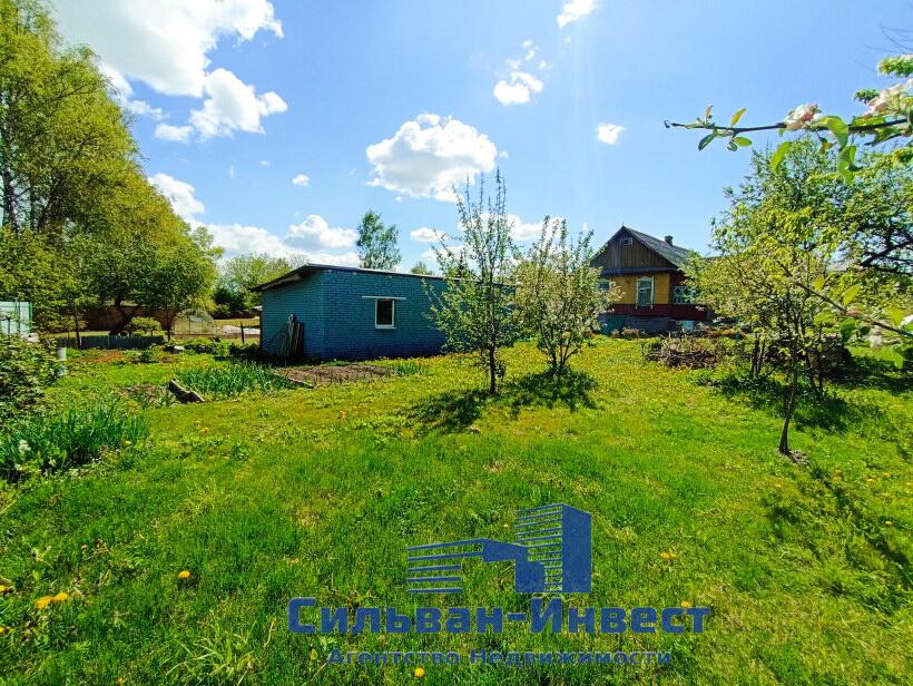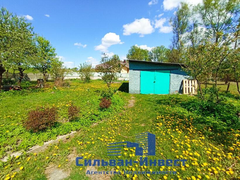 На участке крепкий, сухой, деревянный дом, введена вода, подключена местная канализация, большой кирпичный гараж на две машины, проведено оптоволокно от Белтелеком.