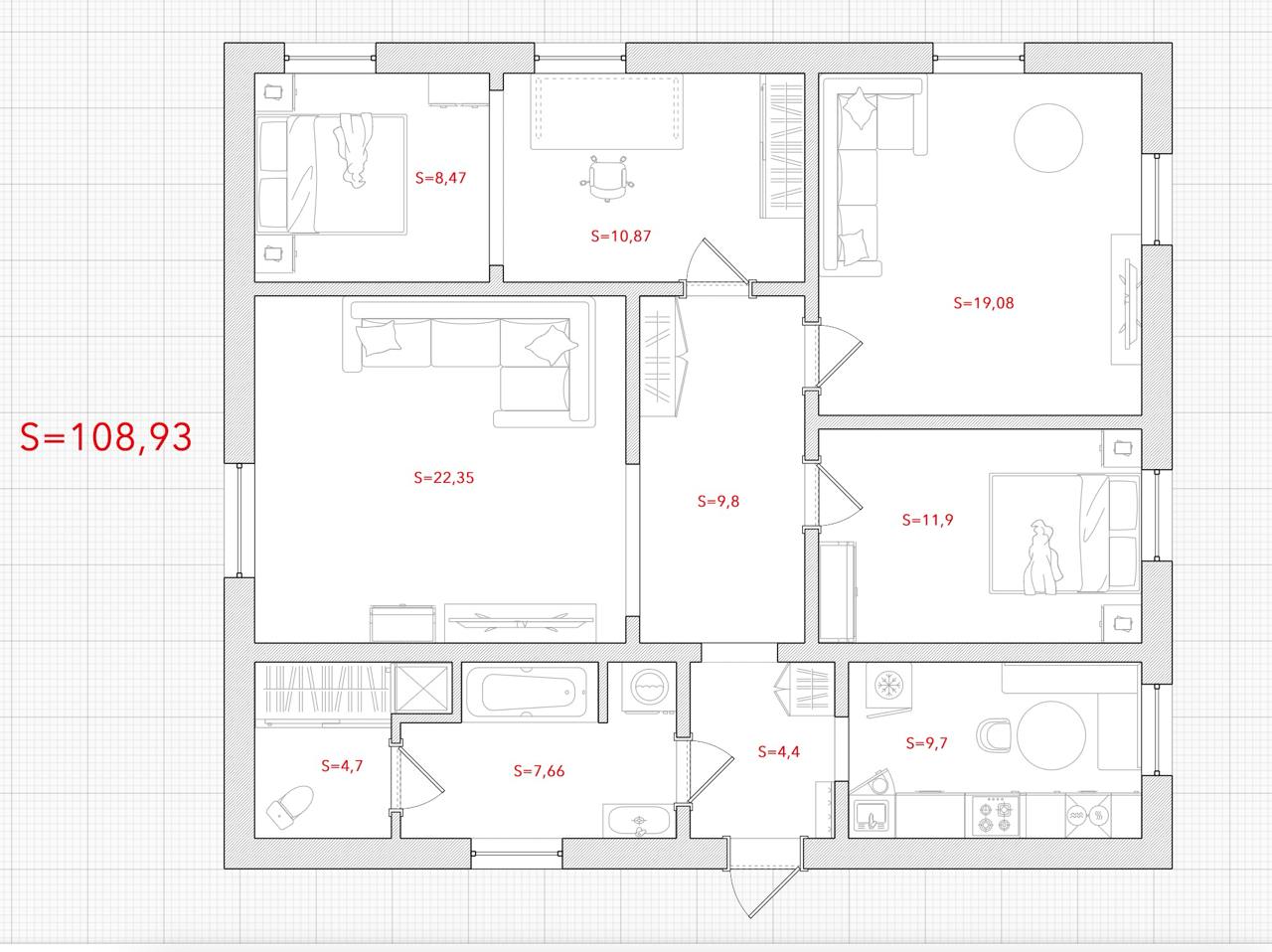 | Общая площадь | 109 м² |