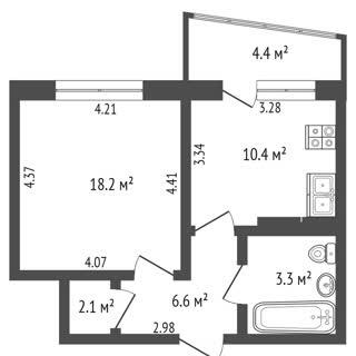 Общая площадь квартиры составляет 44,8 м2 (по СНБ), удобный 3 этаж 4-этажного дома.