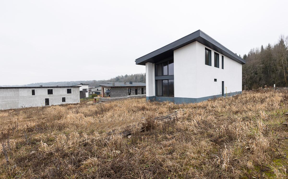 - Дом оштукатурен и окрашен грунтовкой