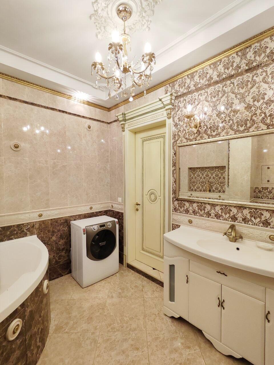 Просторная ванная комната со стиральной машиной.