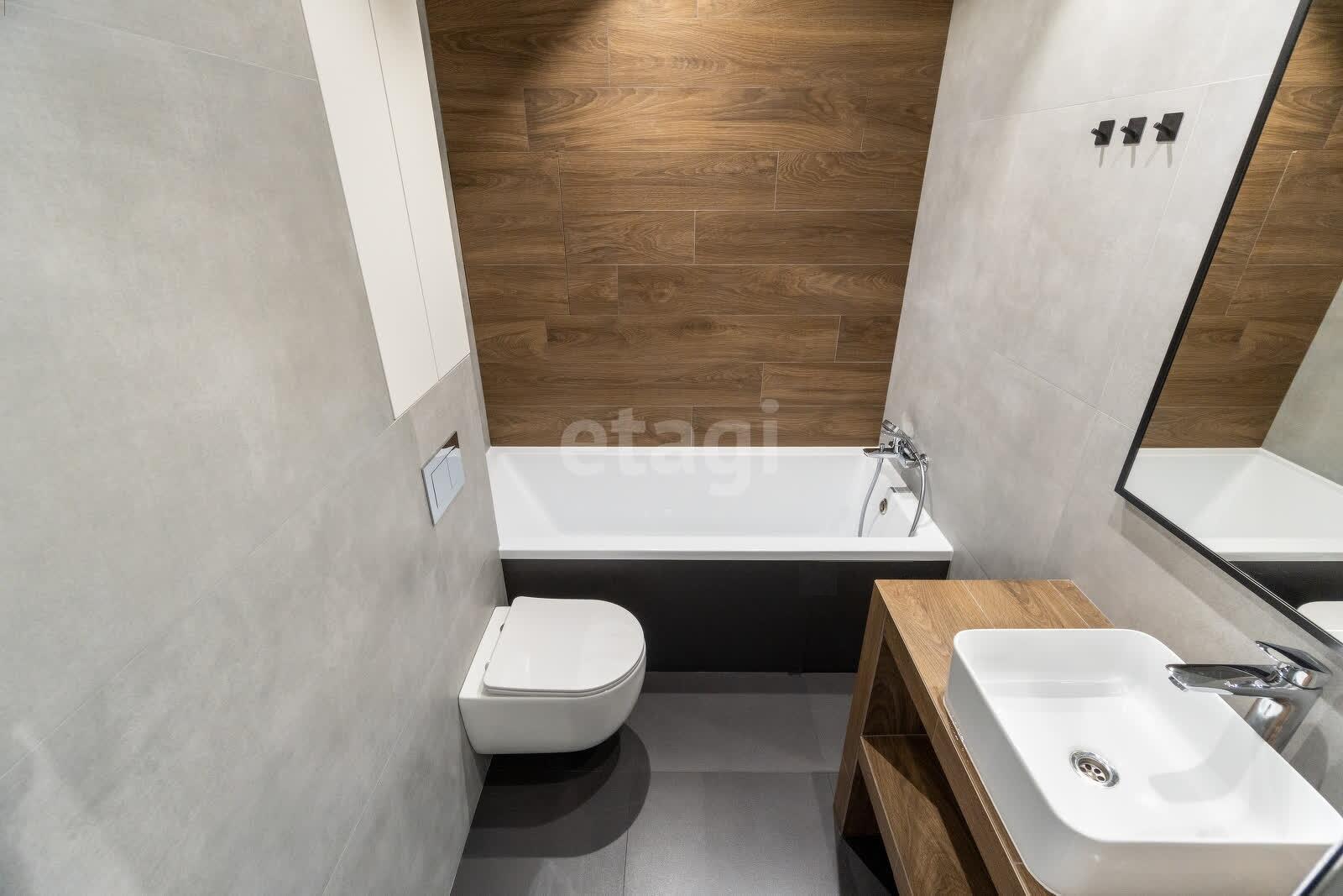В квартире выполнен стильный ремонт для современных, амбициозных людей: на полу дубовая трёхслойная паркетная доска Coswick, керамогранит, подоконники из натурального дуба, под окнами установлены усиленные внутрипольные конвекторы Kermi (Германия).