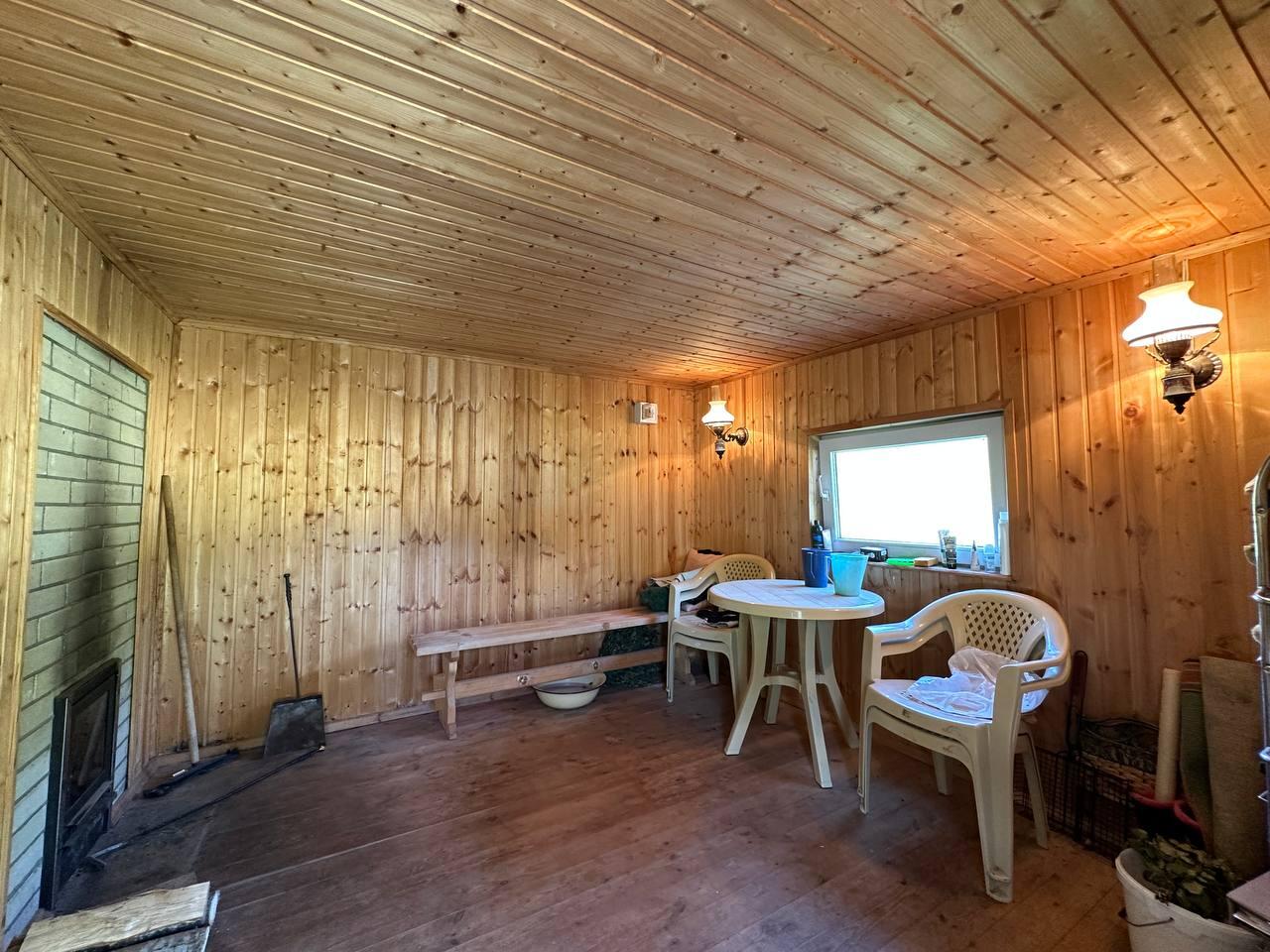 - материал стен: бревно, обшит доской (шалёвка = тонкая доска)