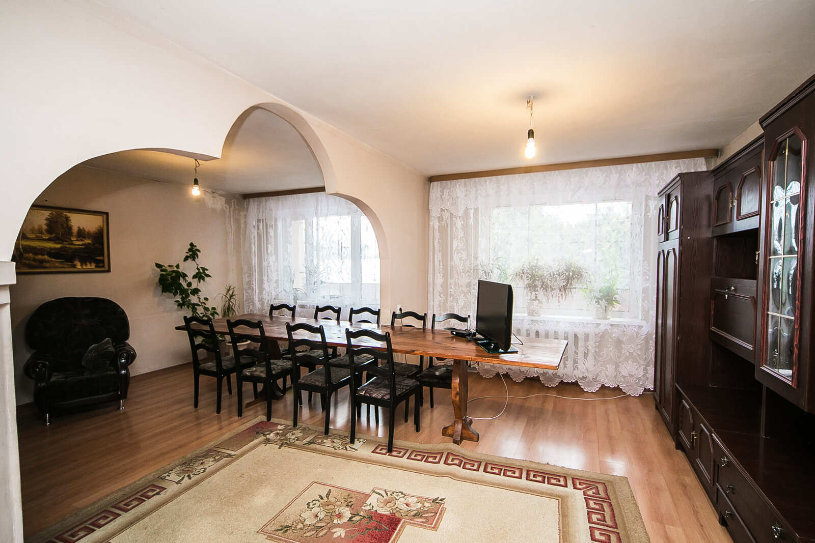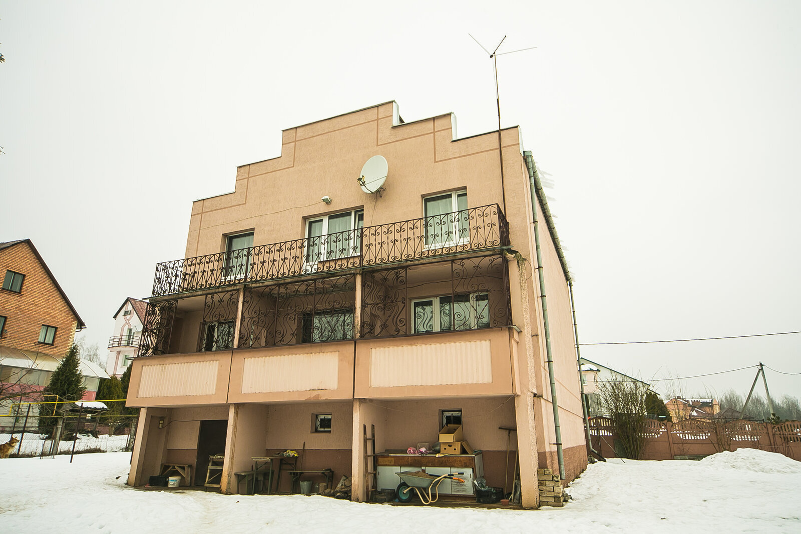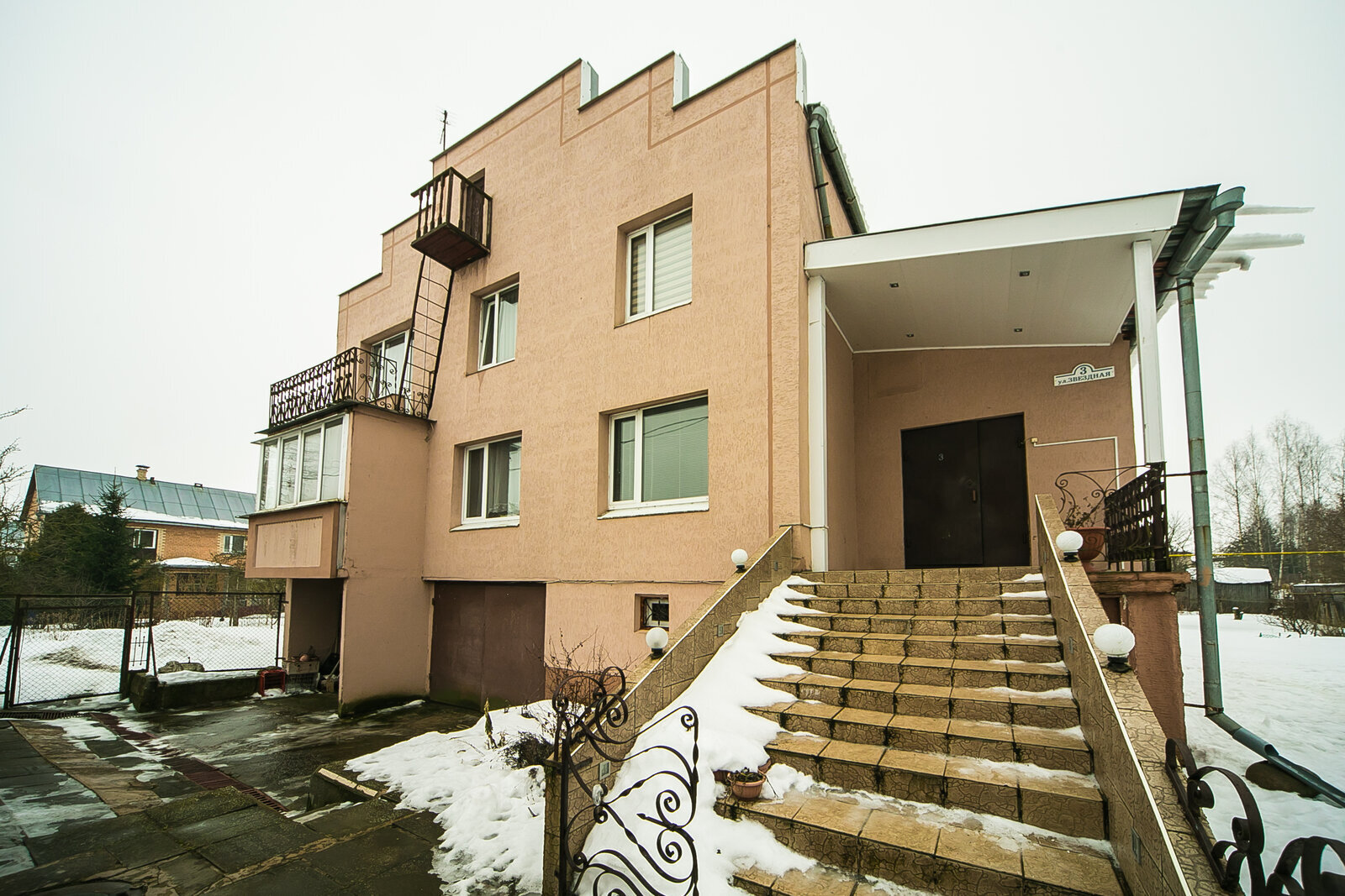 Отличный жилой дом 100% готовности. Материал стен – панели, обложен газосиликатными блоками, оштукатурен и покрашен, 3 уровня. В доме 2 с\у, 7 раздельных комнат, место для хранения (подвал по всему периметру дома), гараж. Канализация местная, вода – скважина (2), газ, окна стеклопакеты.