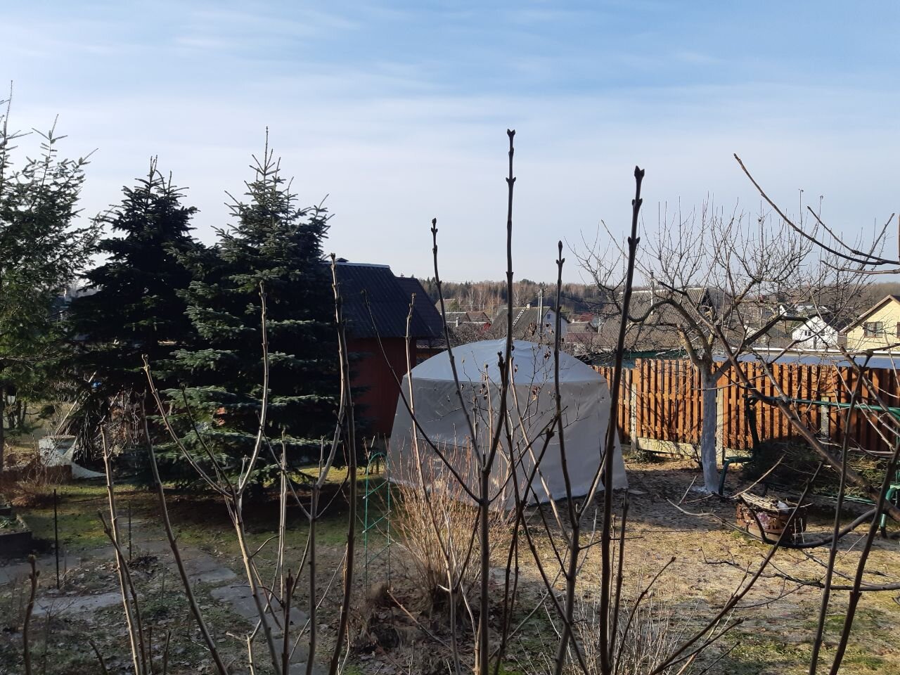 На участке располагается постройка – баня, в которой находится санузел и комната для хоз. инвентаря.Также располагается теплица. Очень много культурных растений, декоративных цветов, плодовых деревьев и аккуратный газон. Вода – скважина, канализация местная, свет. Возможность проживать круглогодично, хорошие соседи. Участок ровный, на возвышенности, огорожен (откатные ворота).