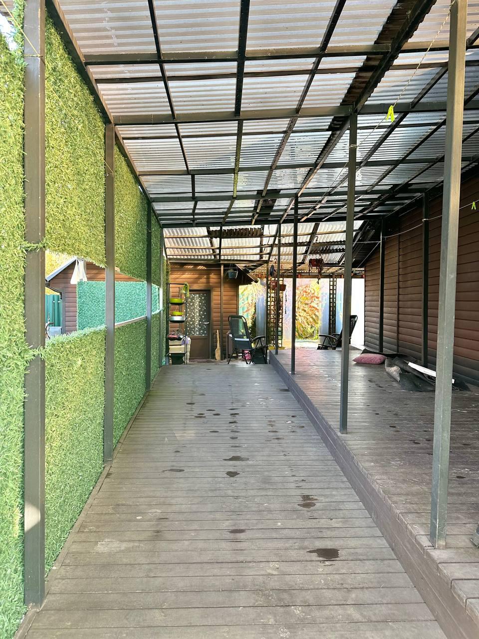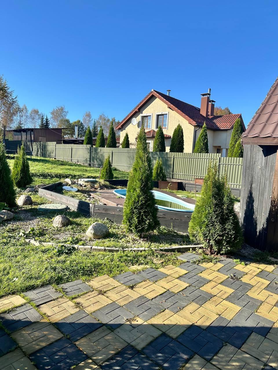 Идеально спланирован участок - выложена плитка, оборудованная детская площадка, беседка, открытая терраса, бассейн 6,5 кубов, баня.Разнообразие плодоносных кустарников и деревьев.
