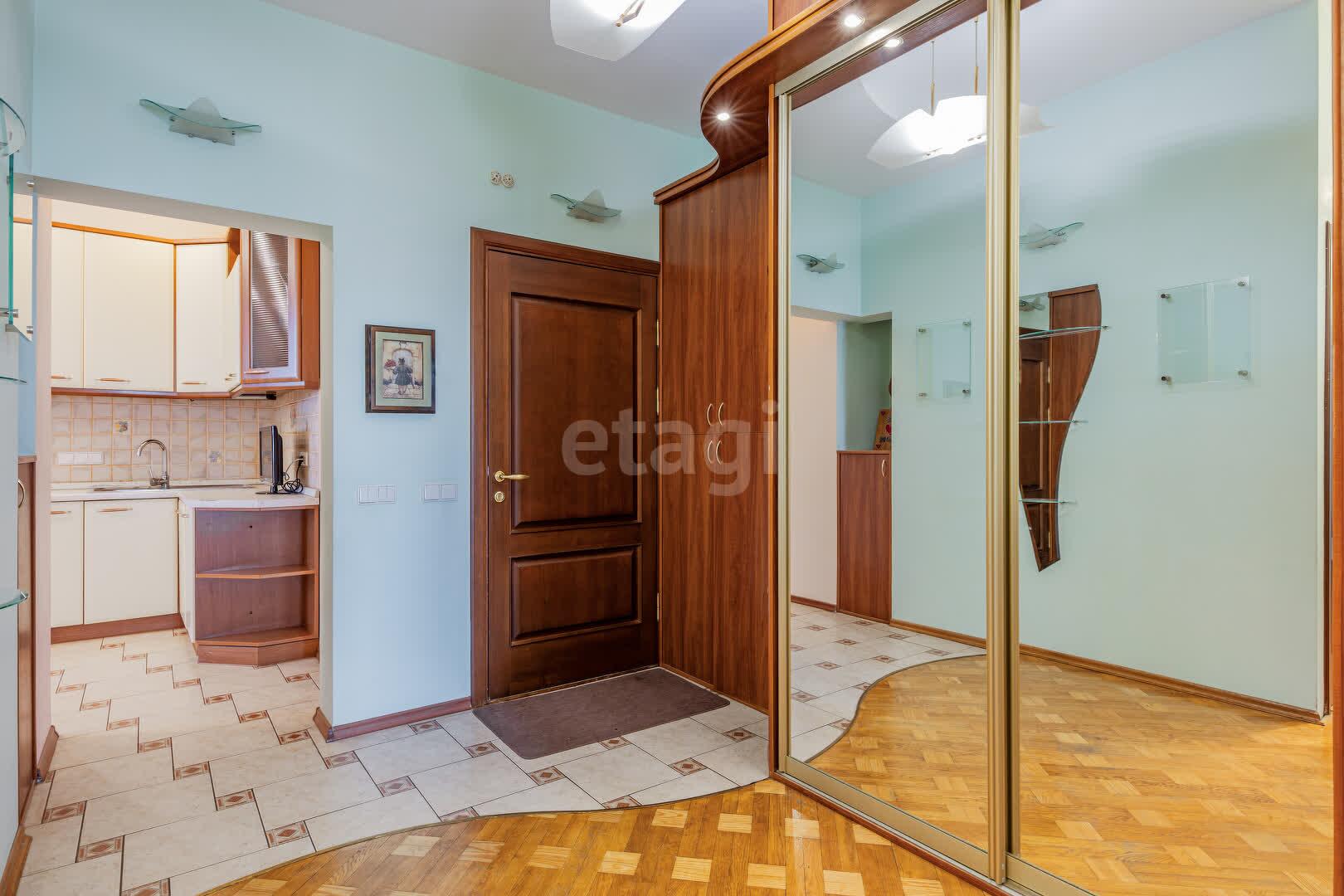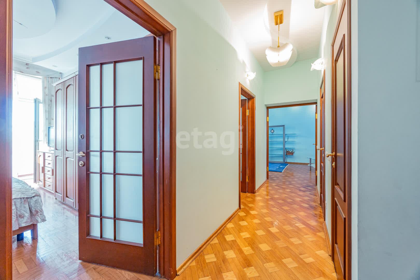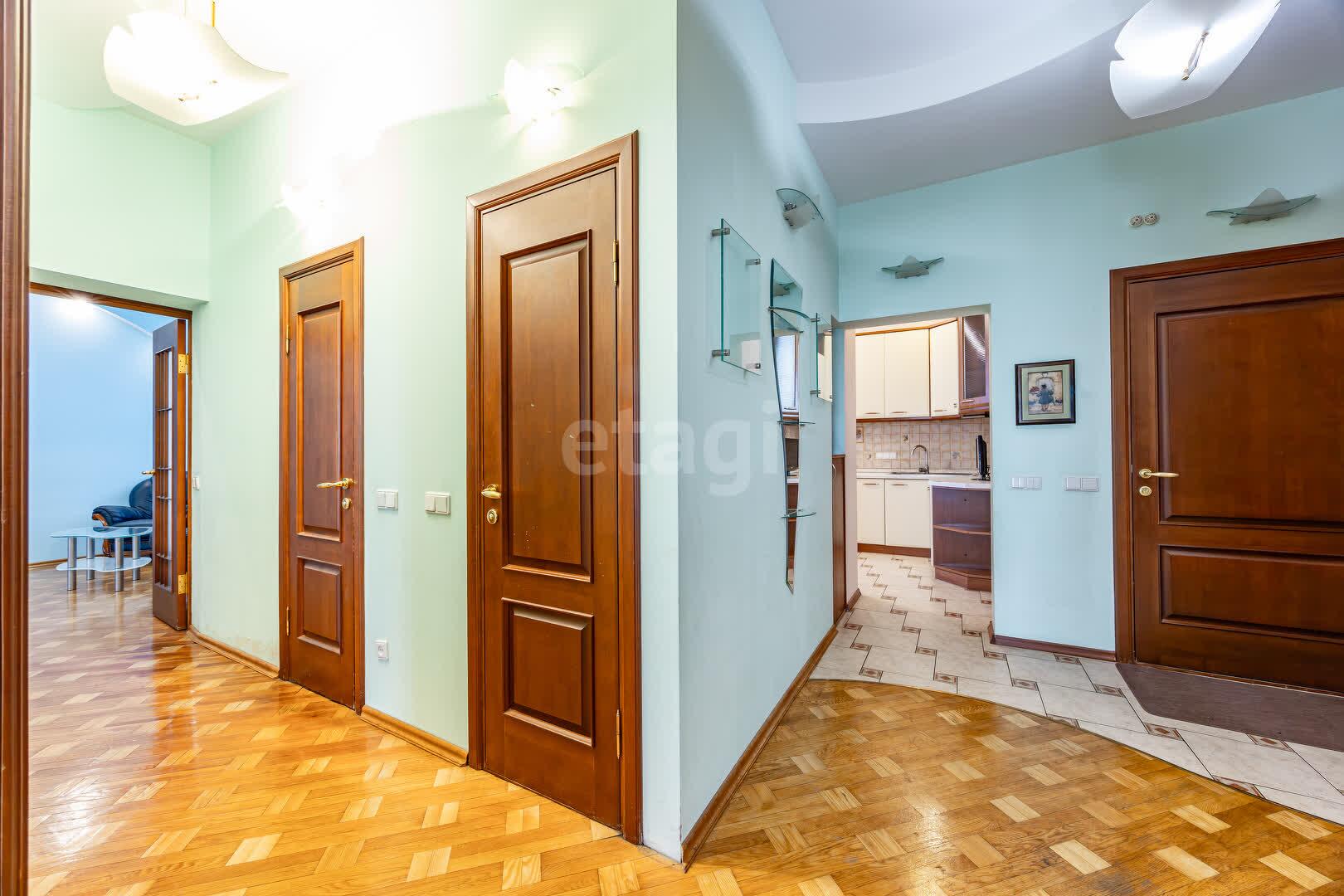 На полу уложен паркет, на кухне и в санузле плитка (с подогревом). Стены подготовлены под покраску.