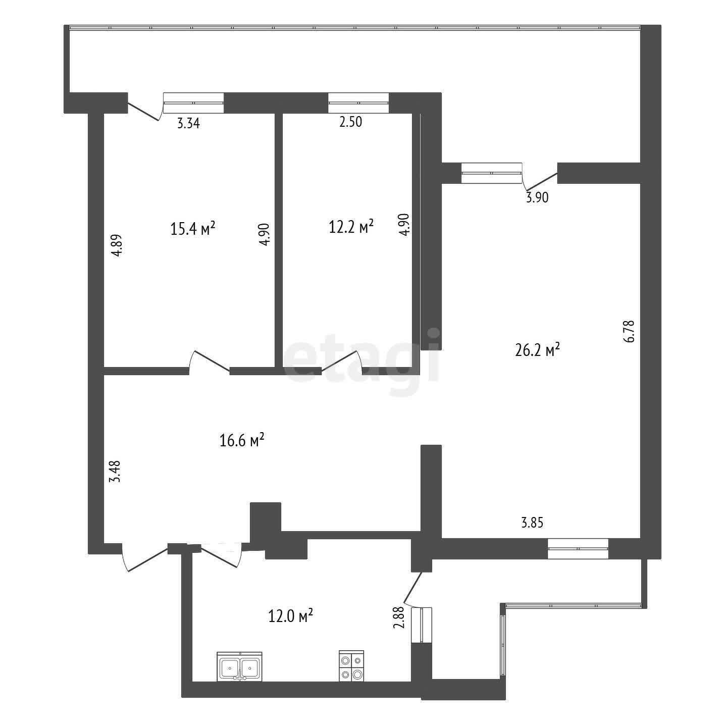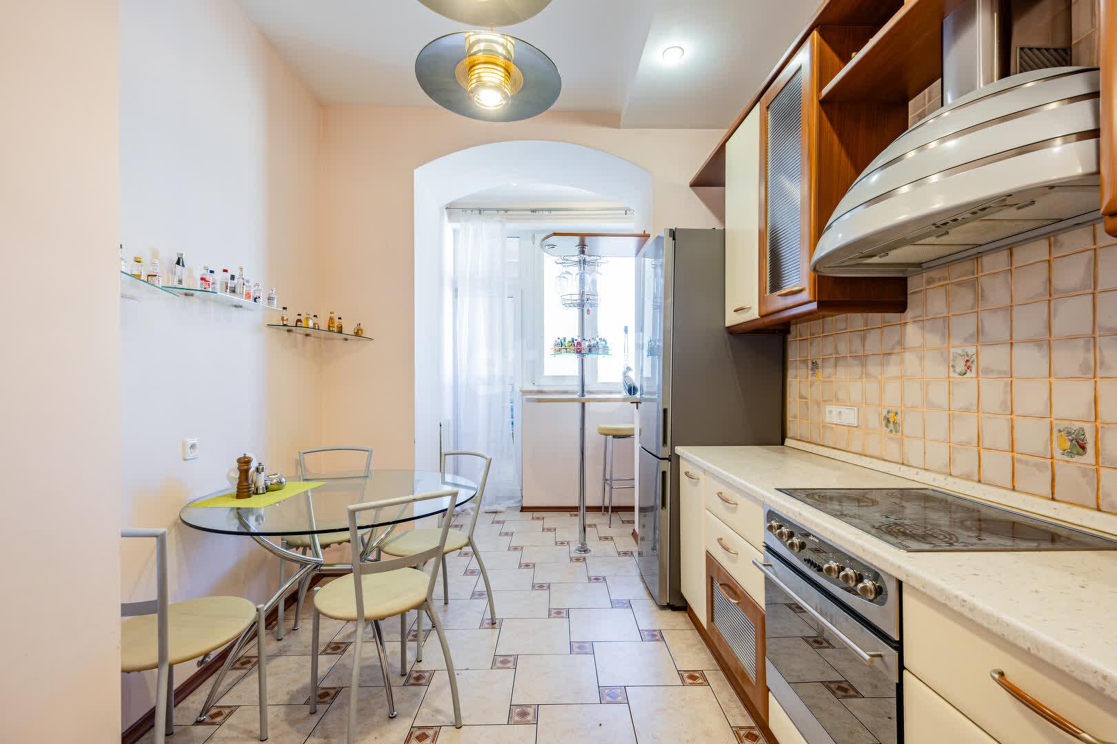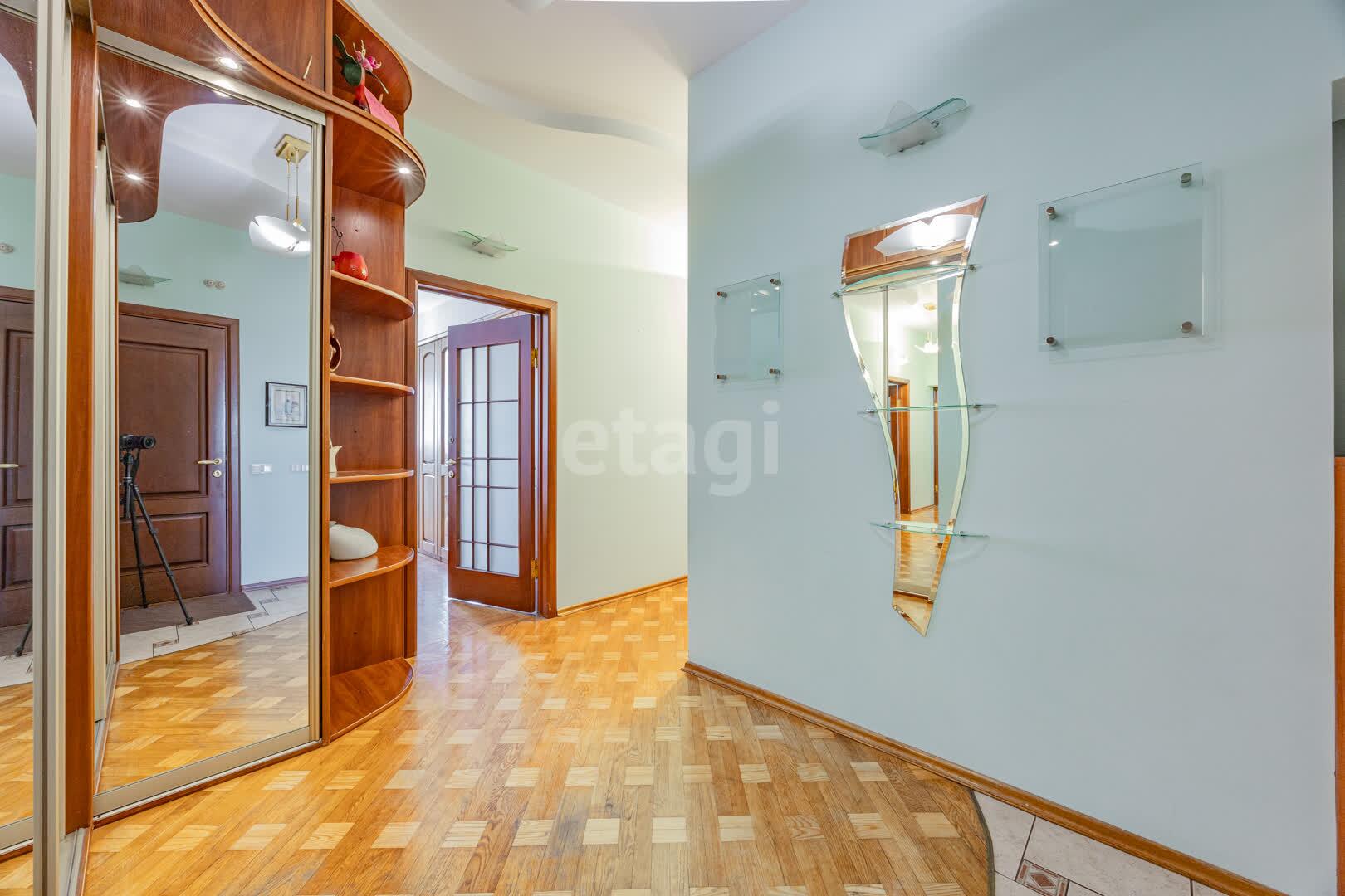 На полу уложен паркет, на кухне и в санузле плитка (с подогревом). Стены подготовлены под покраску.