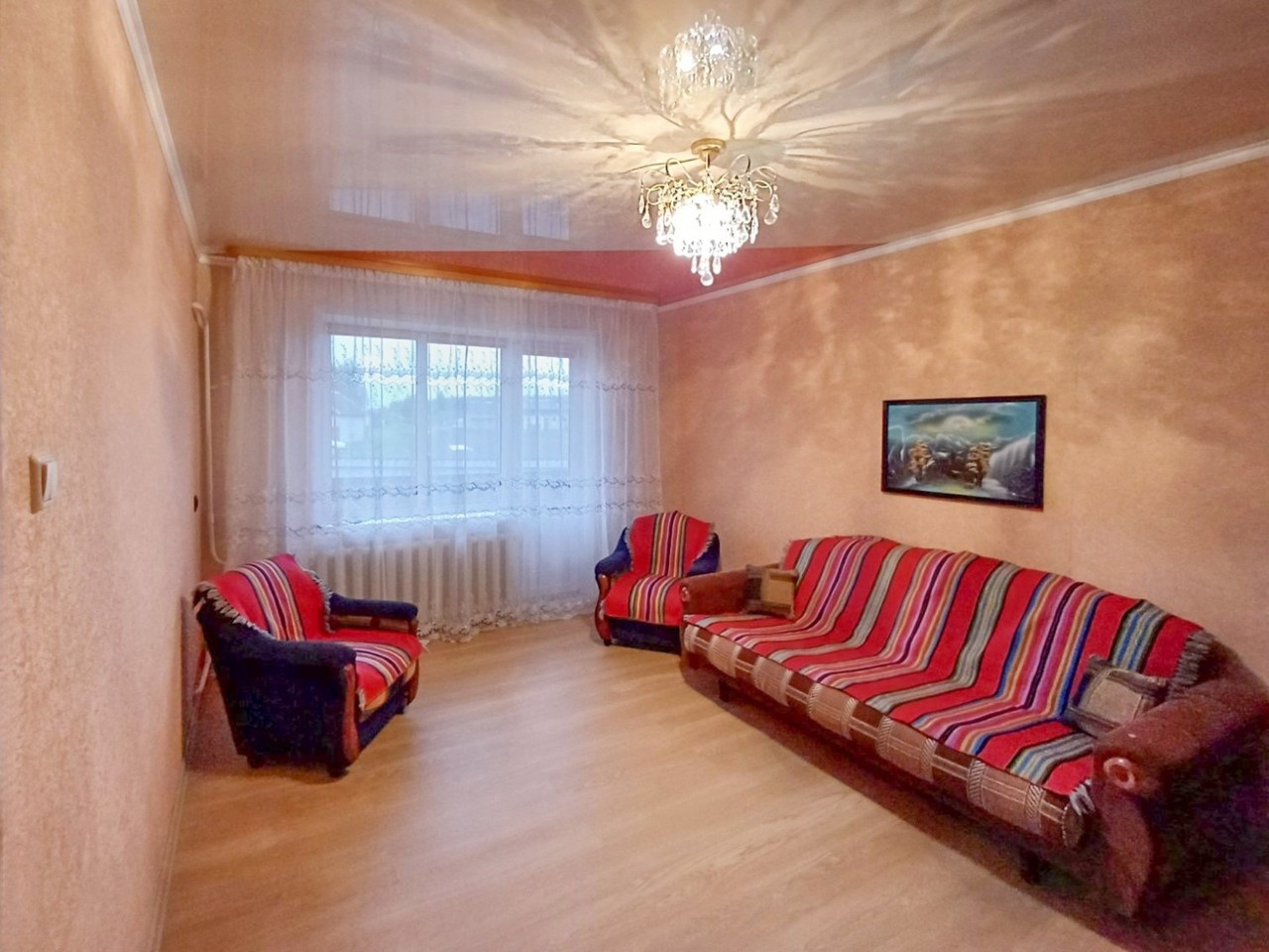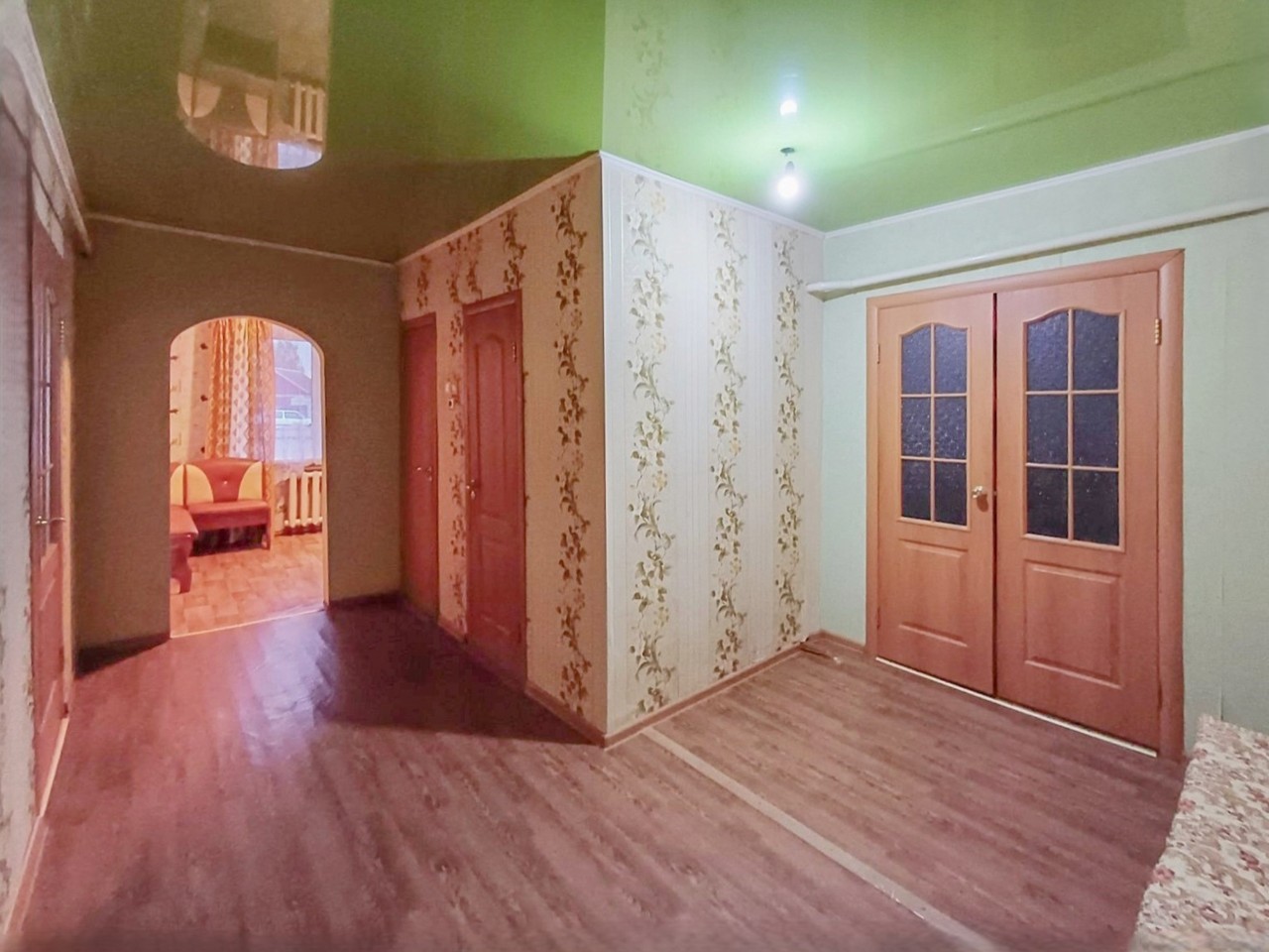 Сделан хороший свежий ремонт. Стеклопакеты ПВХ, металлическая входная дверь, межкомнатные двери МДФ, натяжные потолки (комнаты и прихожая), в с/у панели ПВХ. В жилых комнатах на полу уложен ламинат, в санузле - плитка, установлена новая акриловая ванна.