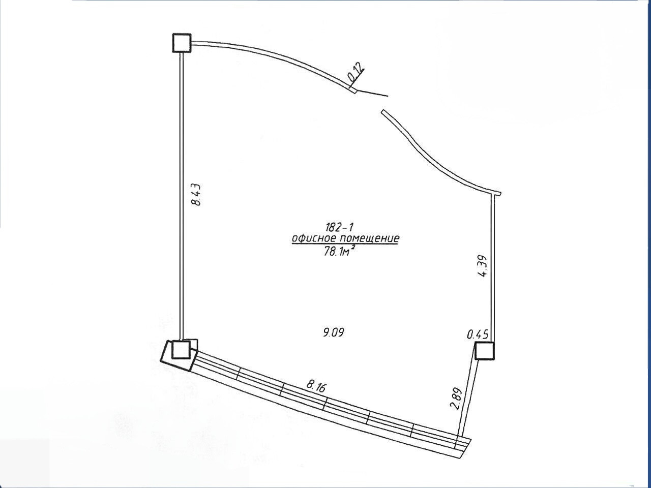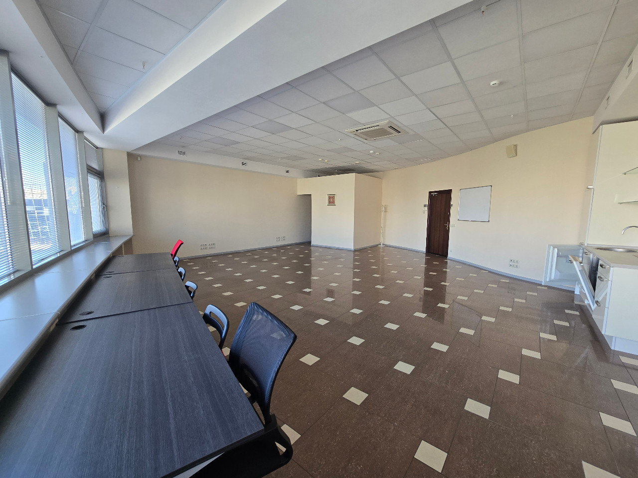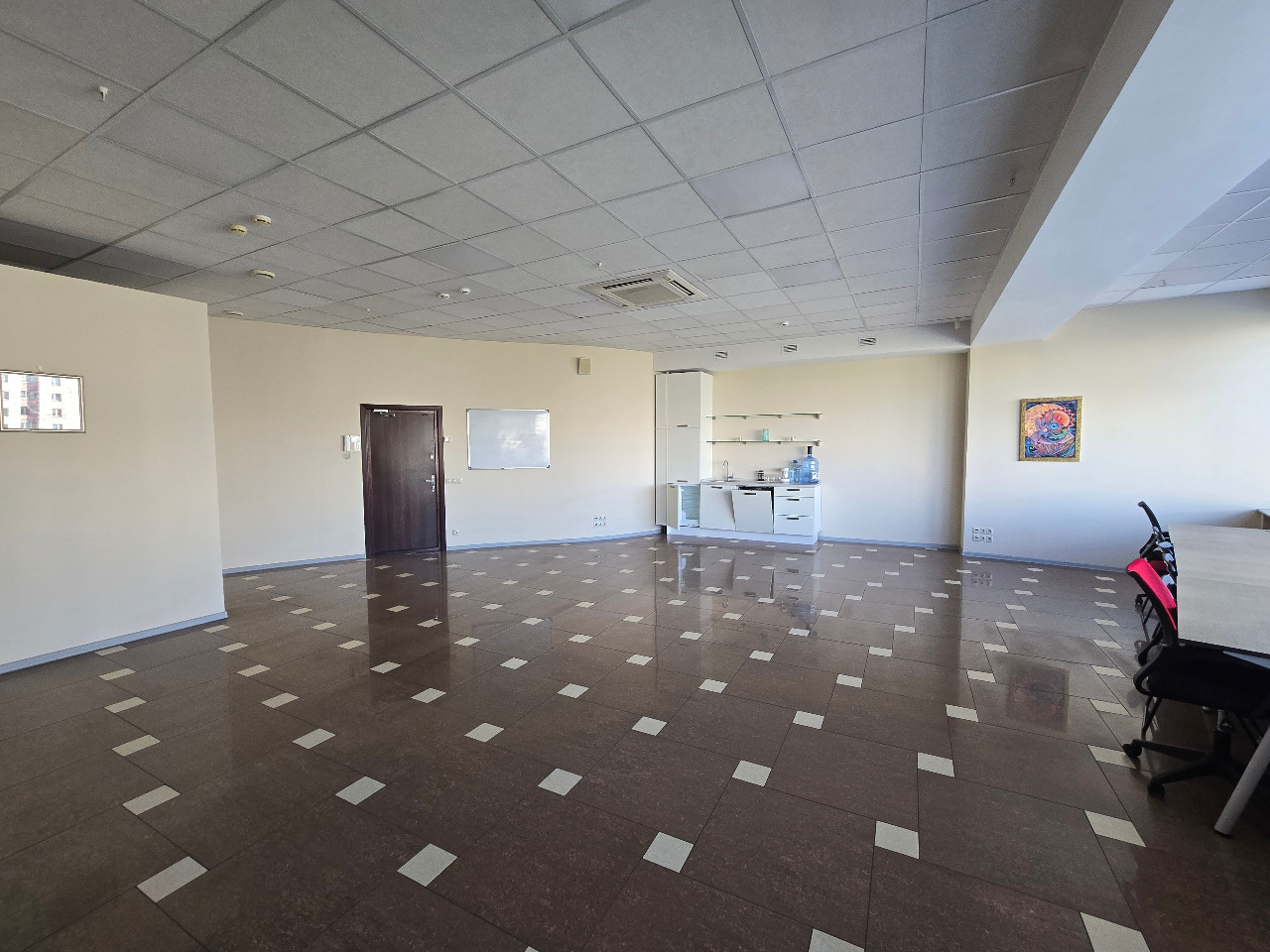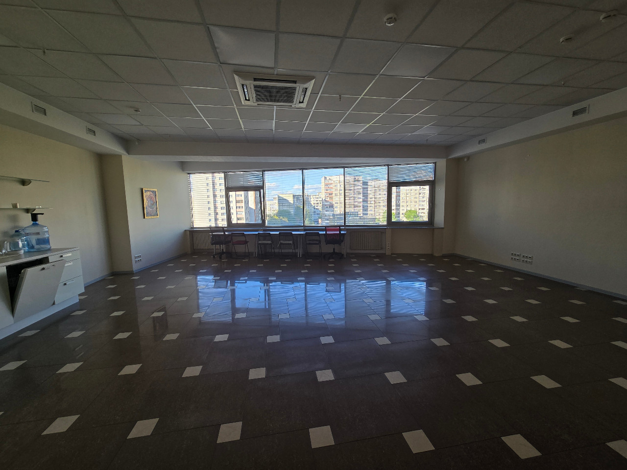 Помещение единым пространством площадью 78,1 кв.м, потолки 3 м, большие панорамные окна (высокая степень инсоляции), встроенная мини-кухня с подводом коммуникаций, кондиционировано, функционирует приточно-вытяжная вентиляция. Помещение не требующее ремонта: керамическая плитка на полу, стены окрашены, потолок типа Armstrong . Заведены центральные коммуникации.