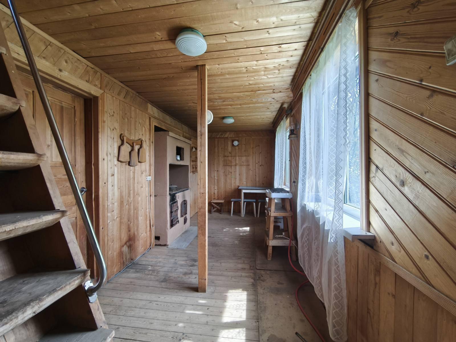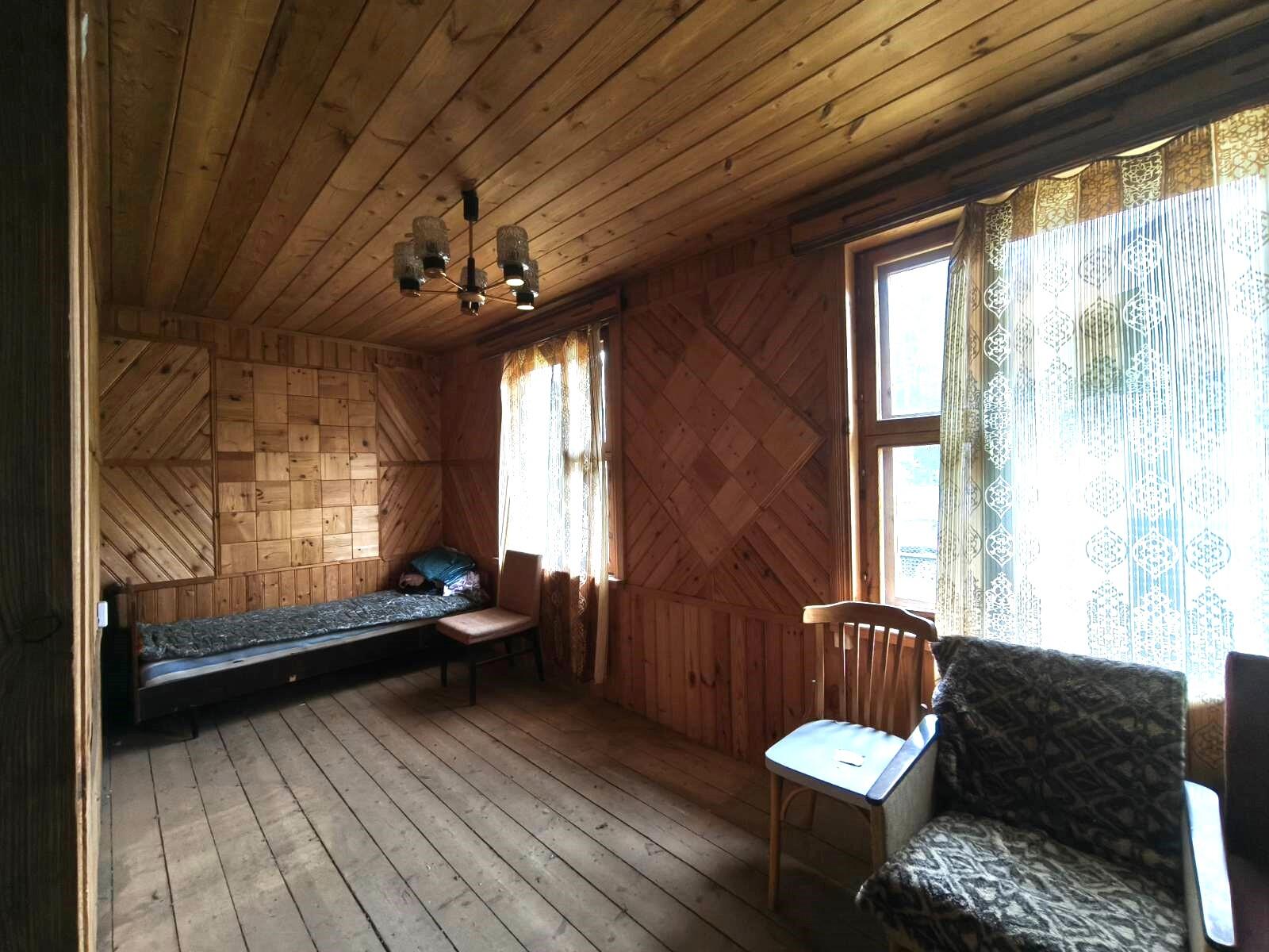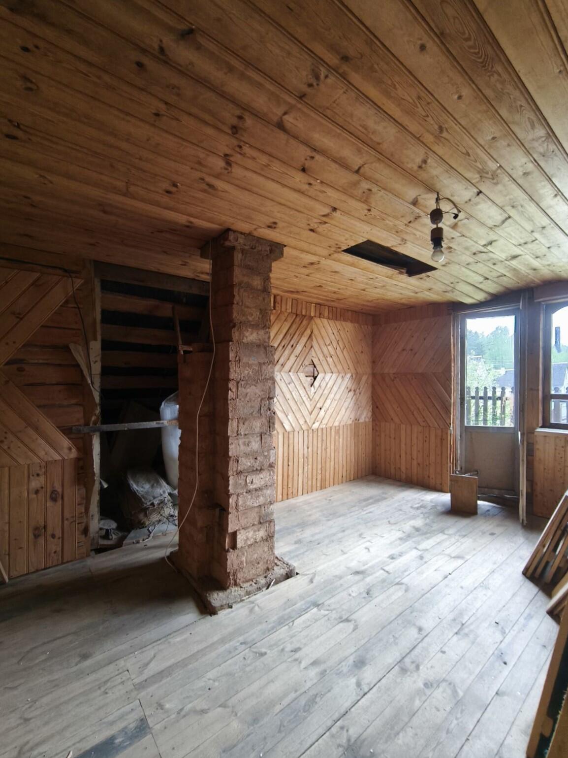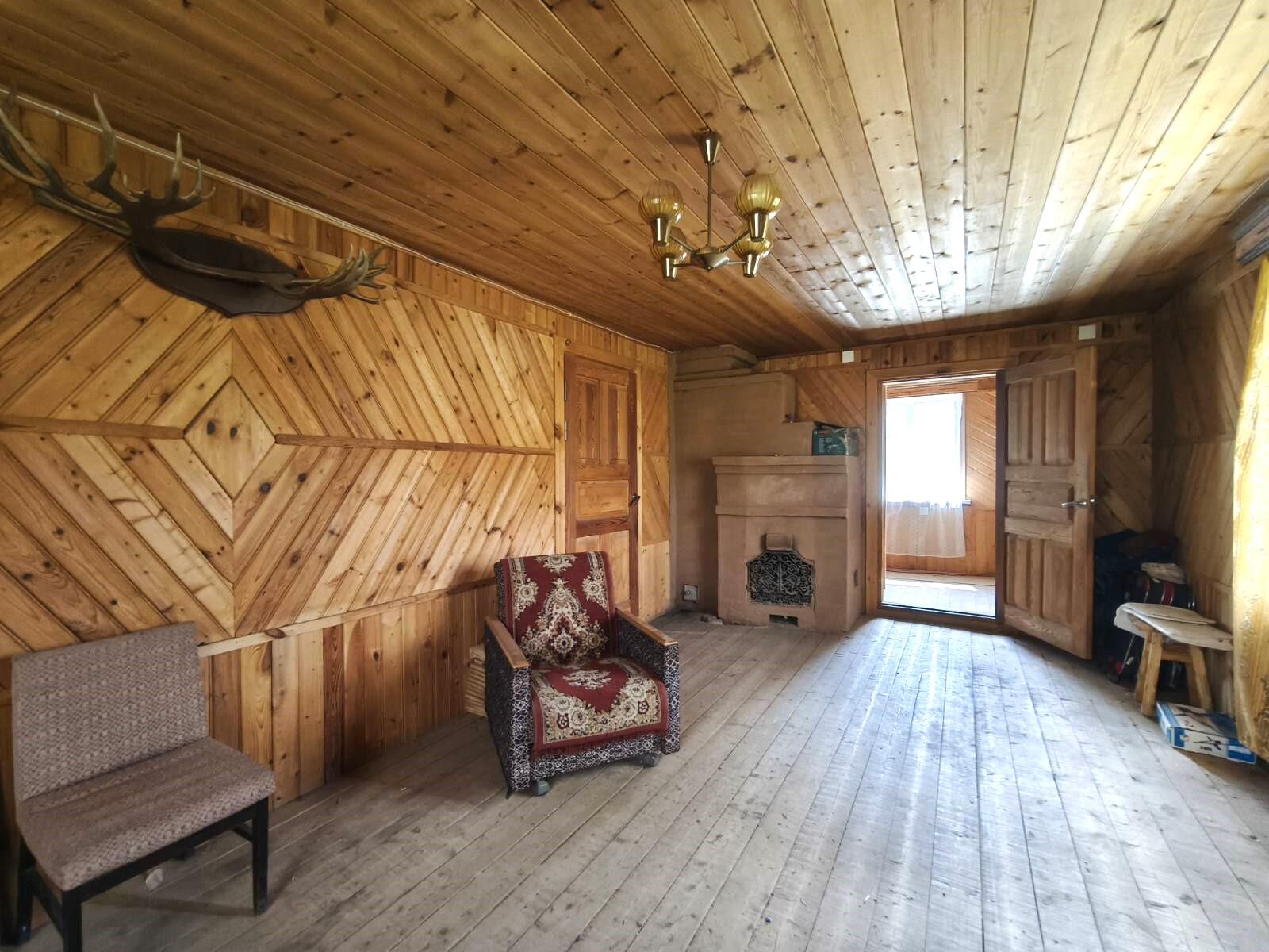 В доме есть электричество, вода введена в дом, рабочая печь, камин, газовая плитка, санузел на улице. На 1-м этаже - кухня и 2 комнаты, на 2-м этаже – 2 спальни.