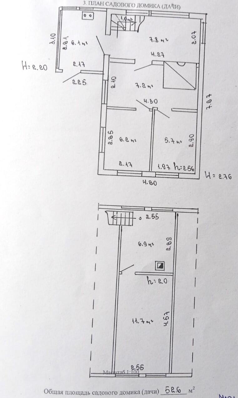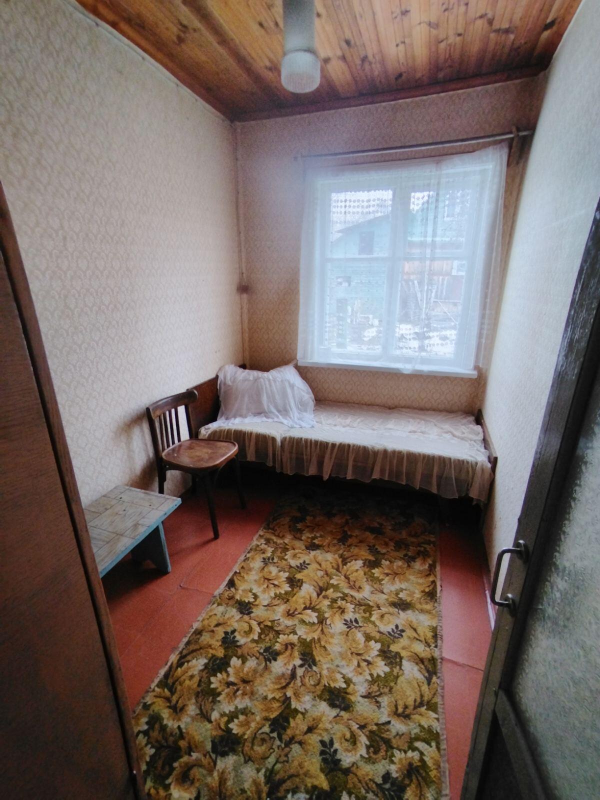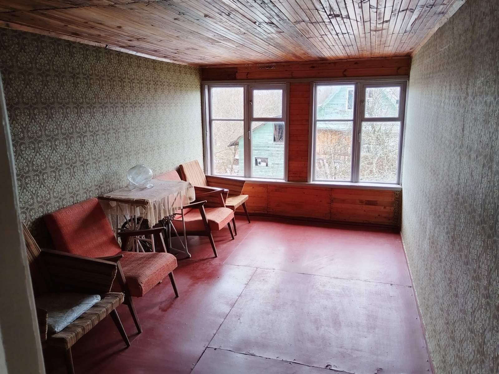 В доме на первом этаже три комнаты, кухня, веранда. На втором этаже две жилые комнаты.