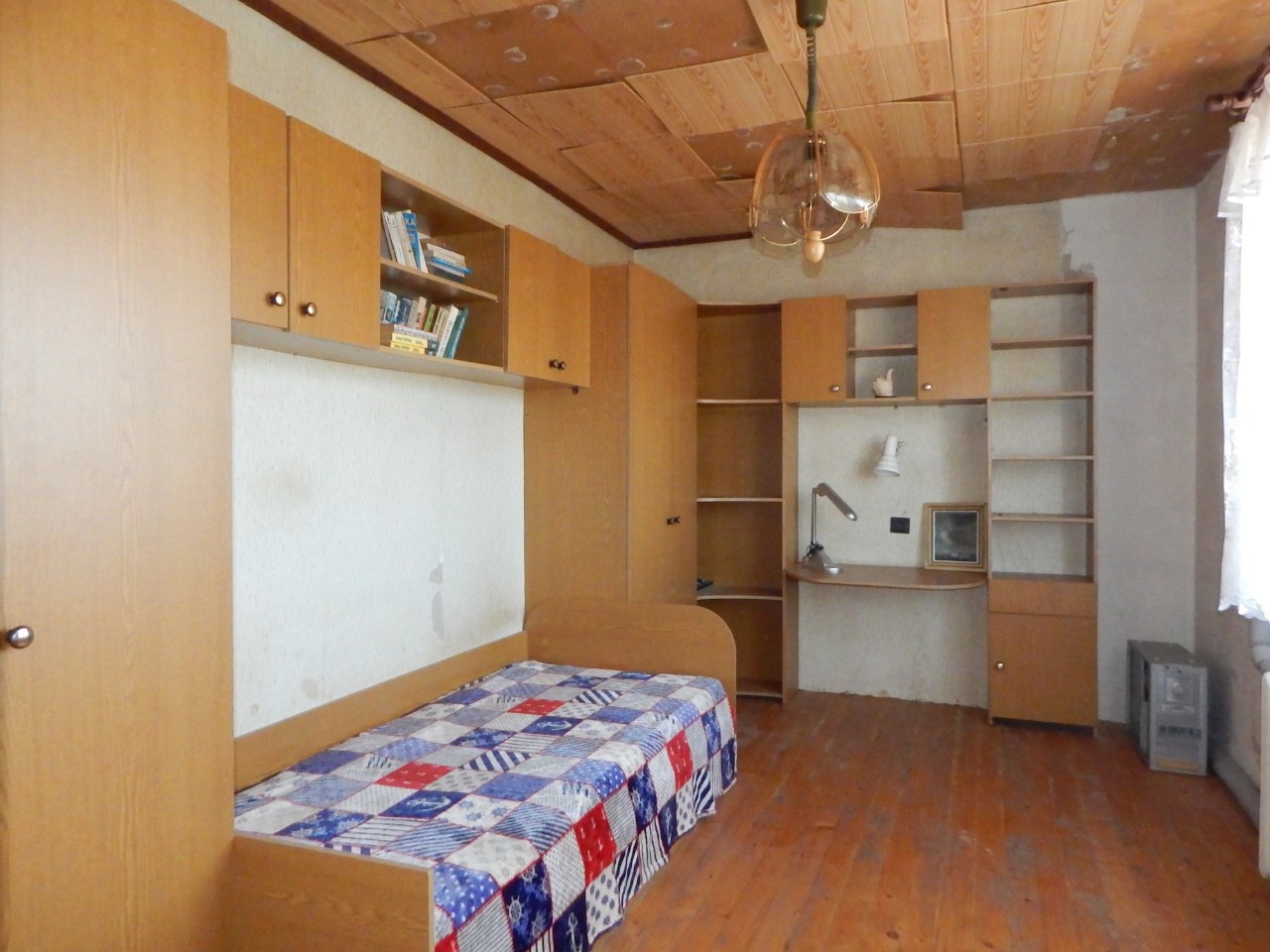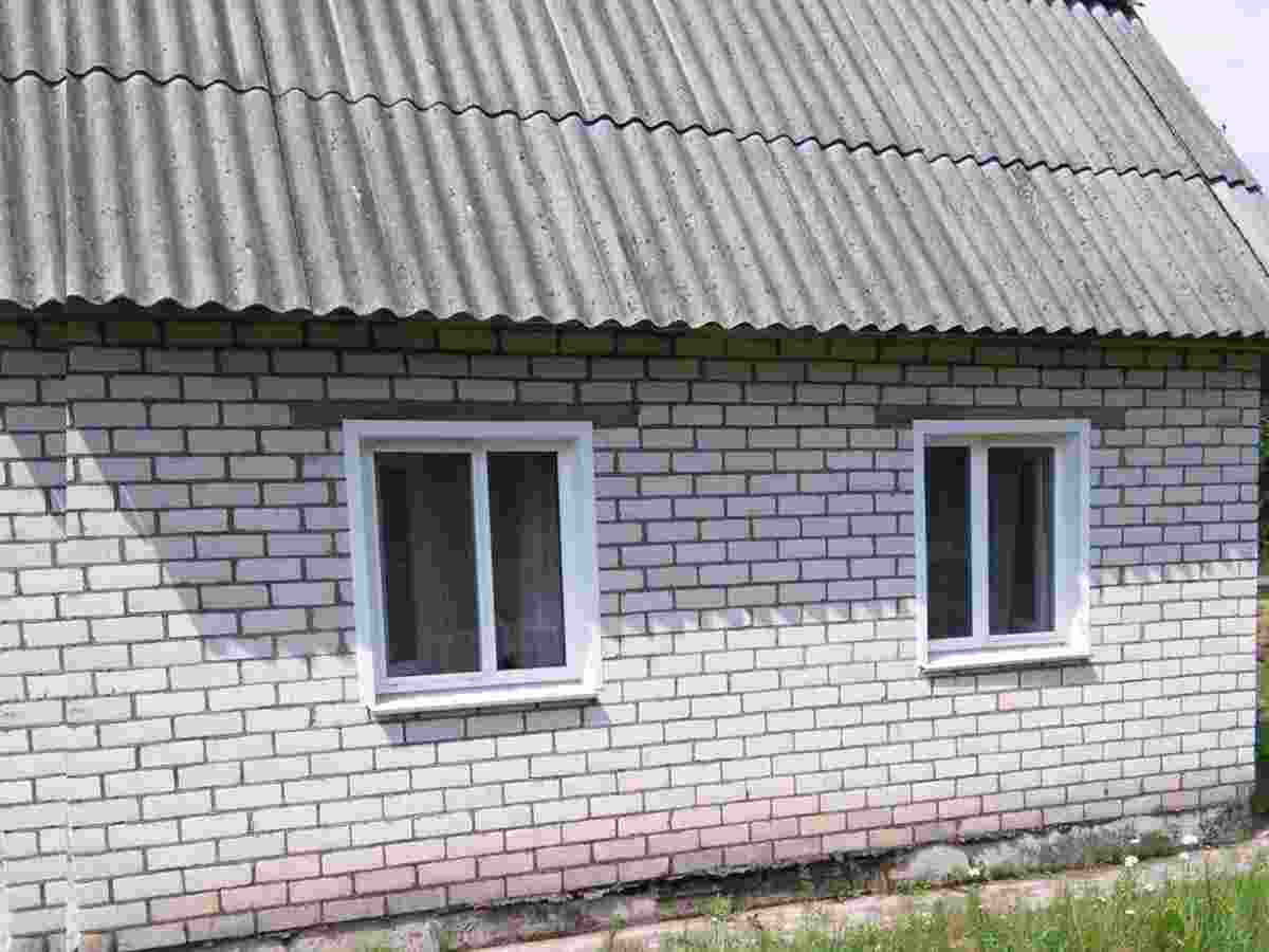 Вторая половина дома без внутренней отделки. На полу выполнена стяжка. На окнах установлены стеклопакеты с ПВХ профилем.