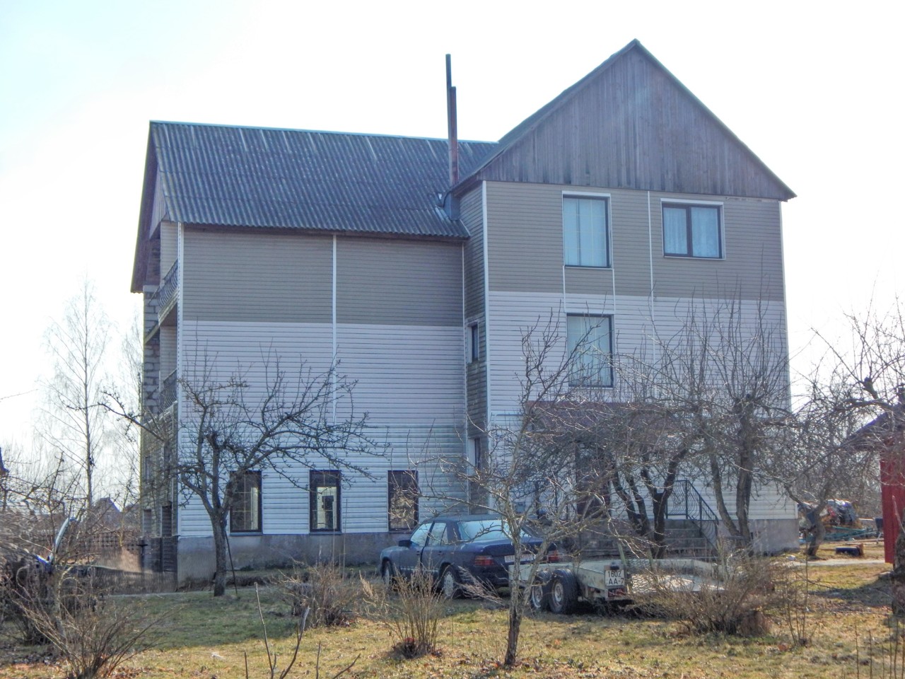 Дом построен в 1996 году из газосиликатных блоков, разделен на две изолированные части с общей стеной и отдельными входами. В доме 3 жилых уровня и цокольный этаж с гаражом. Общая площадь составляет 486.8 м2. Материал крыши - шифер.