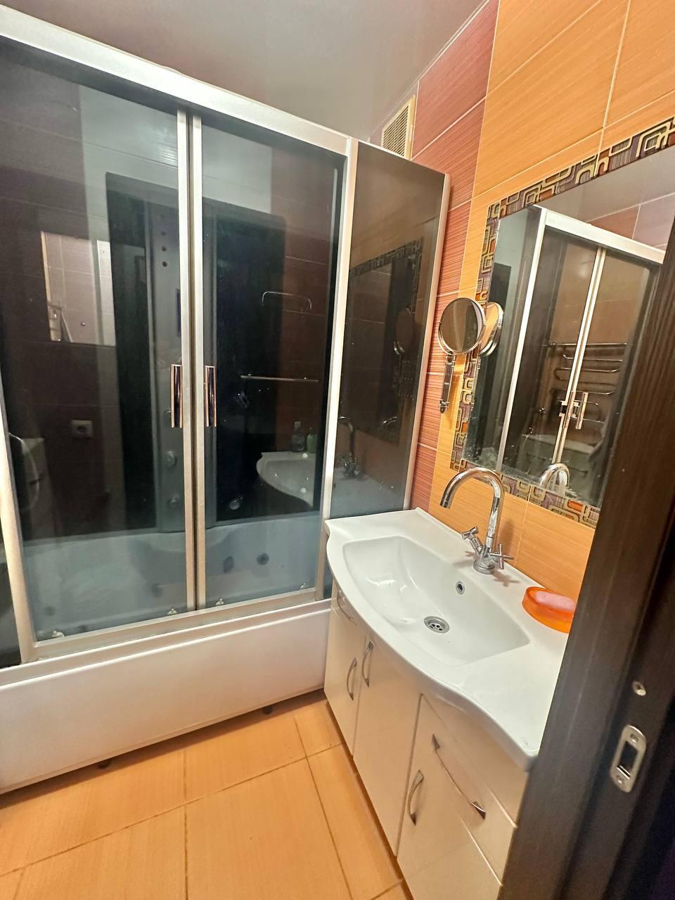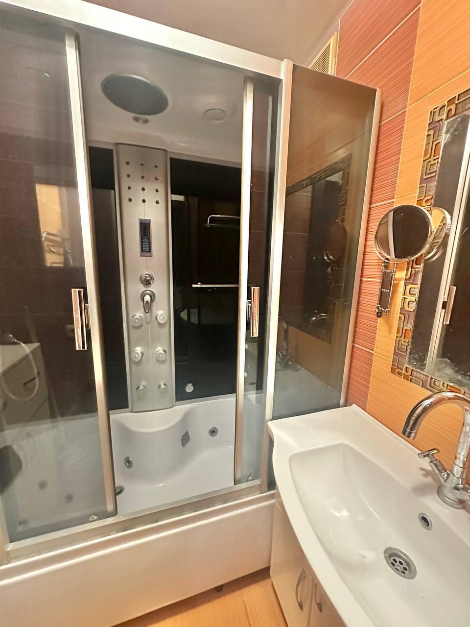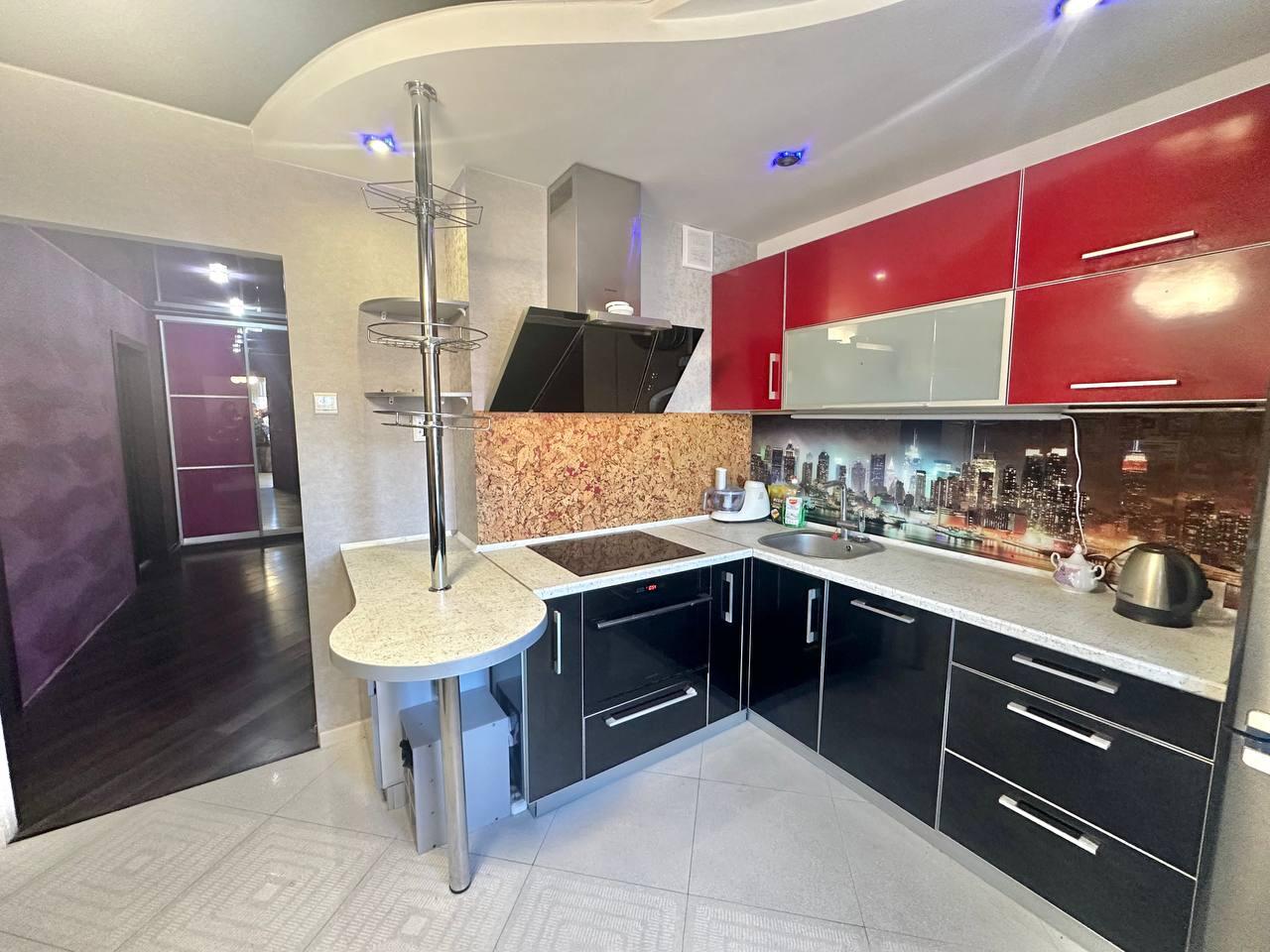 Встроенная кухня укомплектована: варочной поверхностью Bosch, духовым шкафом,холодильником , стиральной машиной. Сан узел раздельный, оборудован современной сан.техникой, мебелью, люки скрытых инженерных систем. В коридоре установленсовременный шкаф-купе . Напольное покрытие в комнатах – ламинат с подогревом. Межкомнатные двери .