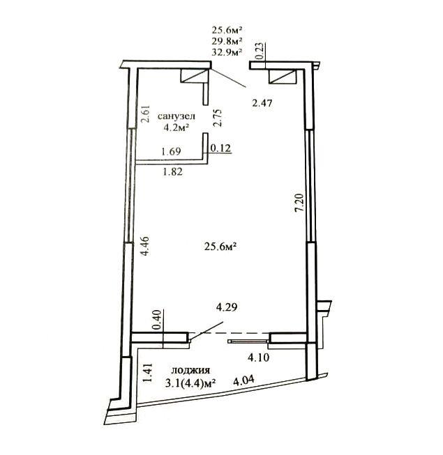Общая площадь квартиры: 29,8 кв.м.