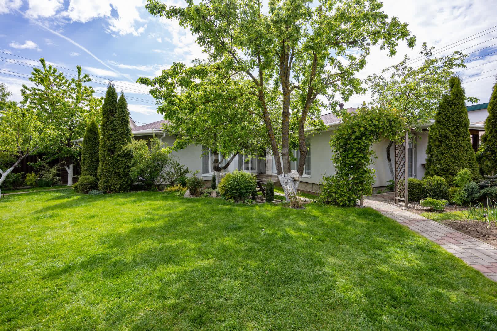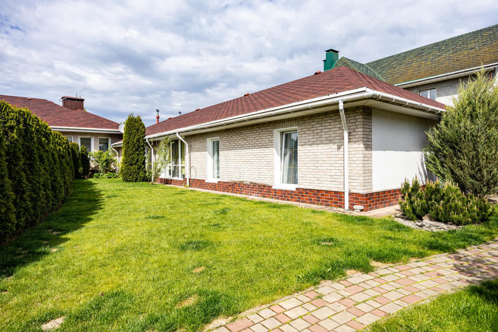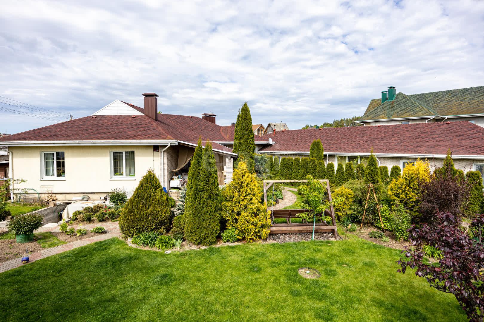 Одноуровневый просторный коттедж 2005 года постройки с отличной эргономикой полностью готов для проживания, строился качественно и с любовью. Общая площадь дома составляет 348 м2, с 5-ю жилыми комнатами, панорамным остеклением и красивым видом на сад.