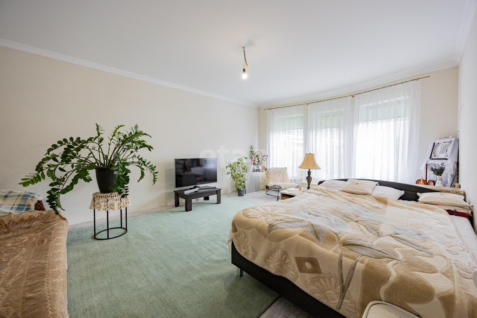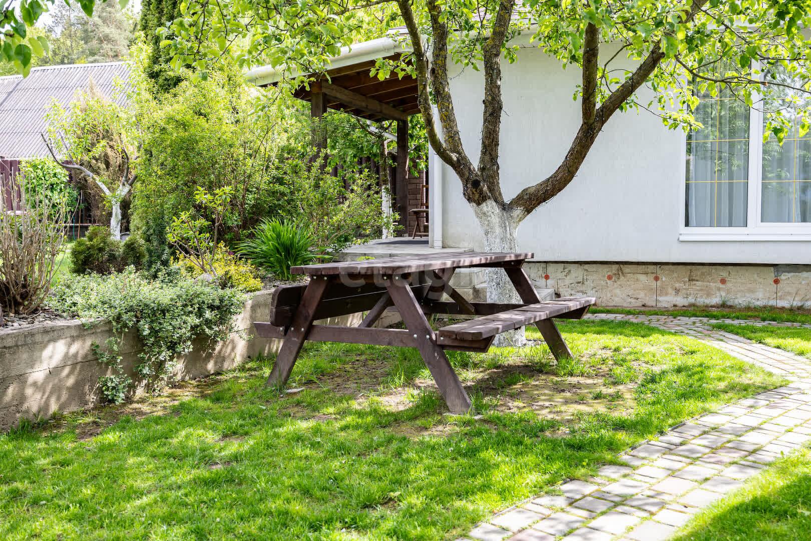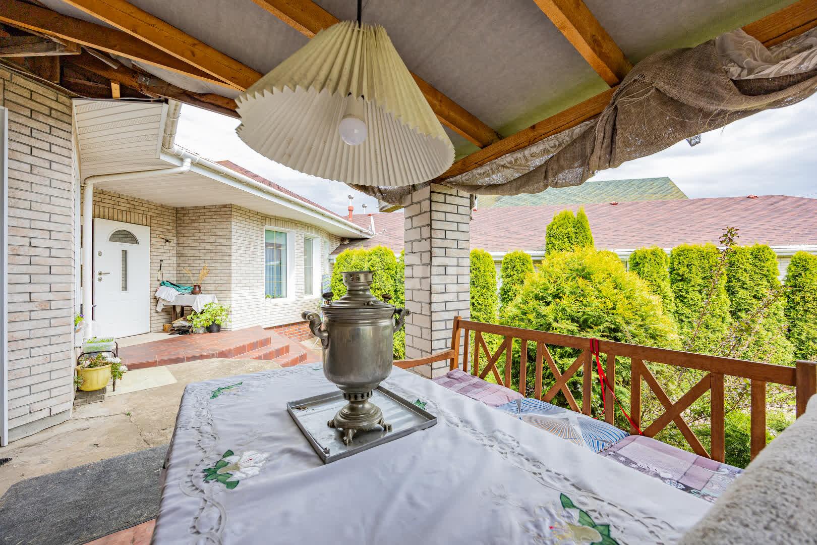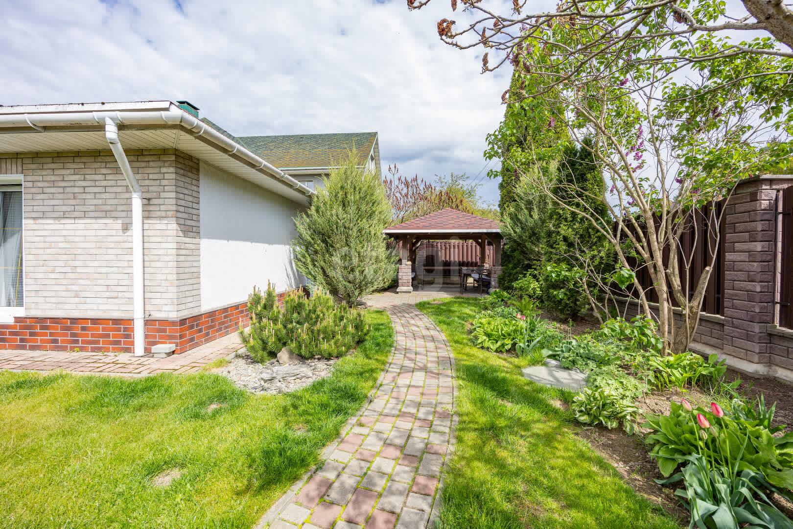 Одноуровневый просторный коттедж 2005 года постройки с отличной эргономикой полностью готов для проживания, строился качественно и с любовью. Общая площадь дома составляет 348 м2, с 5-ю жилыми комнатами, панорамным остеклением и красивым видом на сад.