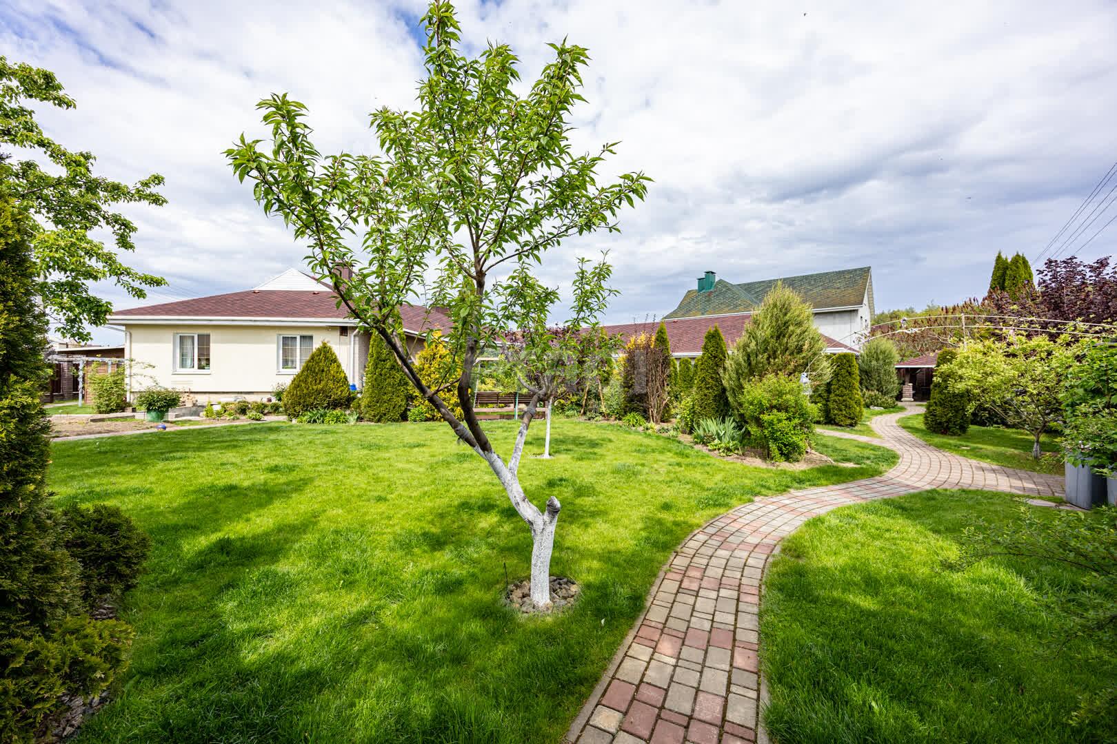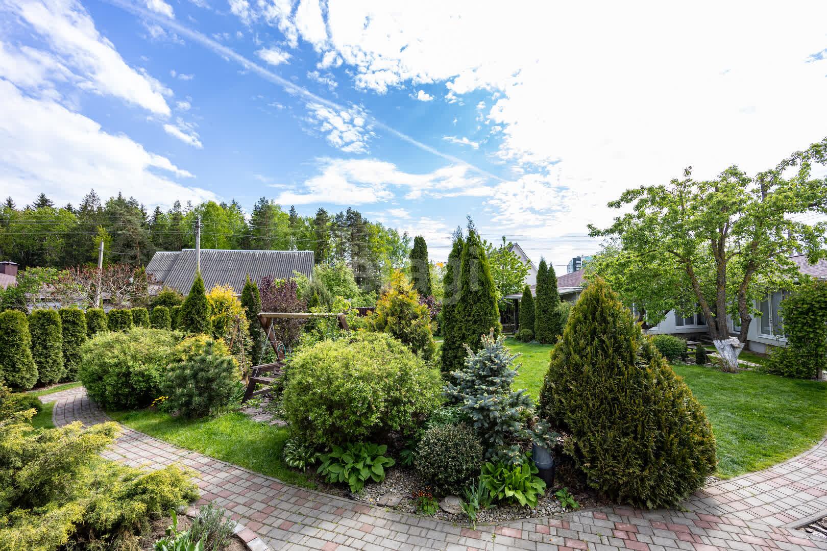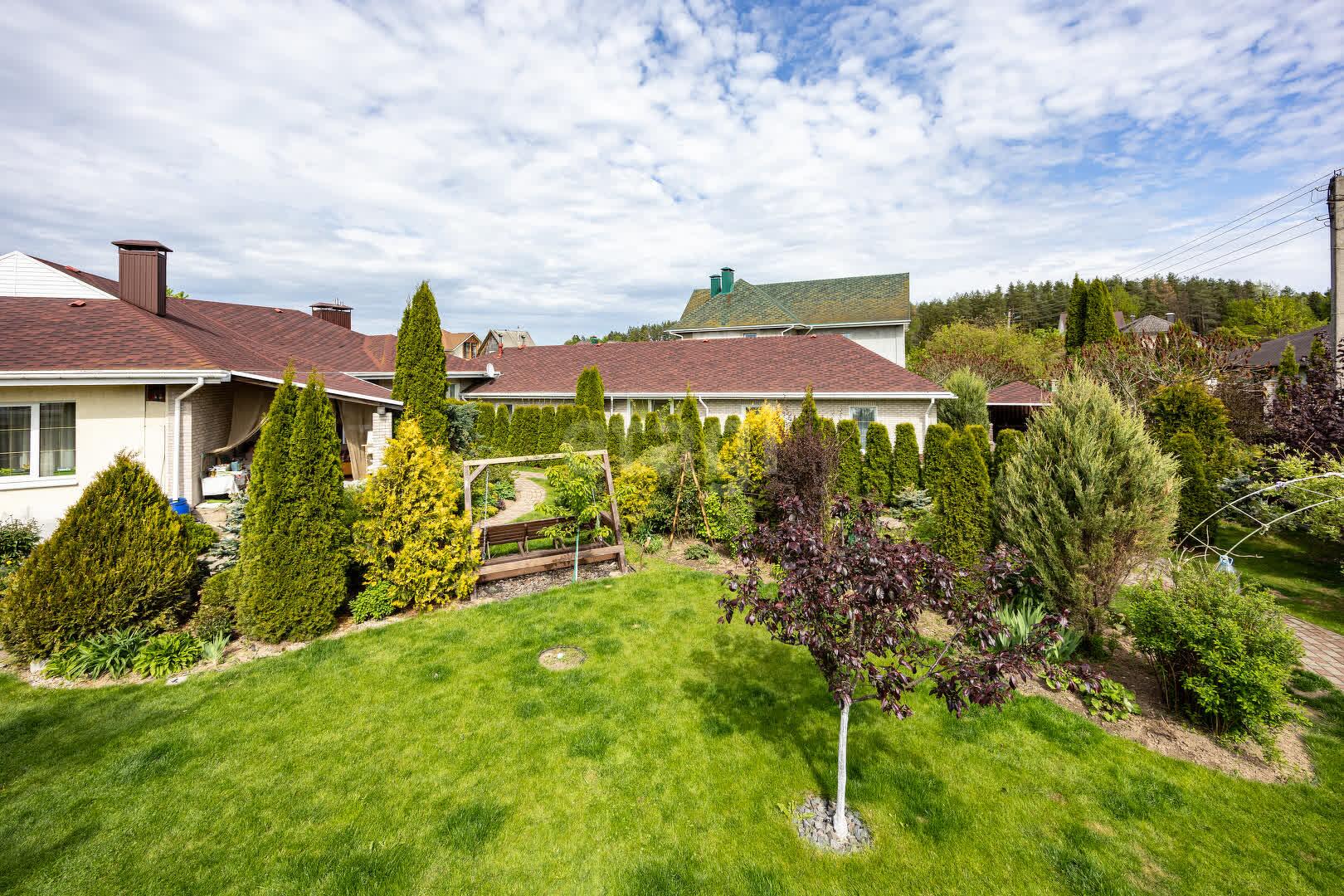 Участок ровной планировки площадью 16 соток, находящийся в частной собственности. Он надежно огражден забором, имеет удобные подъездные пути и быстрый доступ к трассе. На участке выполнен ландшафтный дизайн с обилием декоративных насаждений, грамотным зонированием пространства.