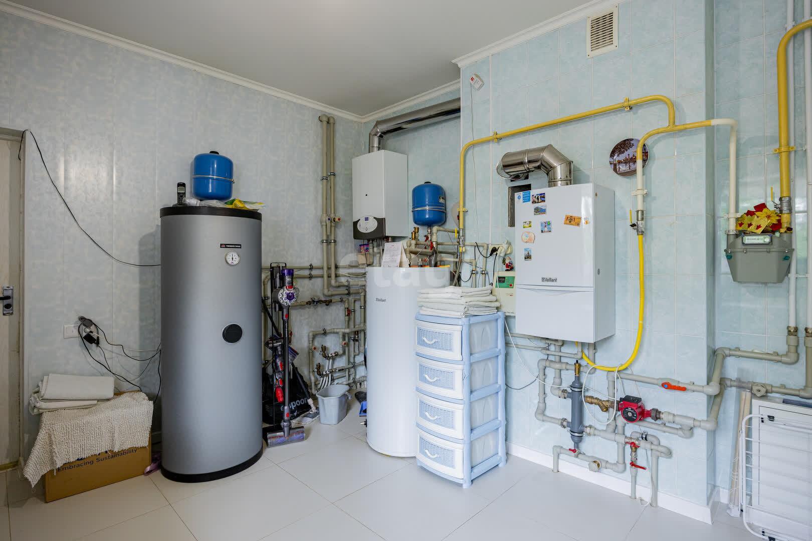 Коммуникации полностью автономны: подключено электричество, водоснабжение – собственная скважина, отопление – газовый котёл, местная канализация. Проведён оптоволоконный интернет.