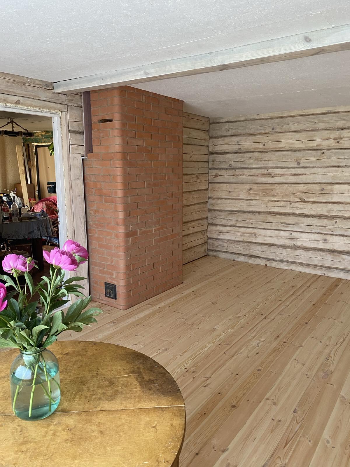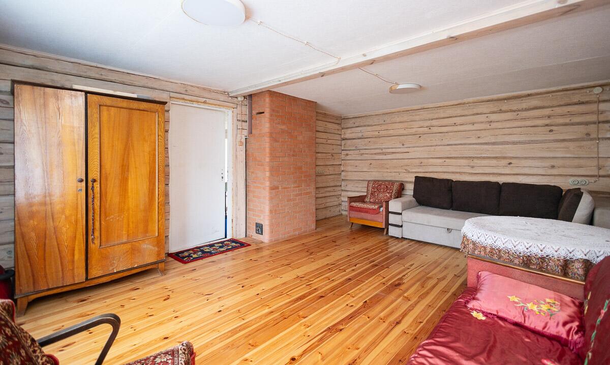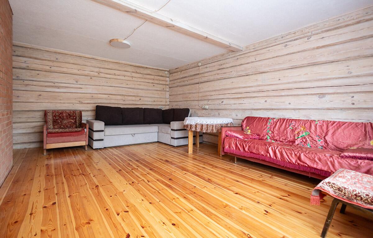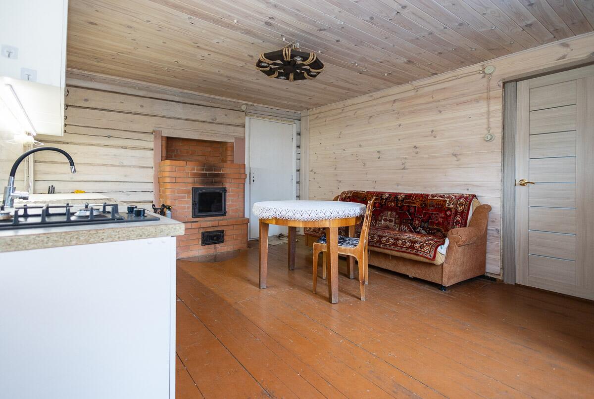 На первом этаже-кухня гостинная, печь, комната, санузел с душевой кабиной и бойлером. Второй этаж не достроен. Можно оборудовать 2 большие комнаты.
