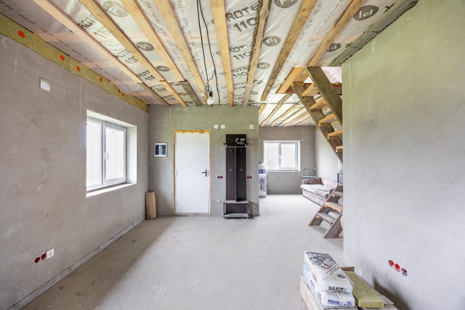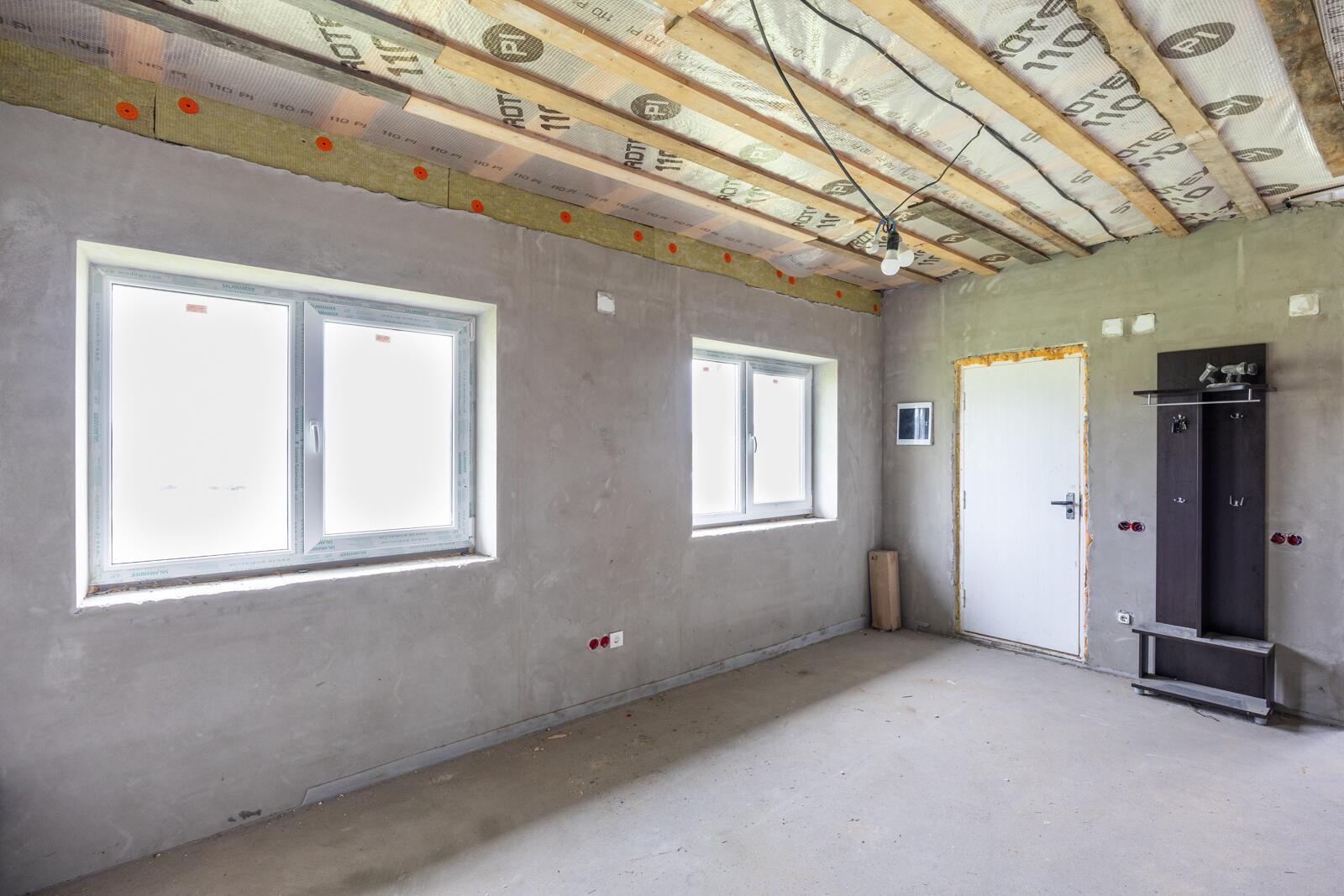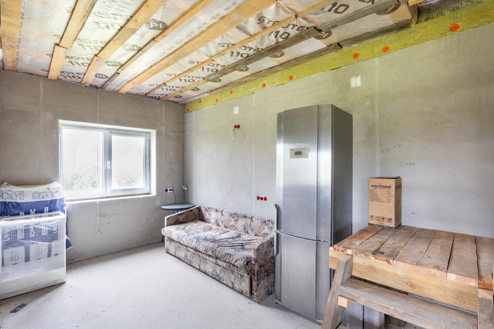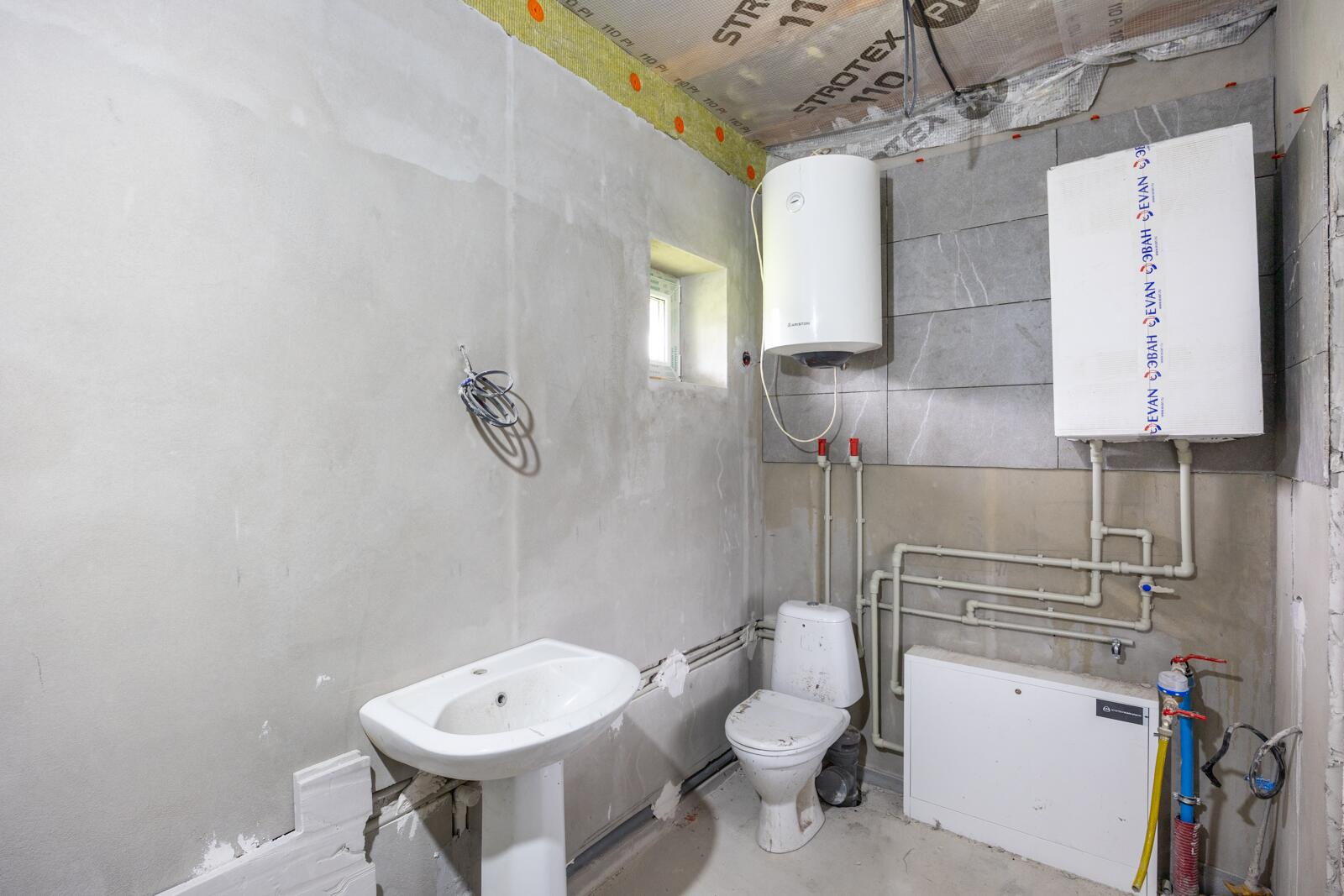 Построен из газосиликатных блоков , прочный железобетонный фундамент. Крыша ‒ металлочерепица Внутренняя отделка: оштукатурены стены, электрика разведена Окна ‒ энергосберегающие ПВХ Установлены теплые полы на первом этаже ‒ комфорт в любое время года Гостиная с кухонной зоной ‒ 31,4 м2, с выходом на просторную террасу Санузел совмещенный, подготовленный под установку сантехники Мансардный этаж 37,6 м2 Адаптация для постоянного проживания, а также для дачи Коммуникации: