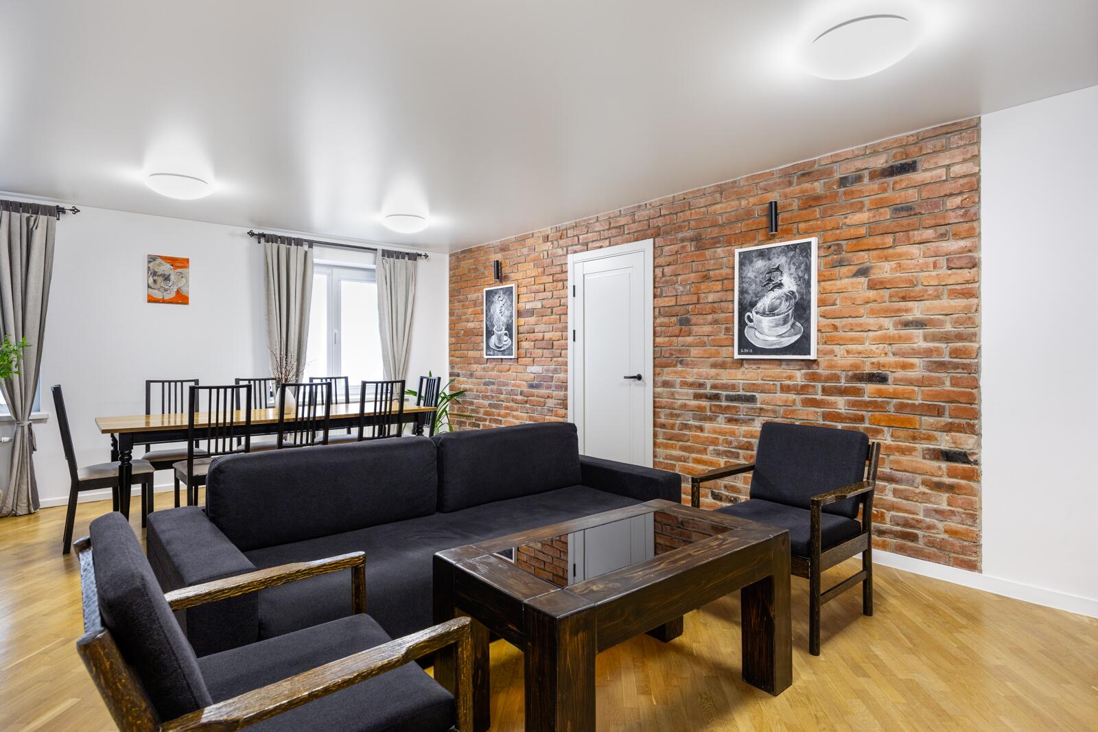 Общая площадь квартиры (СНБ) – 101,1 м2; жилая – 54,8 м2; кухня-гостиная – 24,8 м2; высота помещений – 2,47 м.