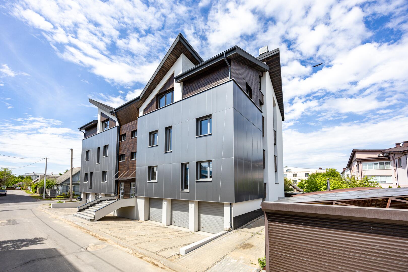 · Современная и элегантная отделка фасадов с использованием натурального дерева и инновационных фасадных панелей, подчеркивающих статус и стиль.