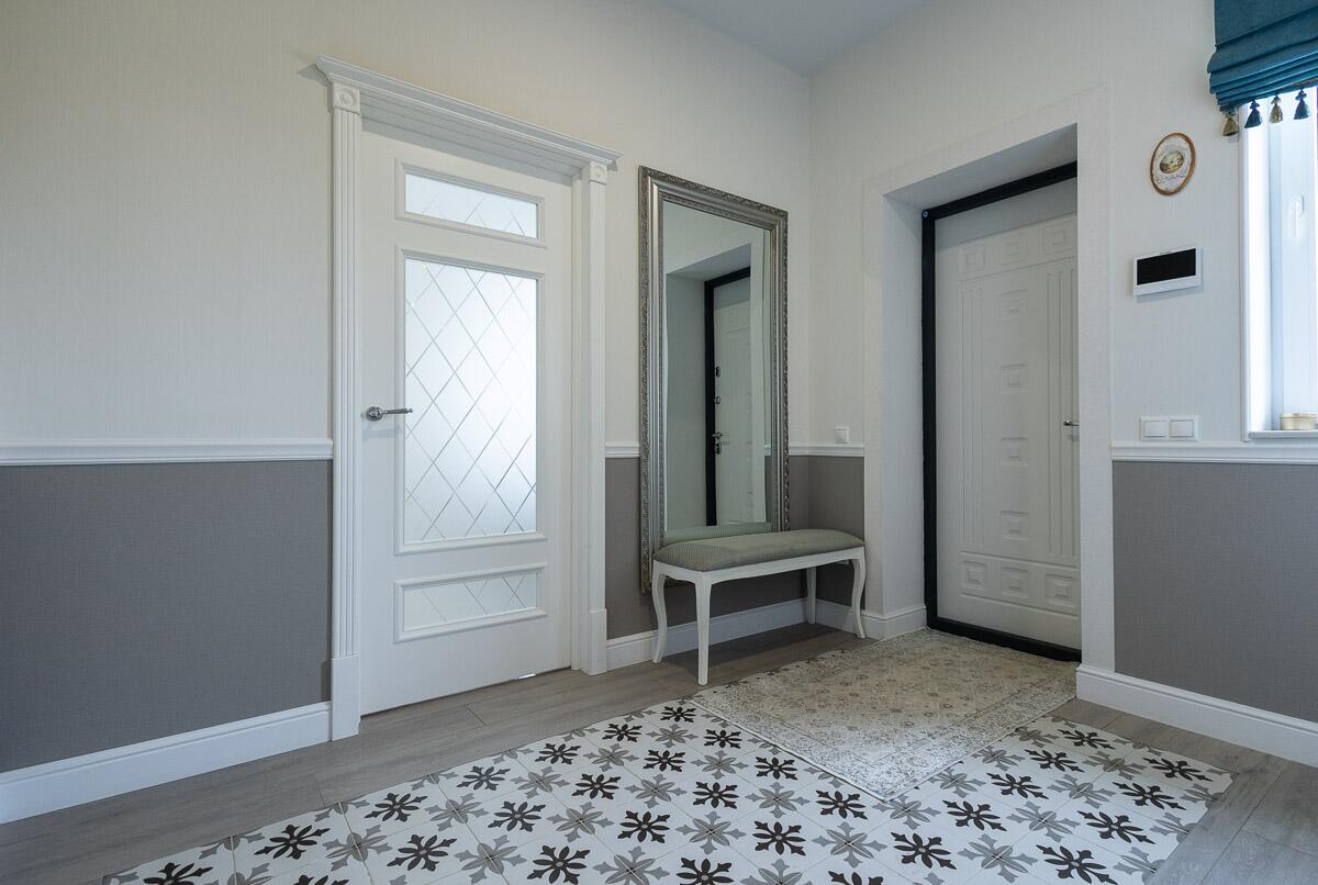 Двери -массив дуба на 1 этаже и массив ольхи на 2